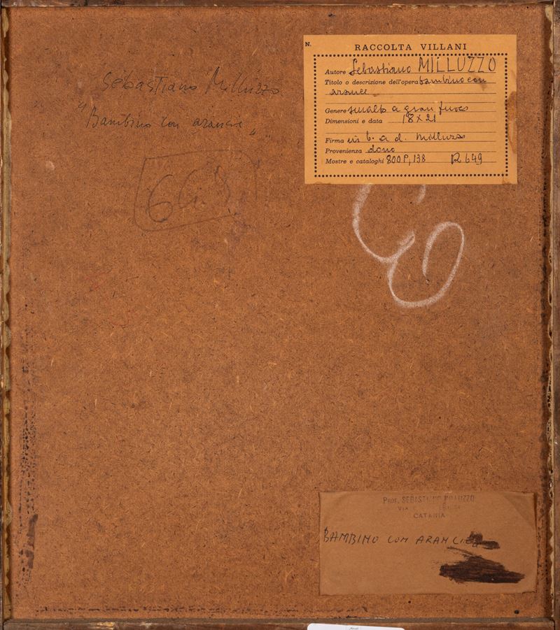 Provenienza: "Raccolta Villani" etichetta al retro con dettagli dell'opera.