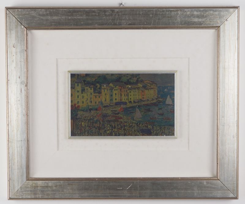 Serigrafia su lastra d’argento “Festa marinara” da un dipinto di Michele Cascella
