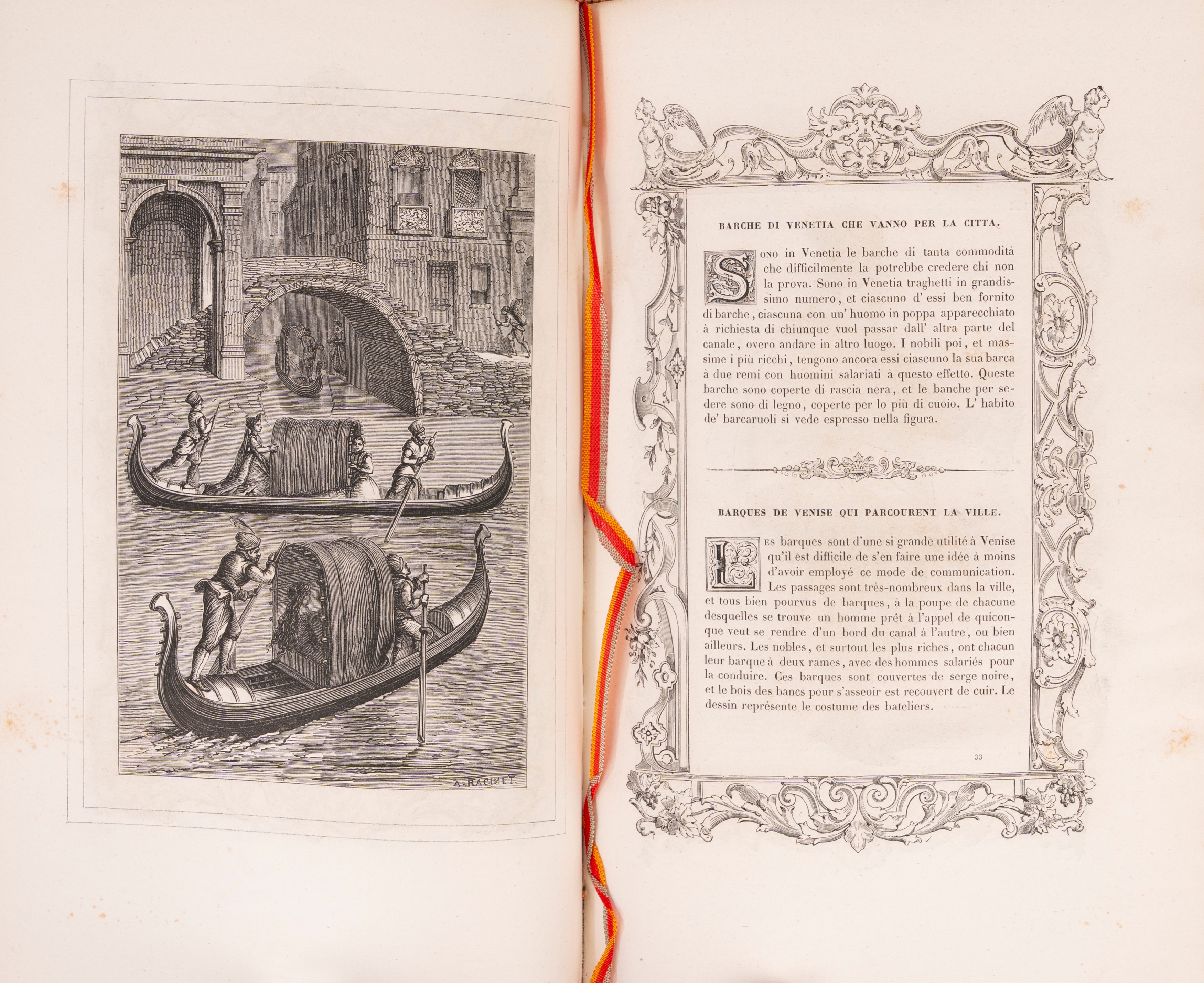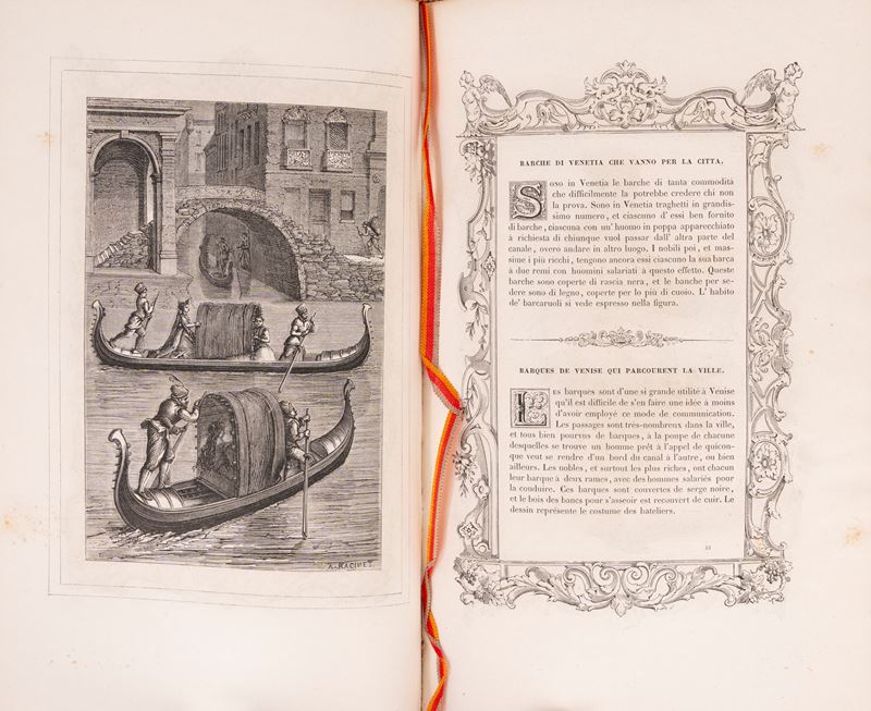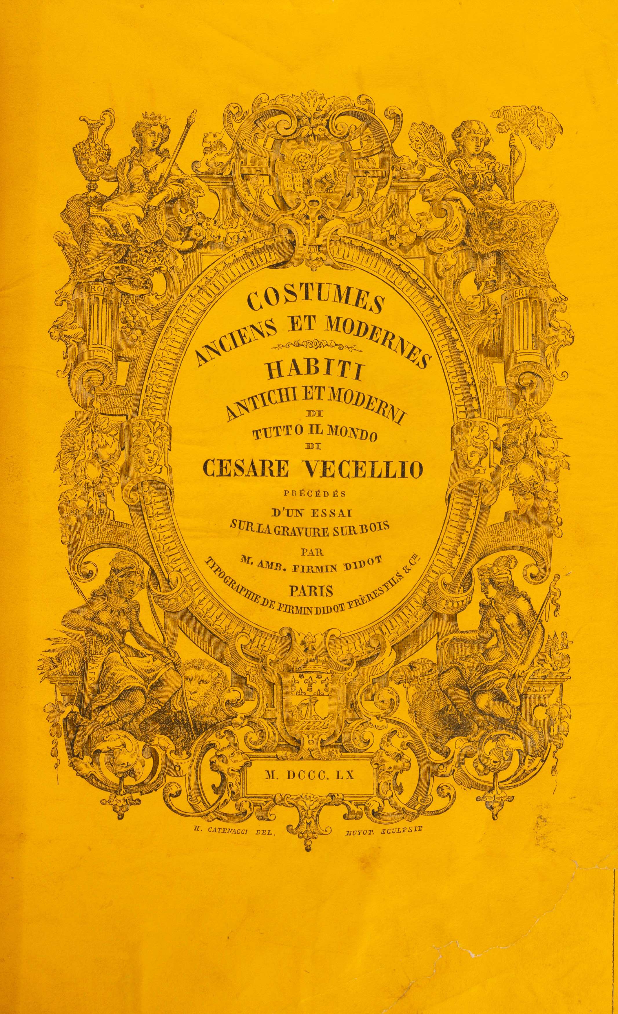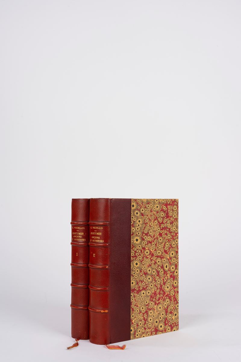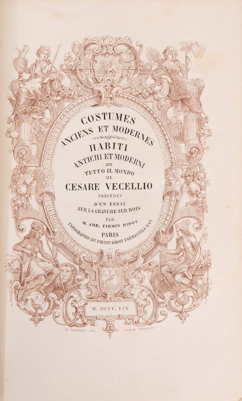 Parigi, Typographie de firmin didot frères fils & Cie, 1859. 2 voll, in 8°. Frontespizio entro cornice incisa da Hercule Louis Catenacci e decorata con personificazione dei quattro continenti, elementi vegetali e architettonici, testo entro cornice tipografica, illustrazioni nel testo, lievi difetti. Brossura editoriale entro legatura in mezza pelle rossa e piatti marmorizzati, titolo in oro al dorso a 5 nervi.