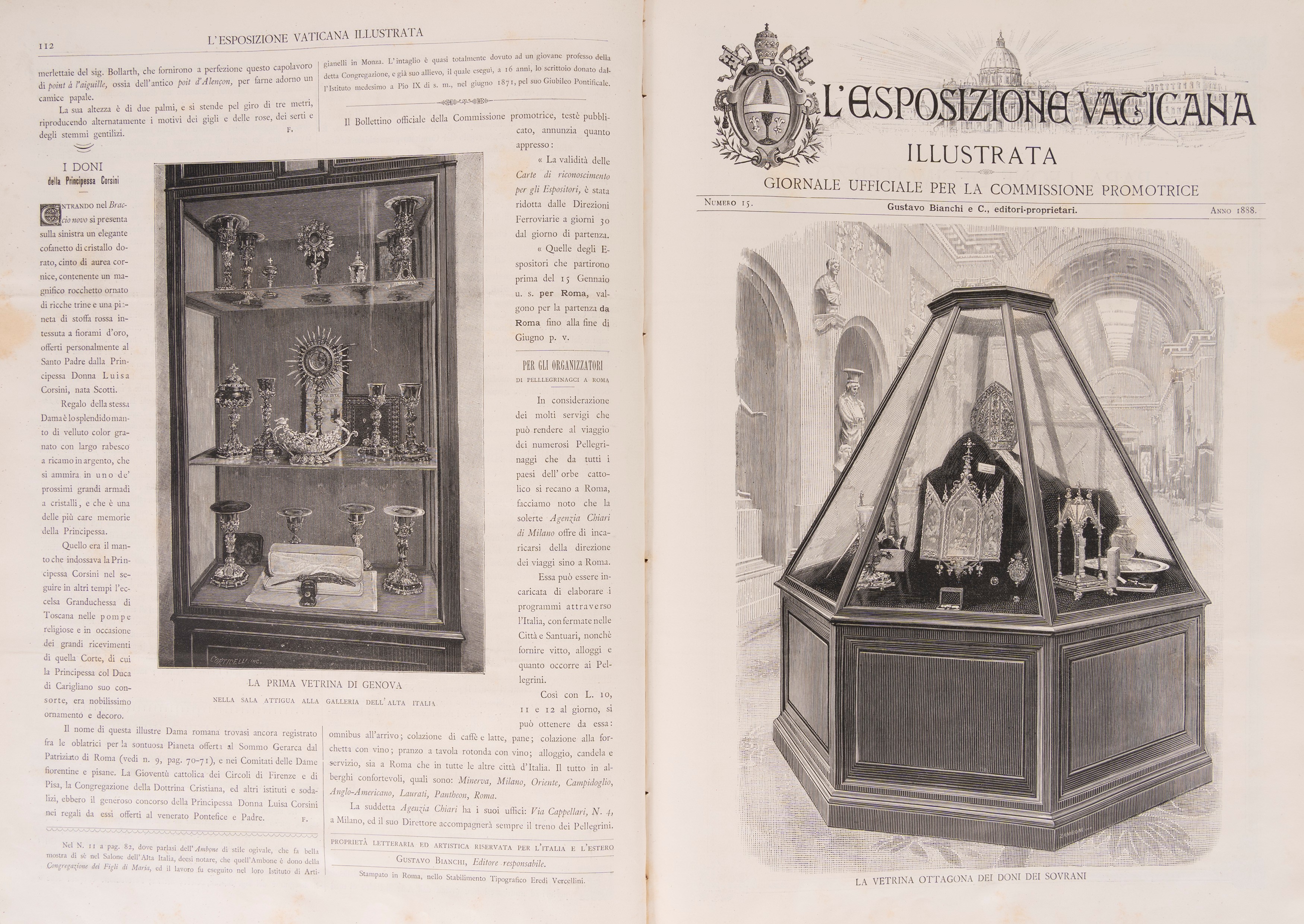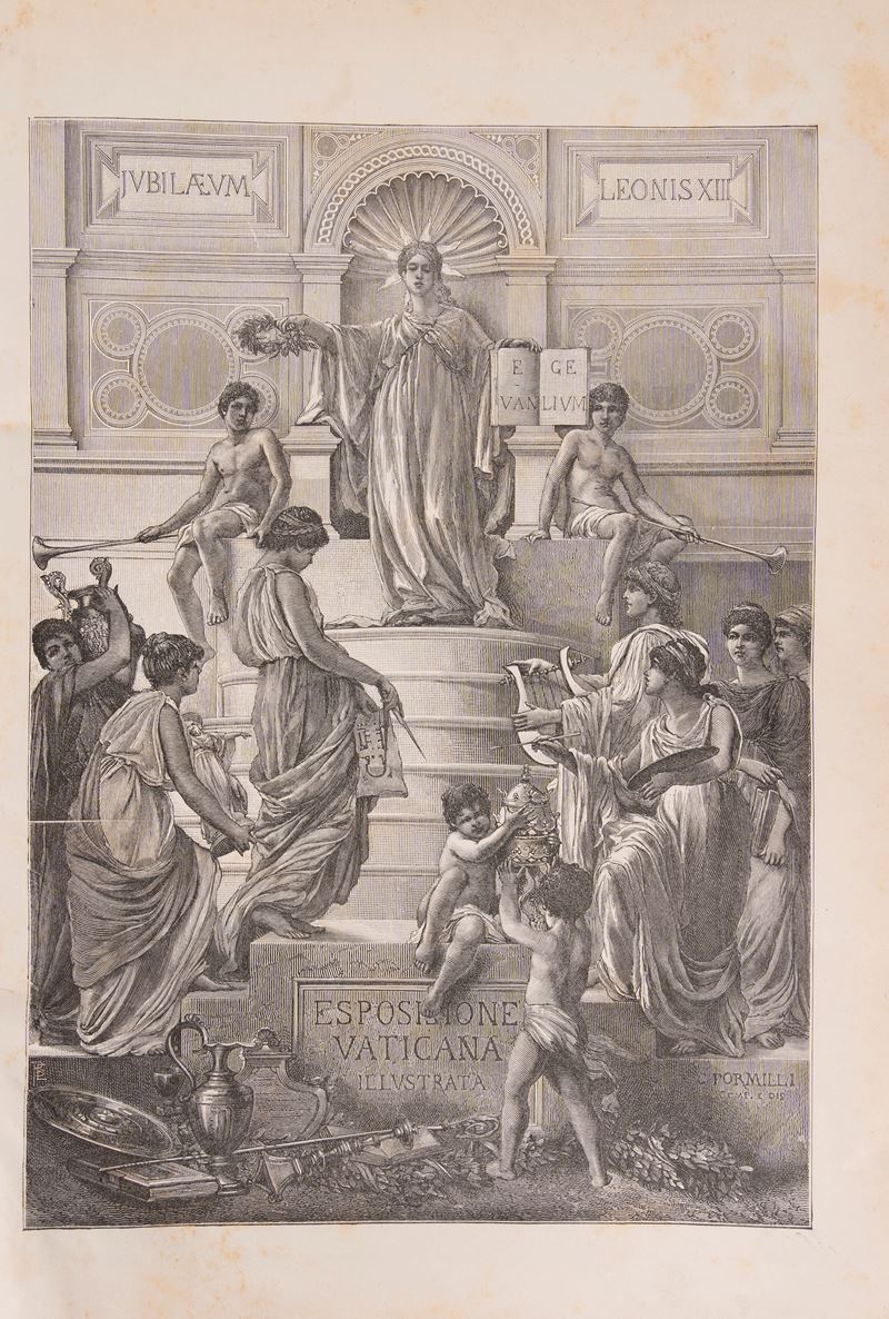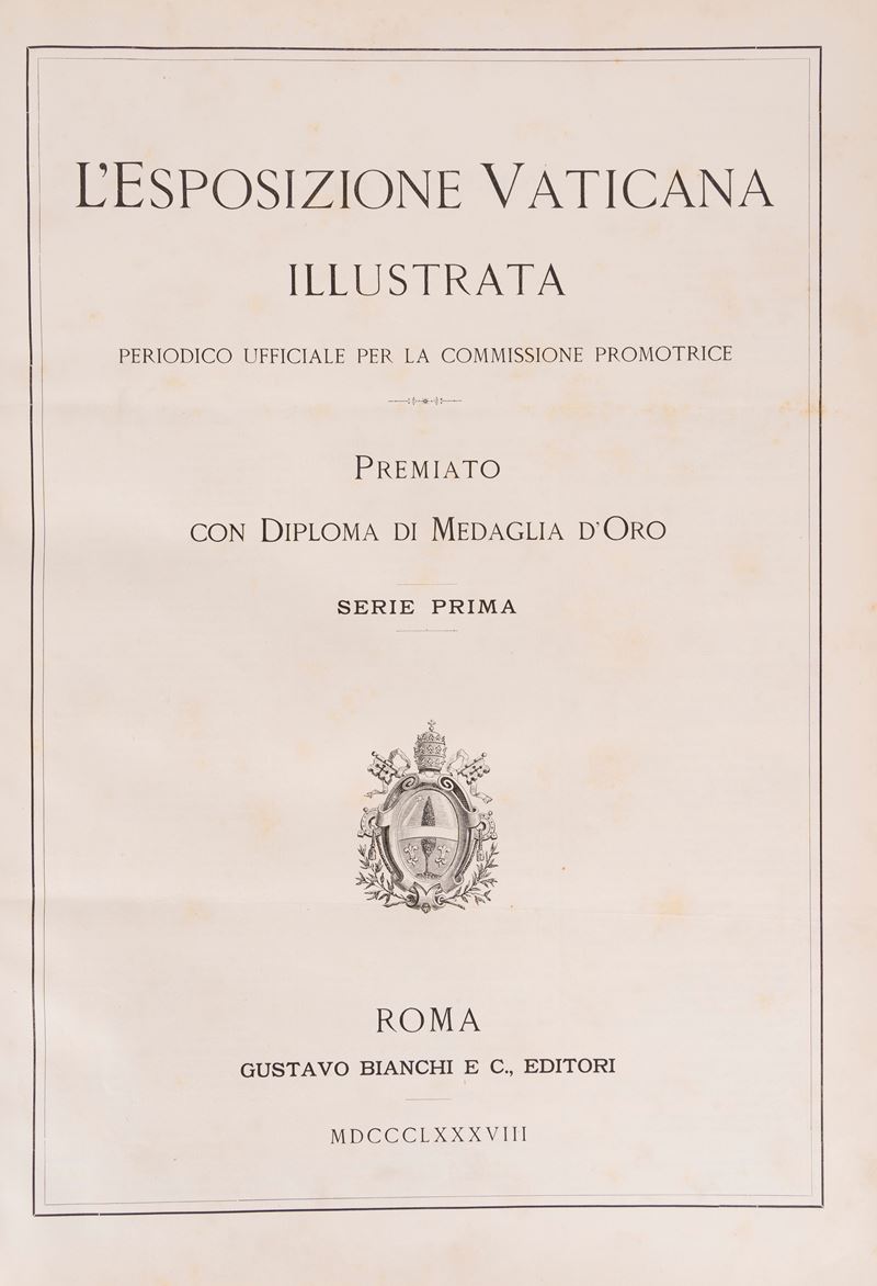 Roma, Gustavo Bianchi & c. editori, 1888-90. In 2°. 2 voll. Con numerose illustrazioni e riproduzioni fotografiche in bianco e nero nel testo, qualche lieve fioritura, legatura tipografica in seta vere, titolo in nero e rosso al piatto, tagli rossi, lievi difetti.