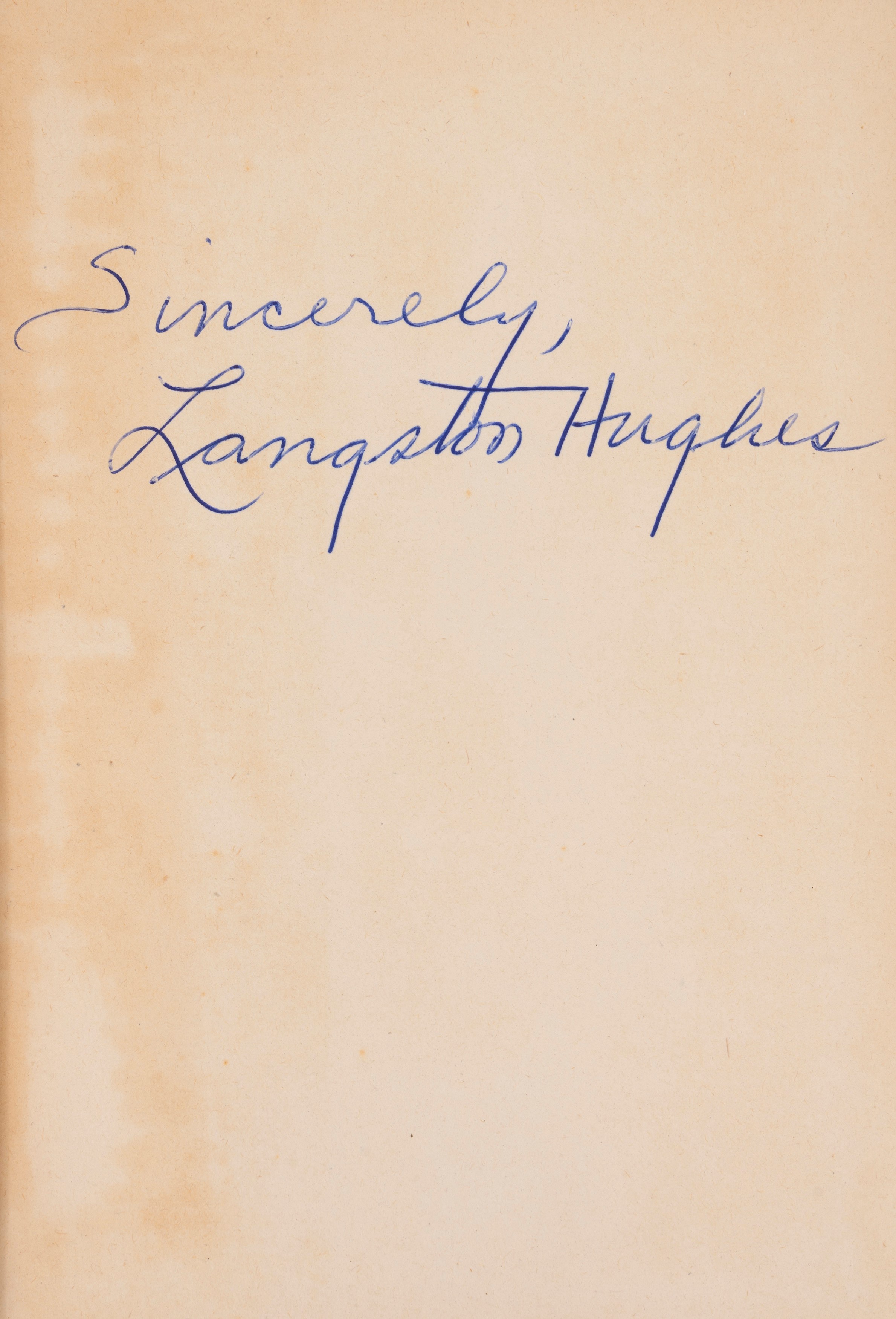 New York, Alfred A. Knopf, 1945. In 8°. Antiporta illustrata in bianco/nero e seppia, fregio seppia al frontespizio, numerose illustrazioni in bianco e nero nel testo di Helen Sewell, legatura editoriale in tela blu con titolo in rosso, sovraccoperta illustrata, mancanza al dorso, lievi segni del tempo. Firmato dall'Autore alla carta di guardia in inchiostro blu: "Sincerely, Langston Hughes".