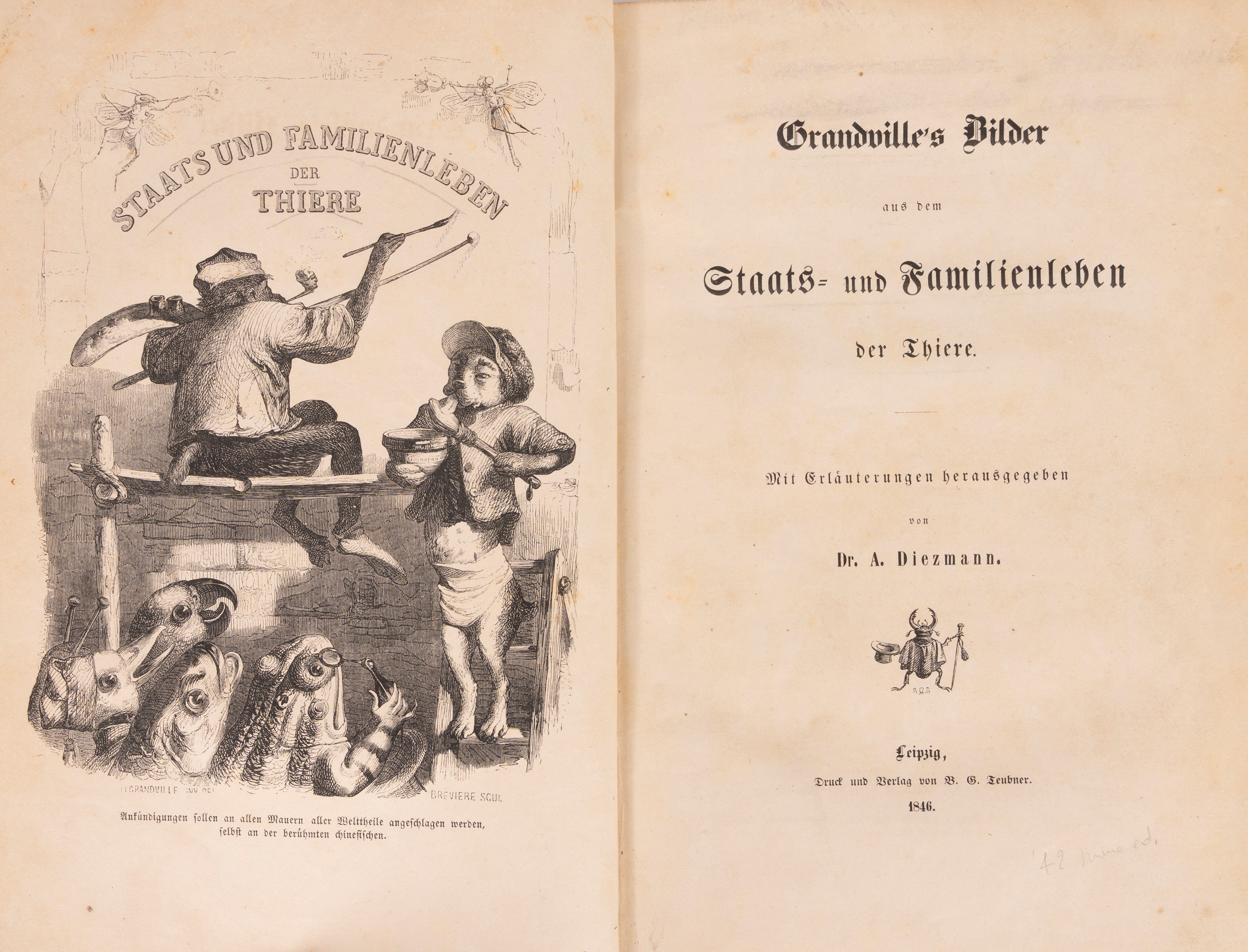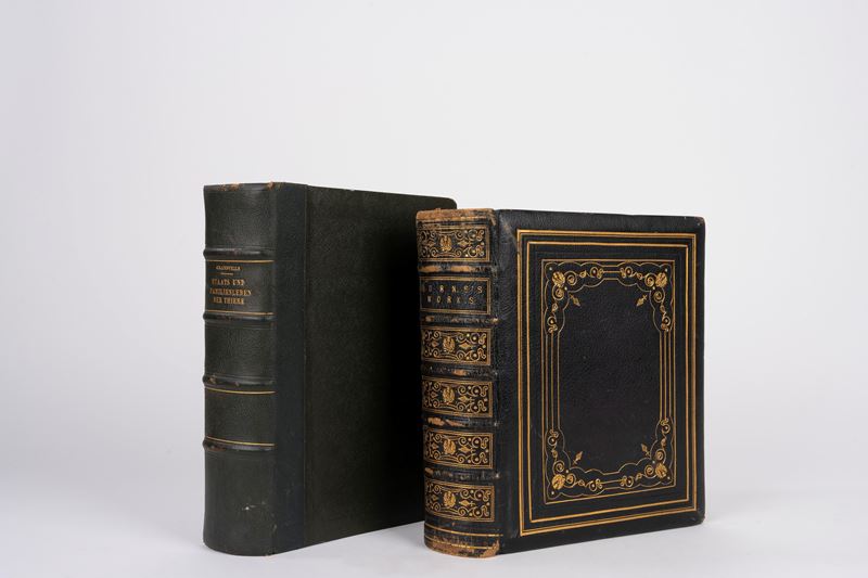 Glasgow, Published by P.F. Collier, 1879. Ritratto in antiporta e frontespizio ornato da cornice. Legatura in pelle blu decorata a motivi dorati, titolo in oro al dorso a cinque nervi, tagli in oro, lievi difetti. § Insieme nel lotto: Diezamnn A., Staats und Familienleben, Lipsia, B. G. Teubner, 1846. Incisioni di Grandville. Legatura in pelle verde e titolo in oro al dorso a quattro nervi.
