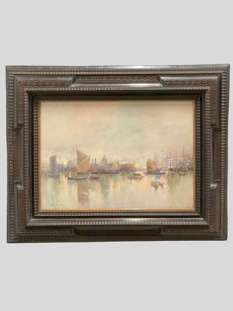 firmato e locato in basso a sinistra Gino Scalatelli Londra - Il Tamigi