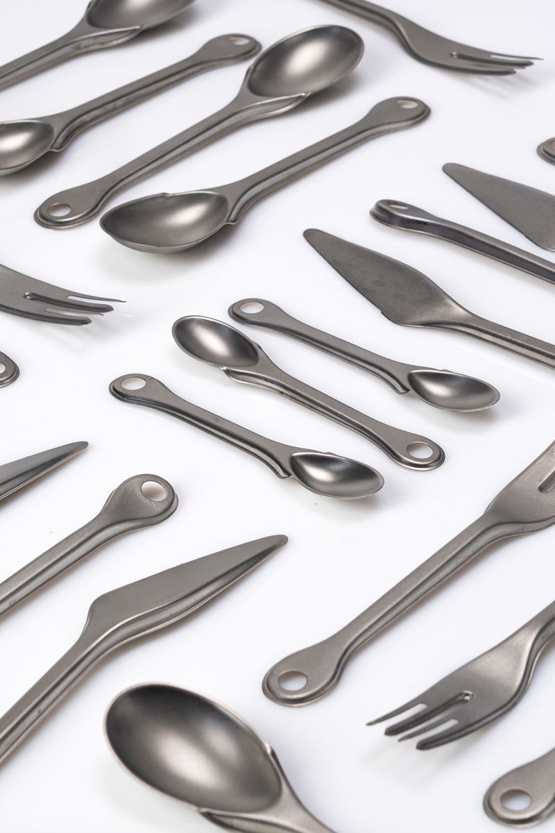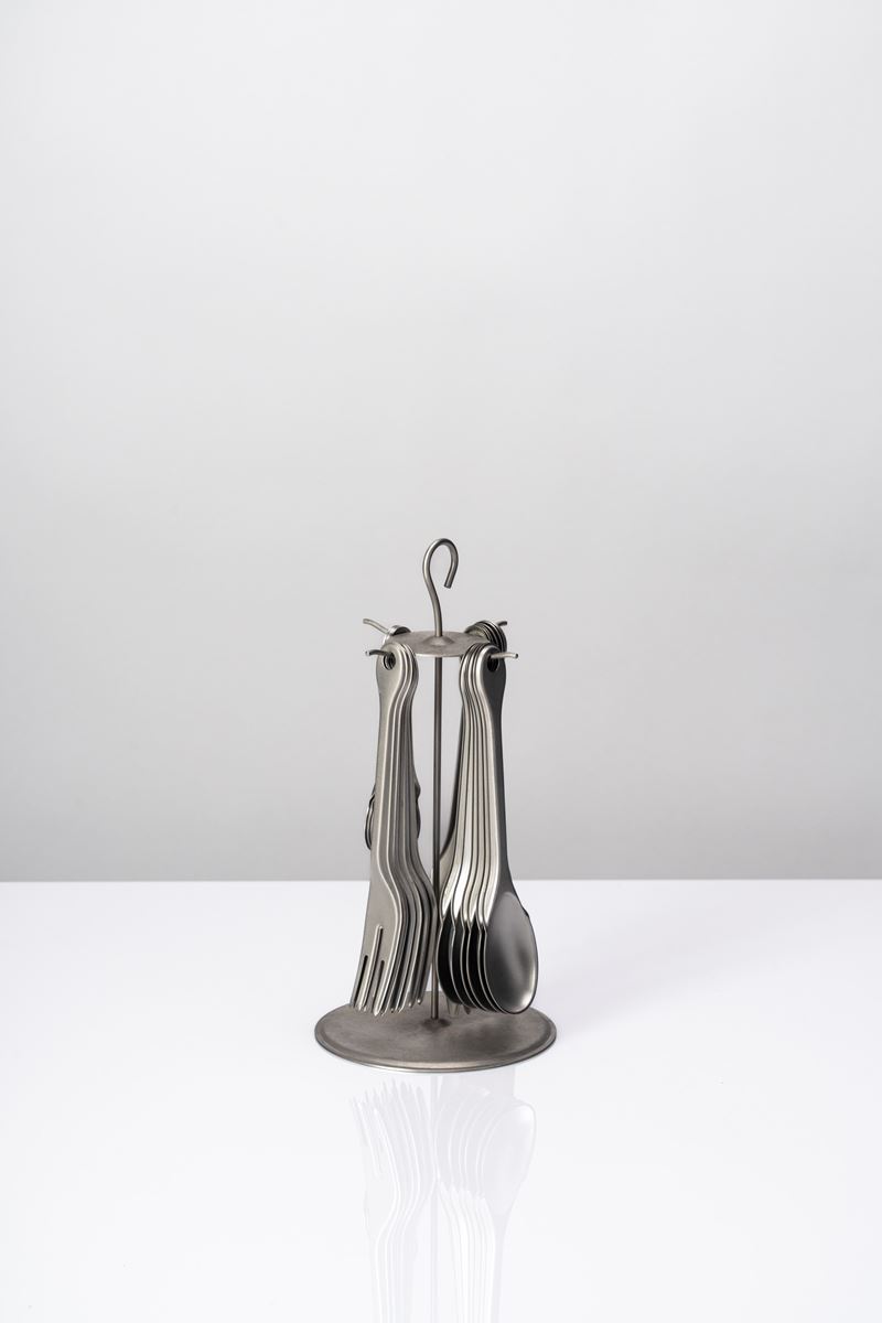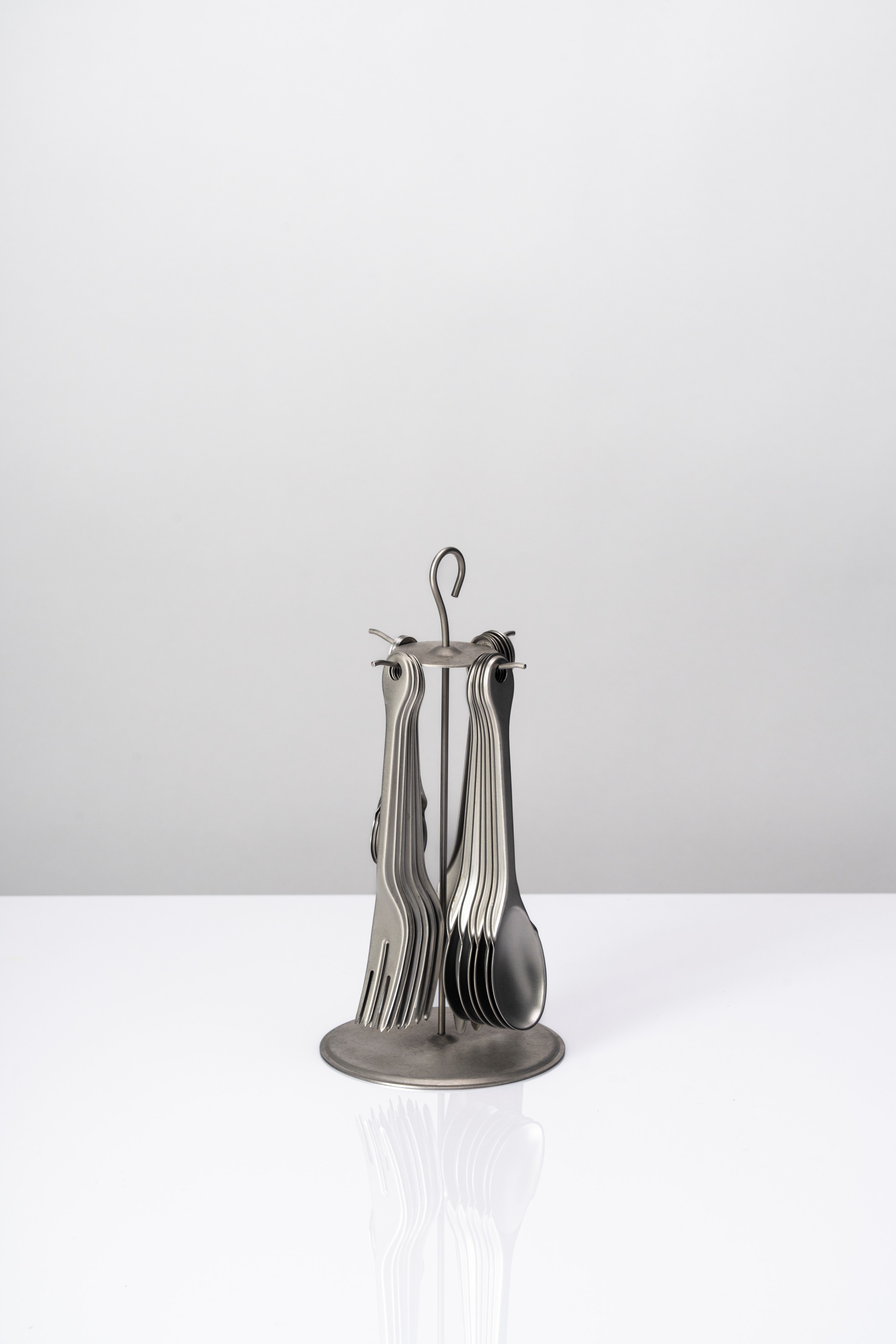 Servizio modello 'Piuma' composto da 6 forchette, 6 coltelli, 6 cucchiai e 6 cucchiaini
