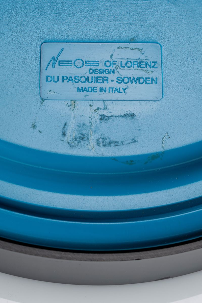 marchio del produttore NEOS sul quadrante, NEOS OF LORENZ, DESIGN, DU PASQUIER - SOWDEN, MADE IN ITALY sul retro