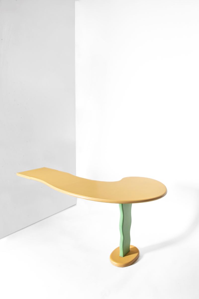 Scrivania da parete in legno sagomato laccato policromo