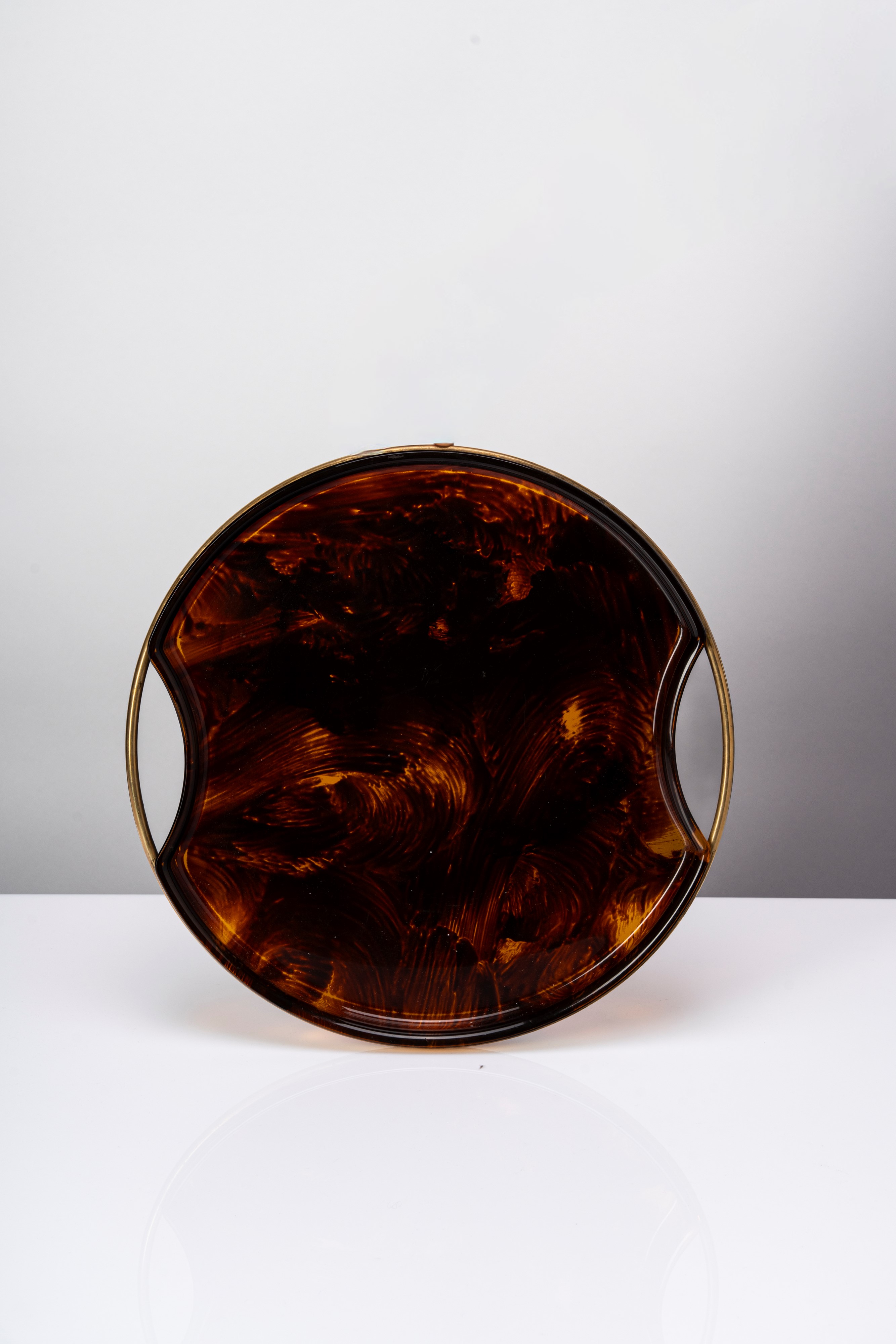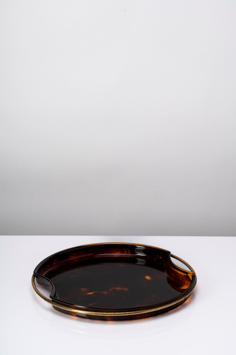 Vassoio circolare con dettagli in ottone e piano in materiale plastico decorato simil carapace