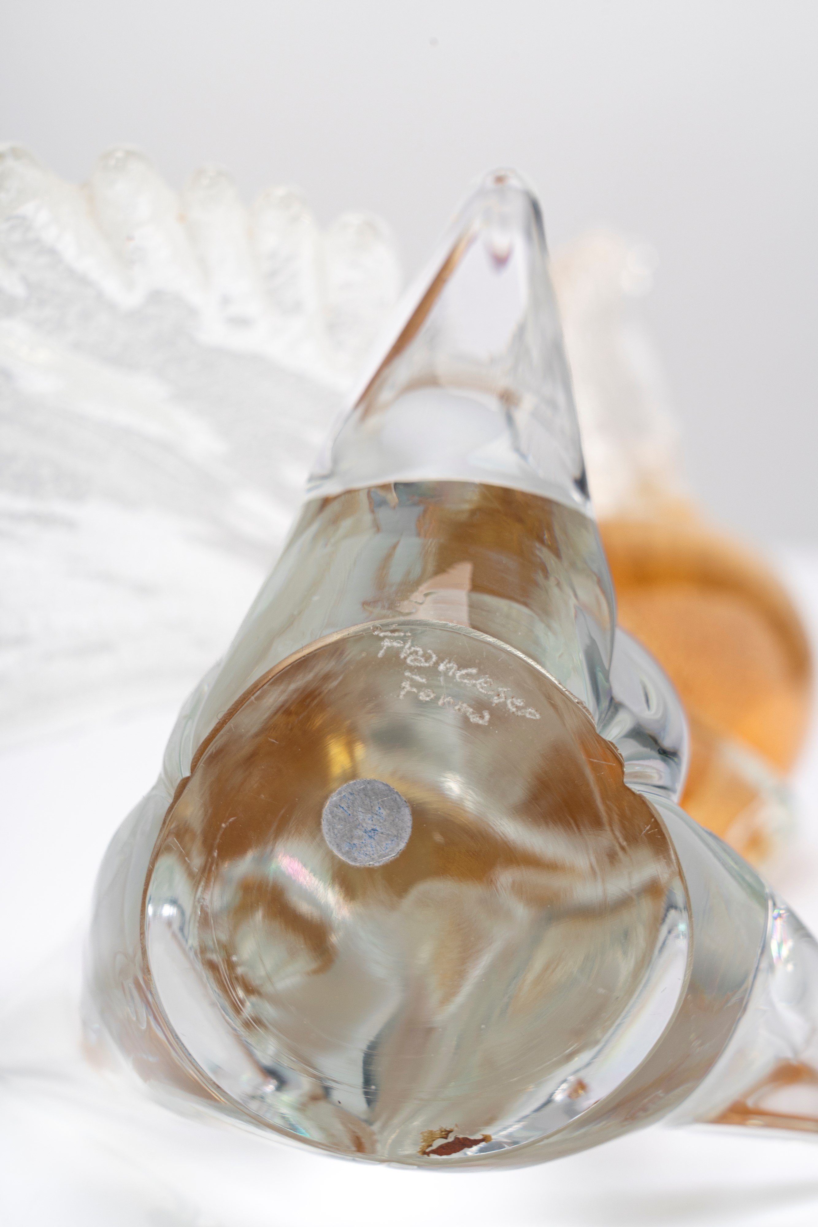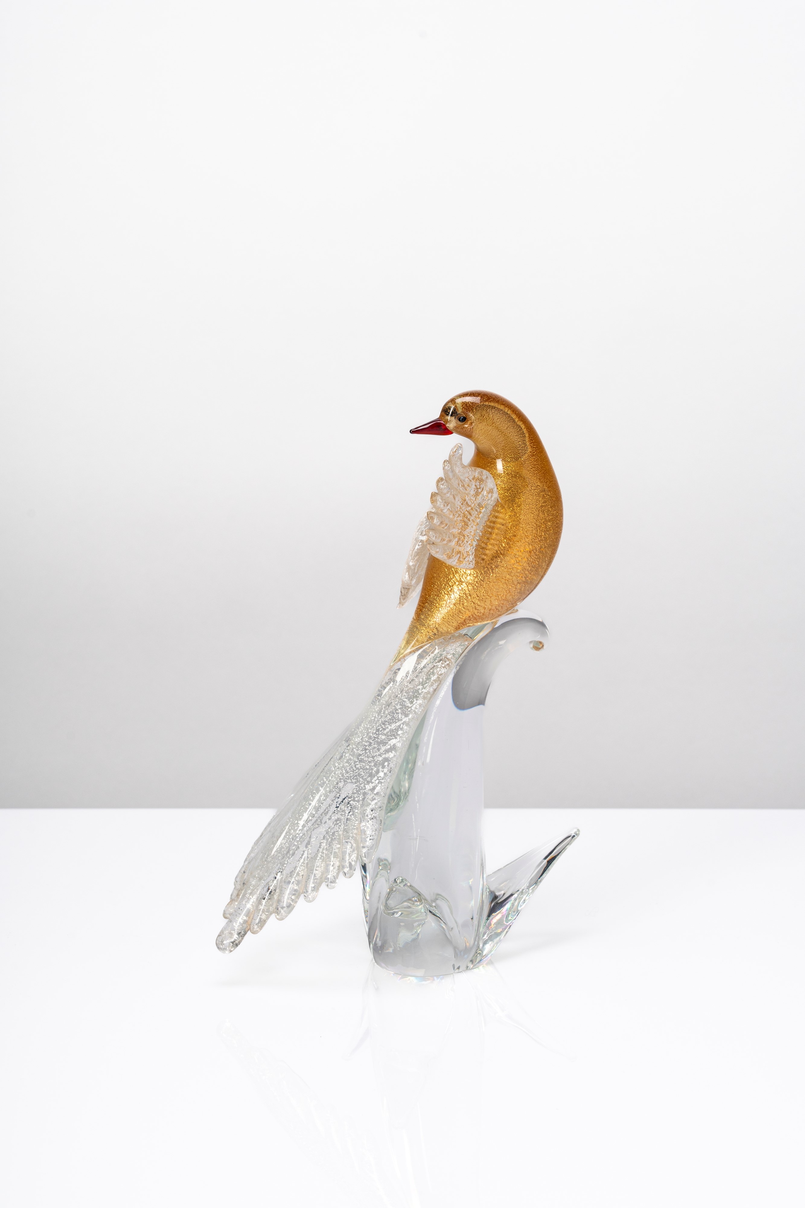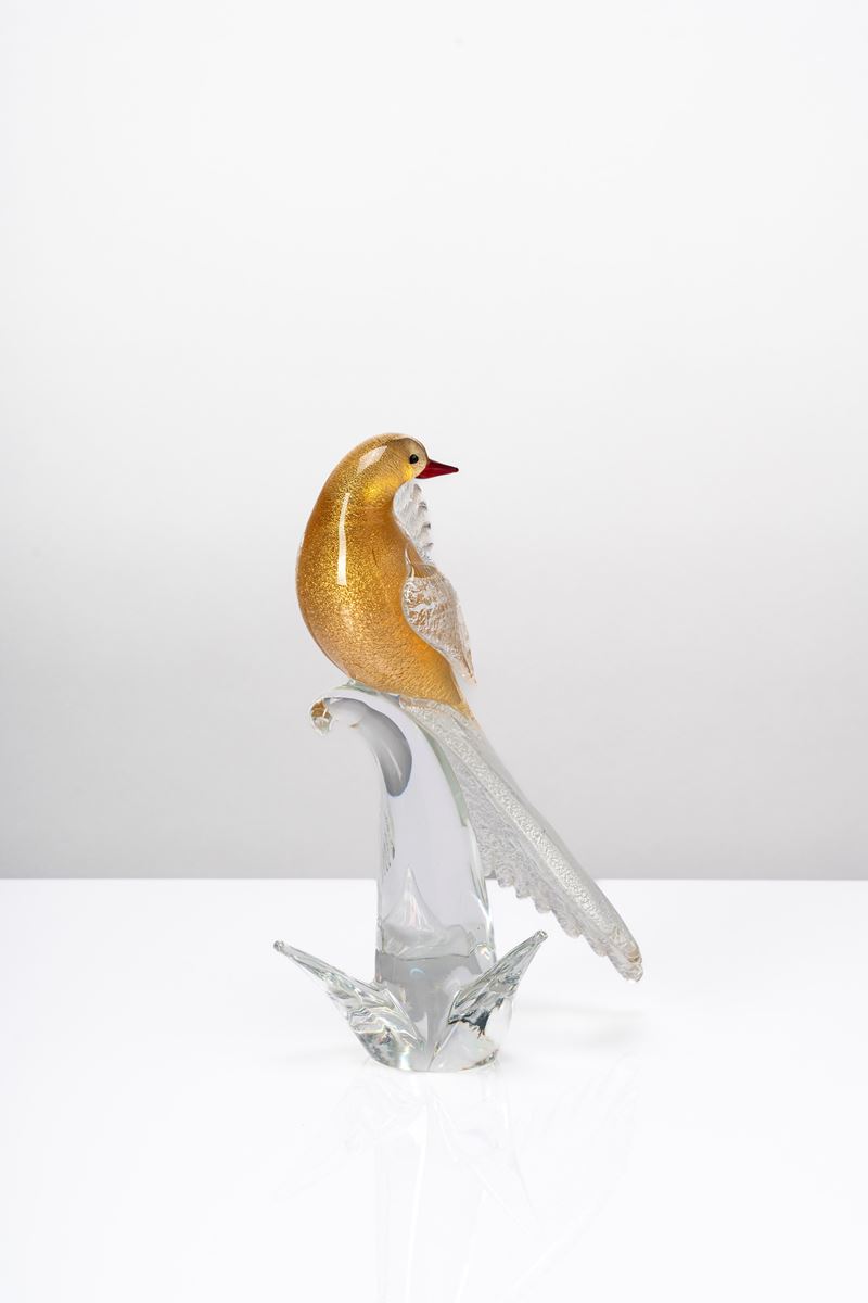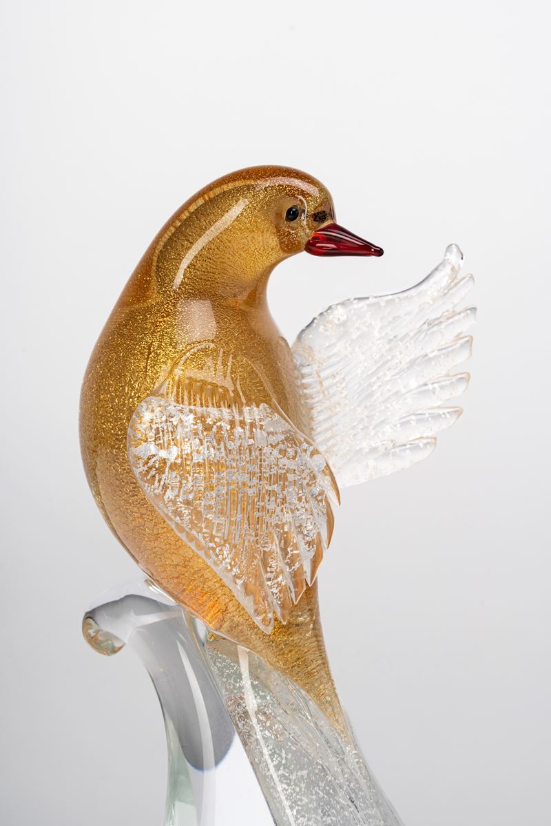 Scultura in vetro massiccio raffigurante uccellino con dettagli applicati a caldo