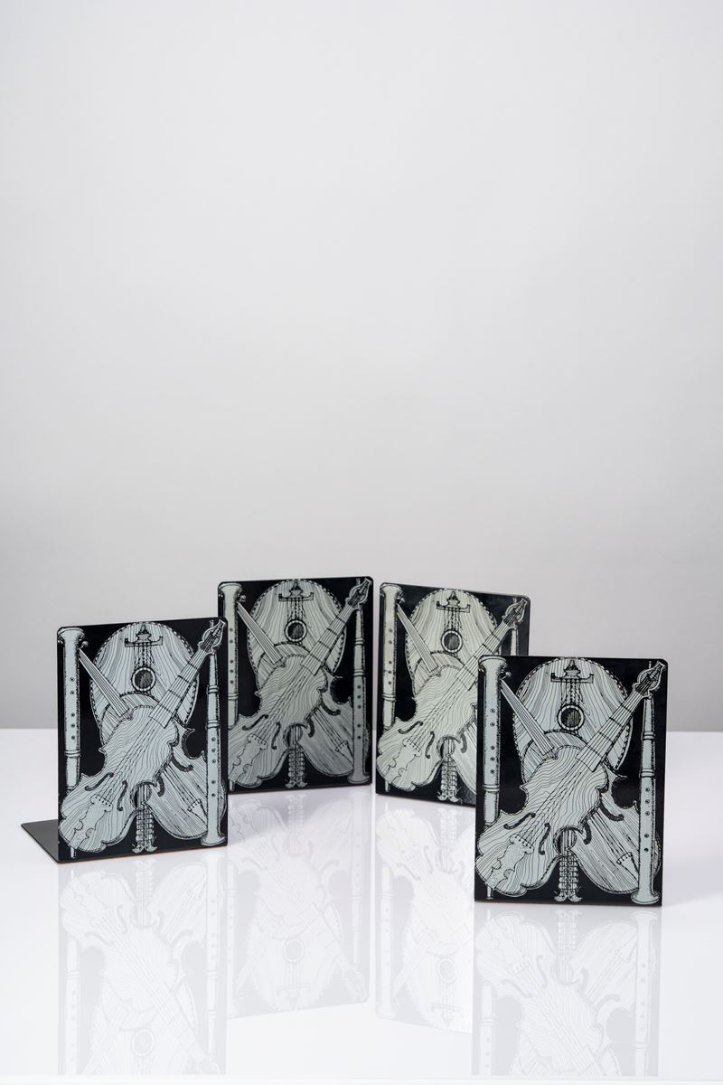 Set di quattro di fermalibri con decoro serigrafato 'Strumenti musicali'
