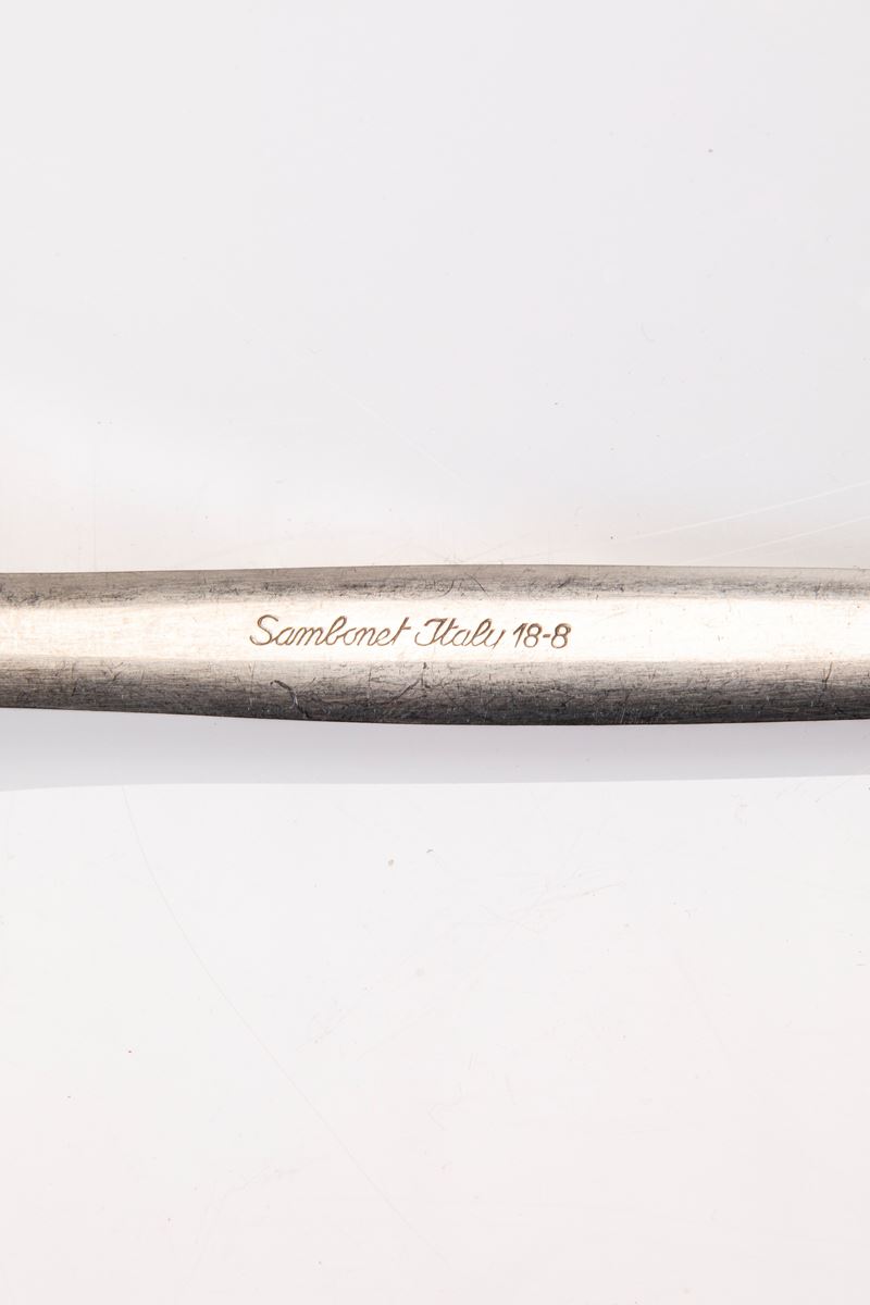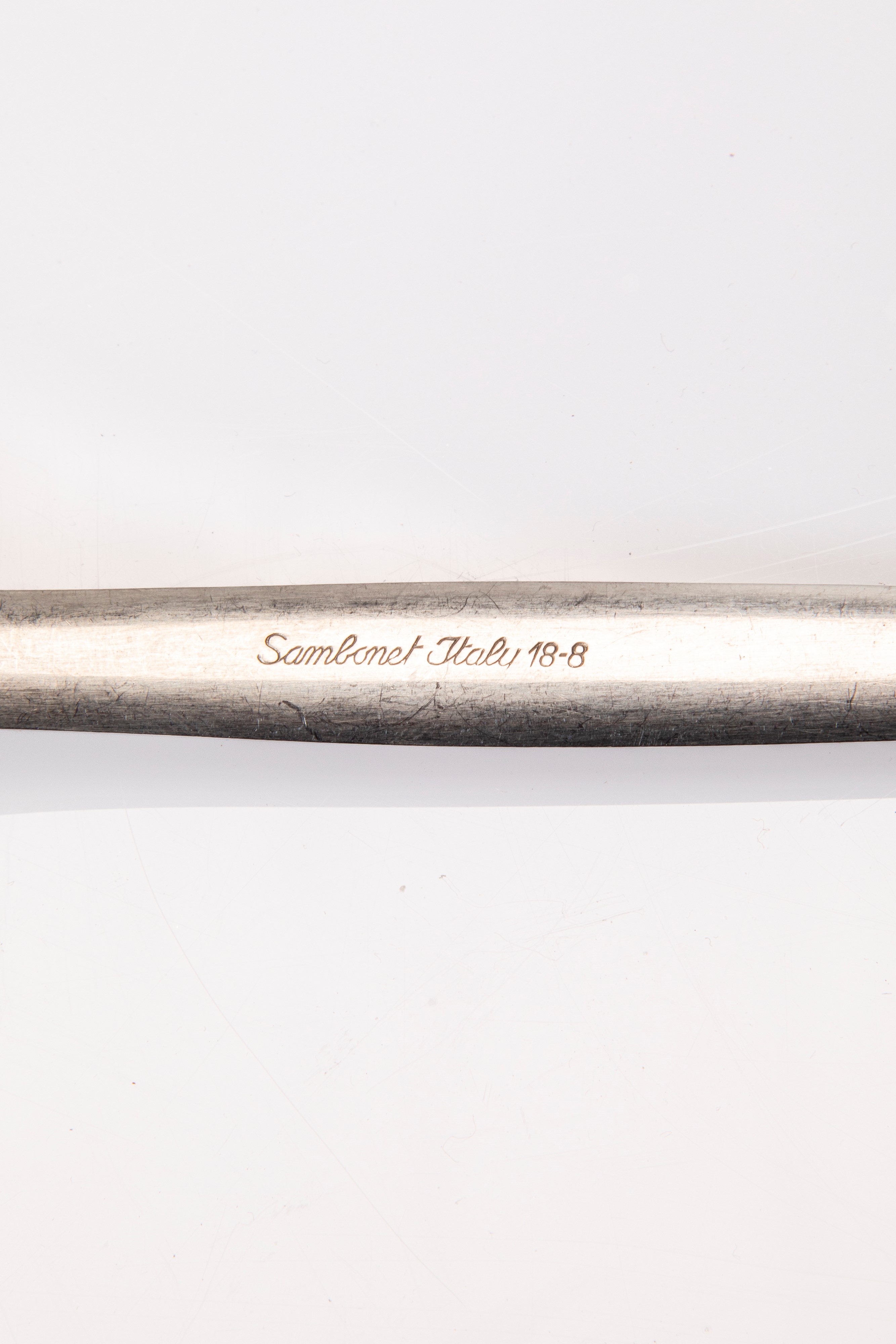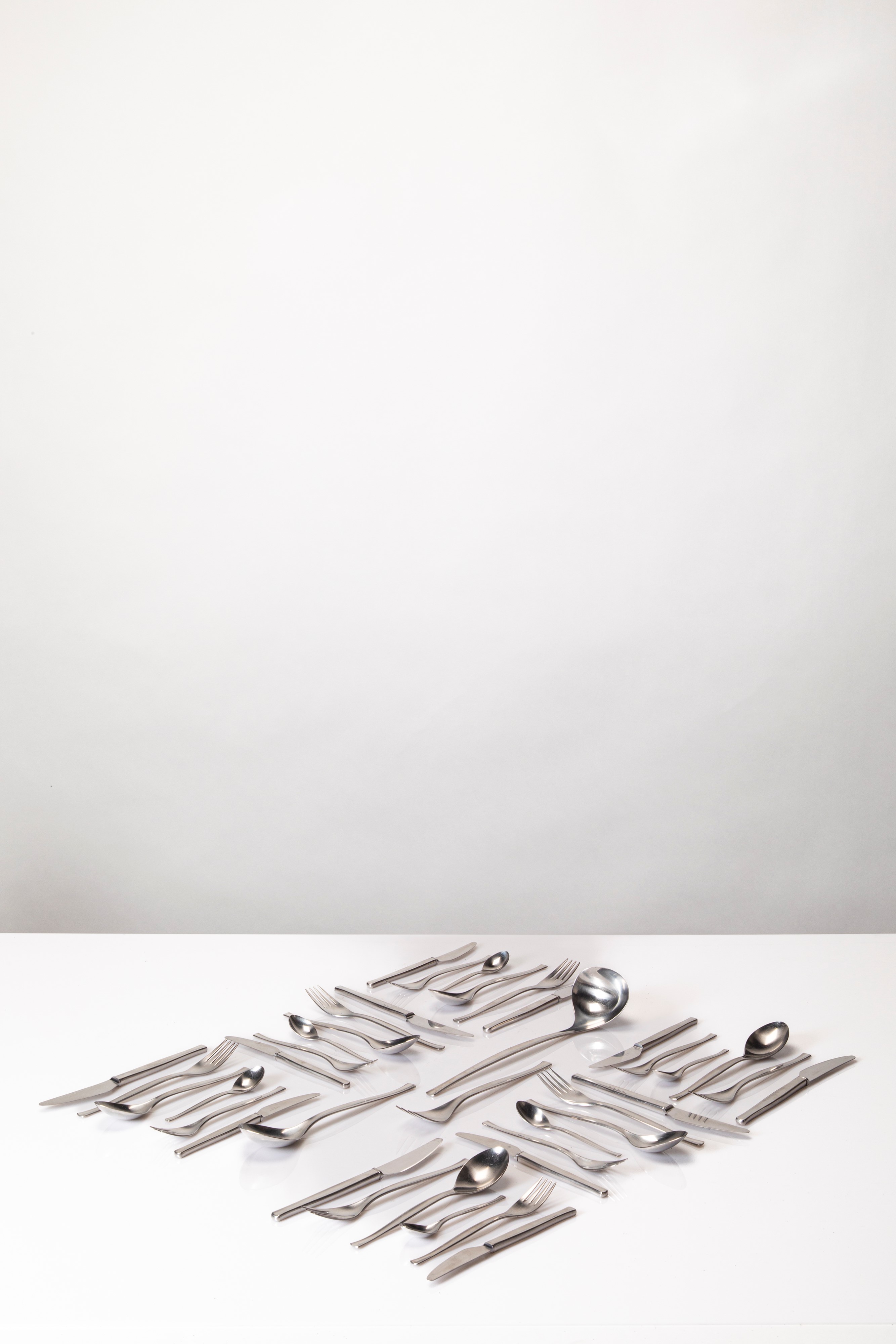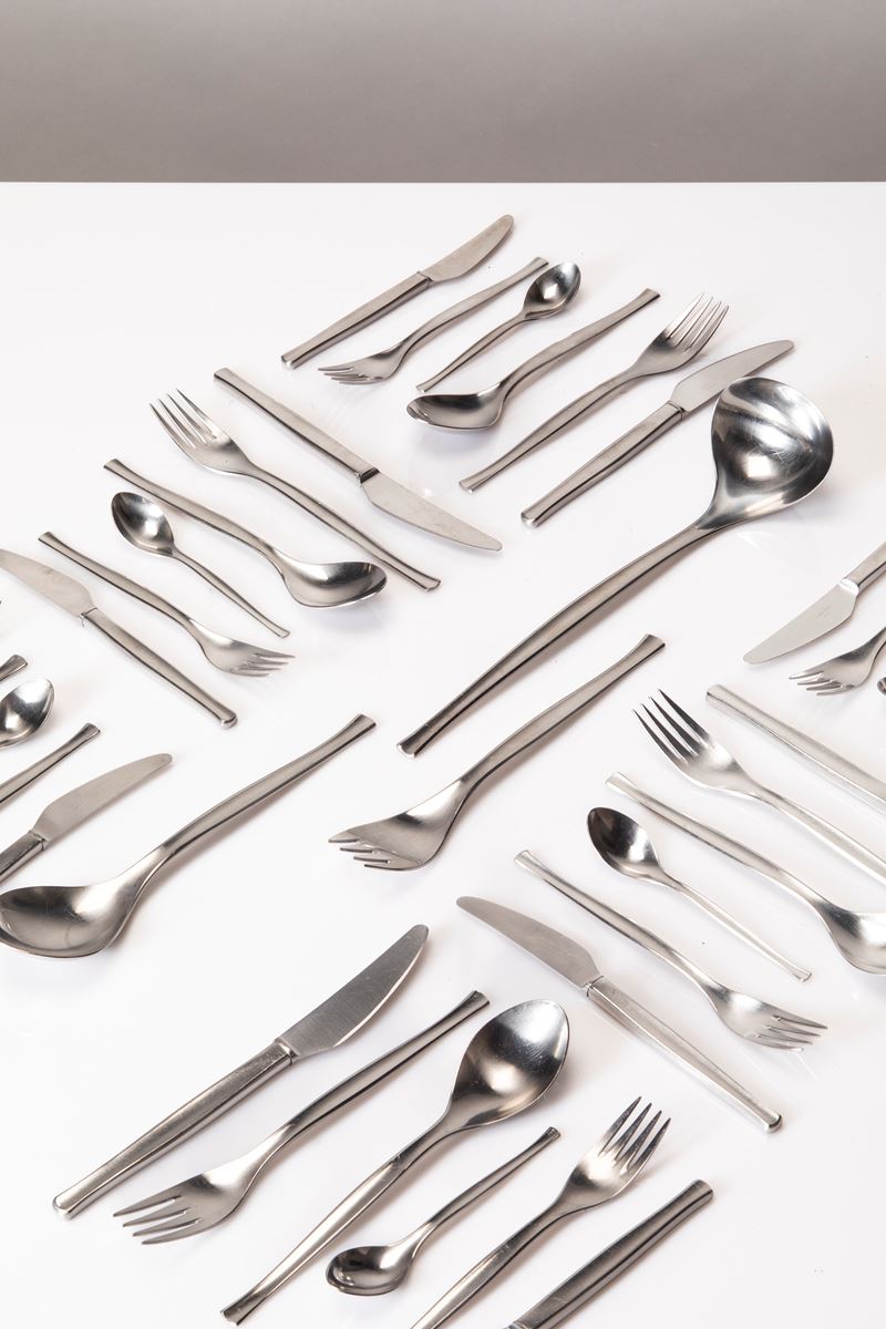 Servizio di posata composto da 12 coltelli da tavola, 12 coltelli da frutta, 12 cucchiai, 12 cucchiaini, 10 forchette da tavola, 10 forchette da frutta, 2 posate da insalata, 1 mestolo grande