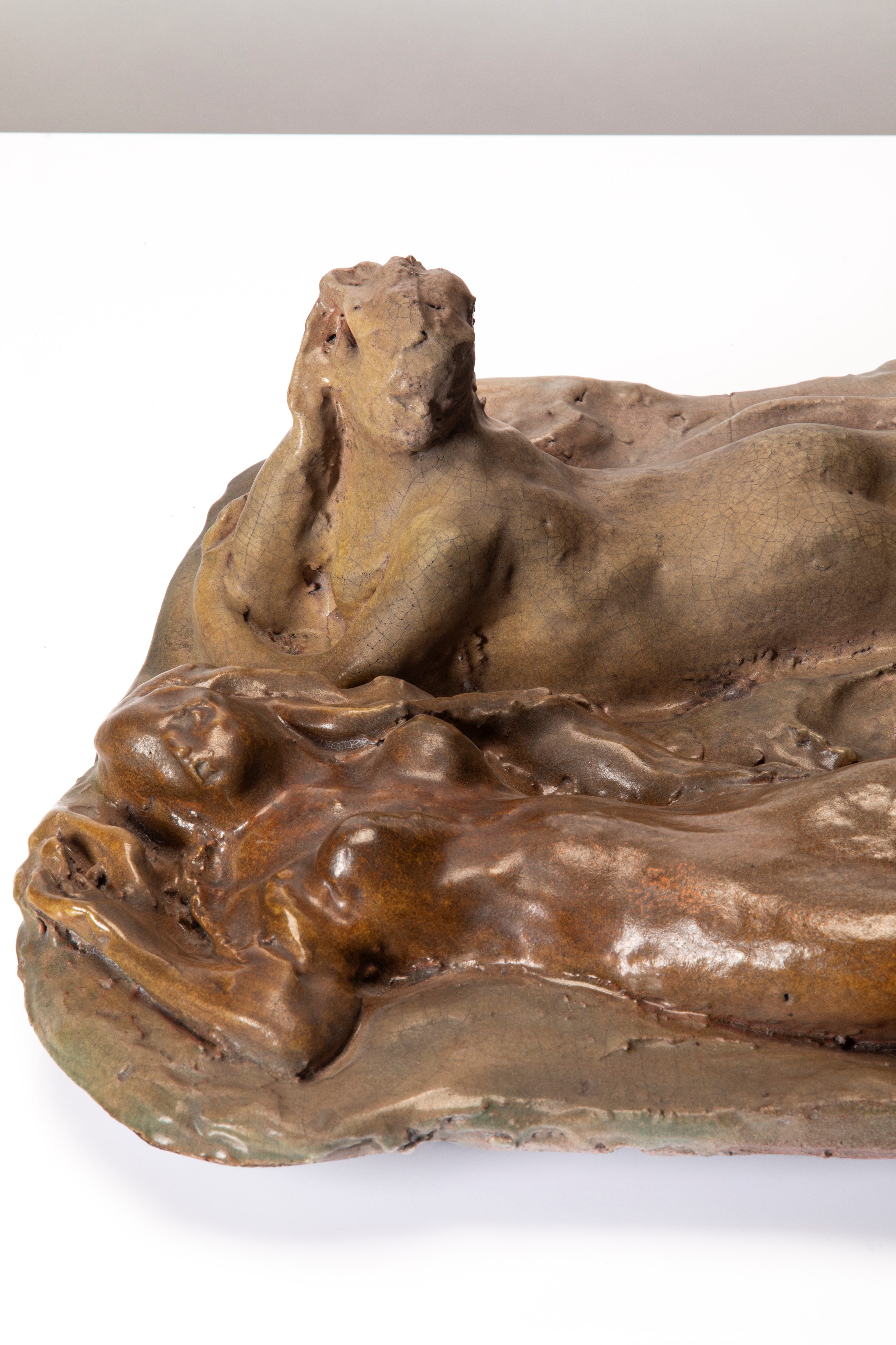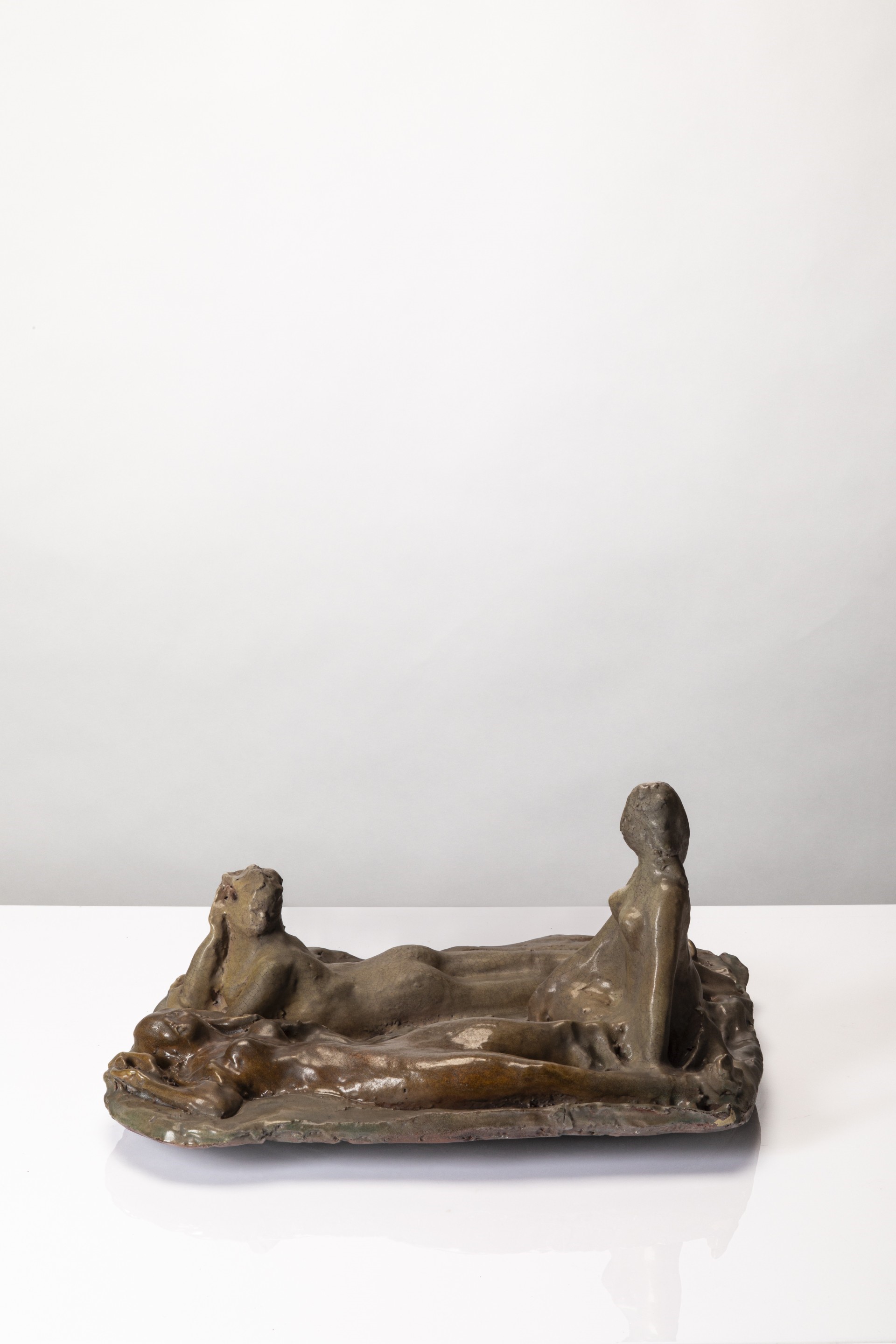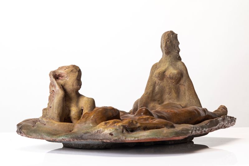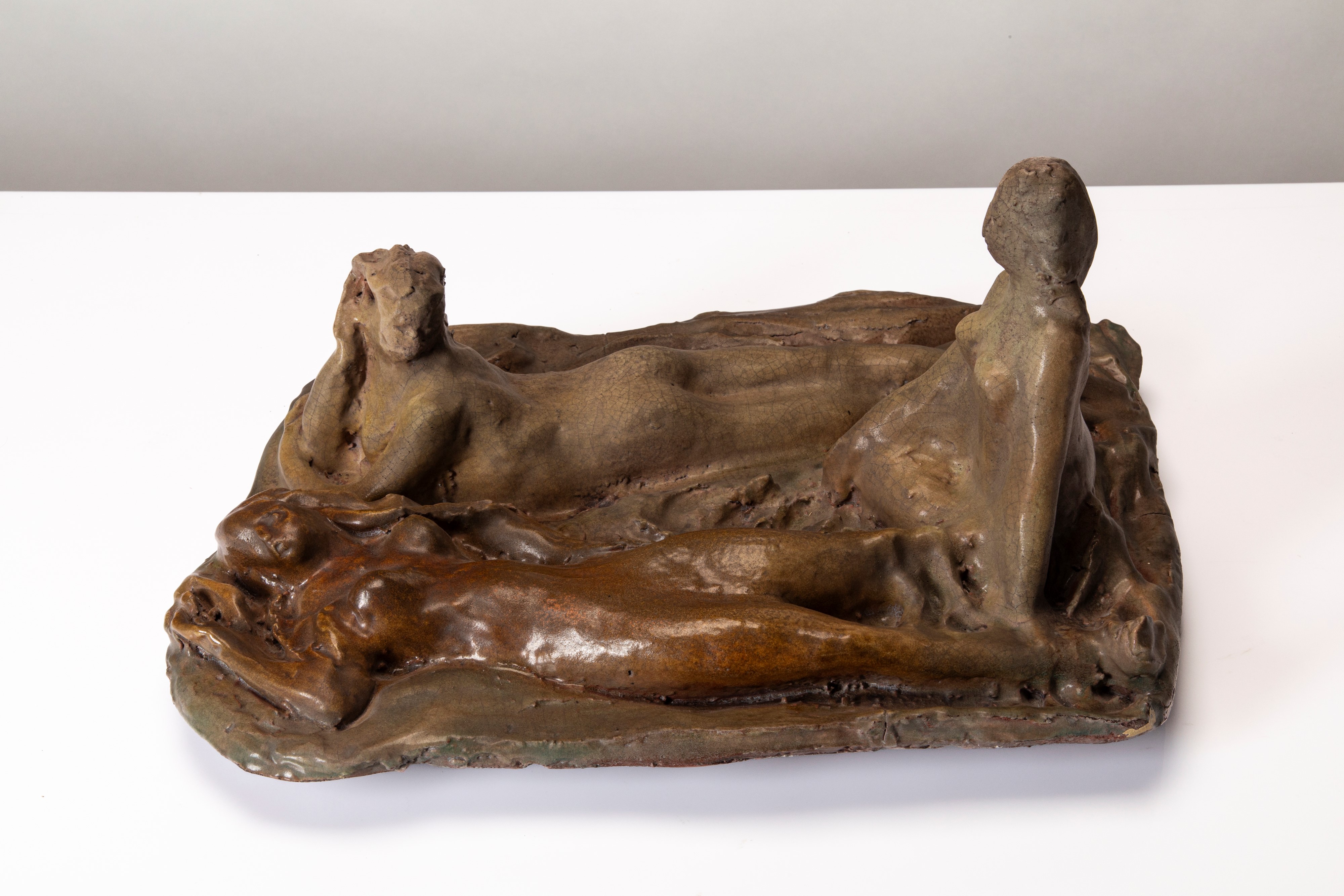Scultura in ceramica invetriata raffigurante tre nudi femminili