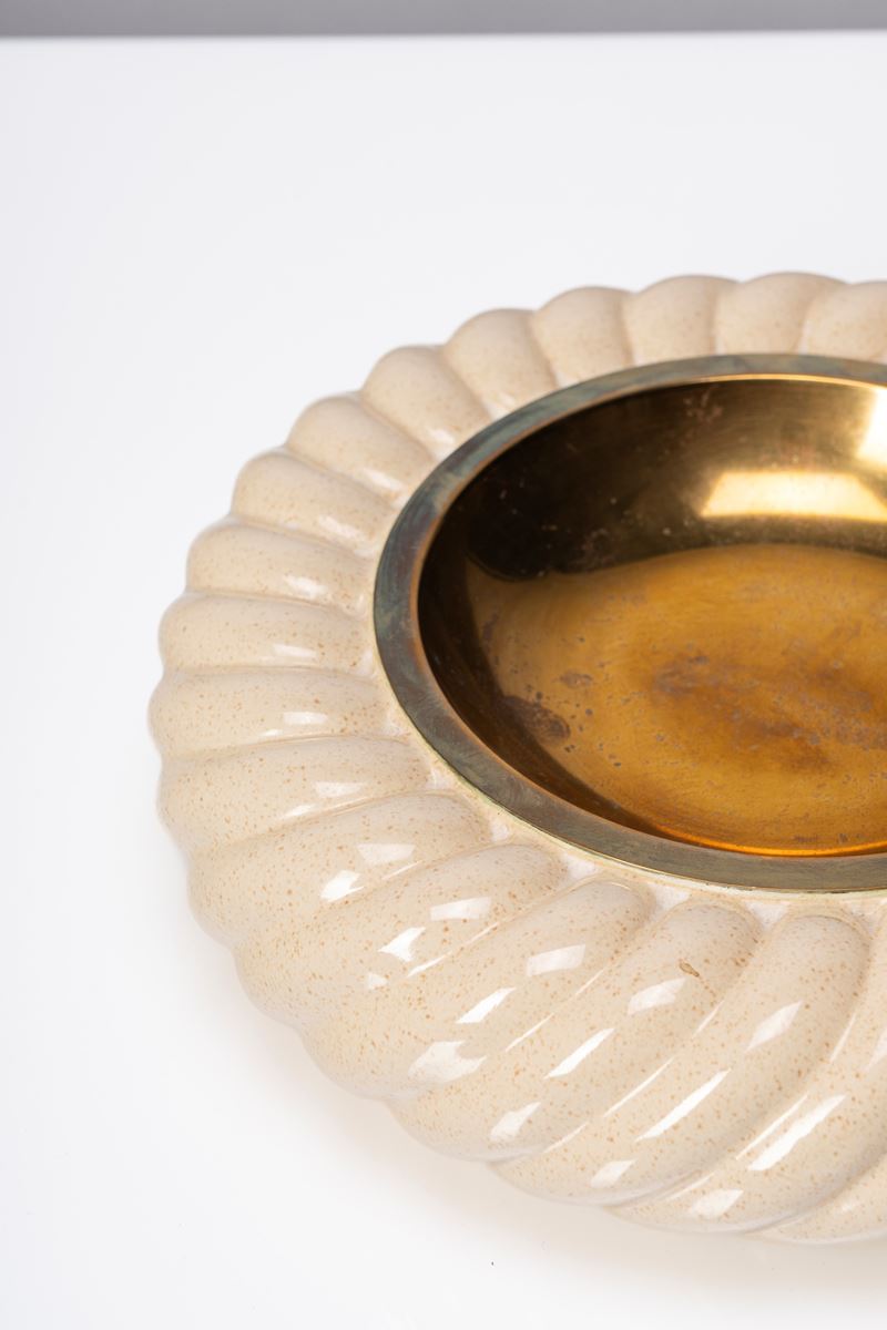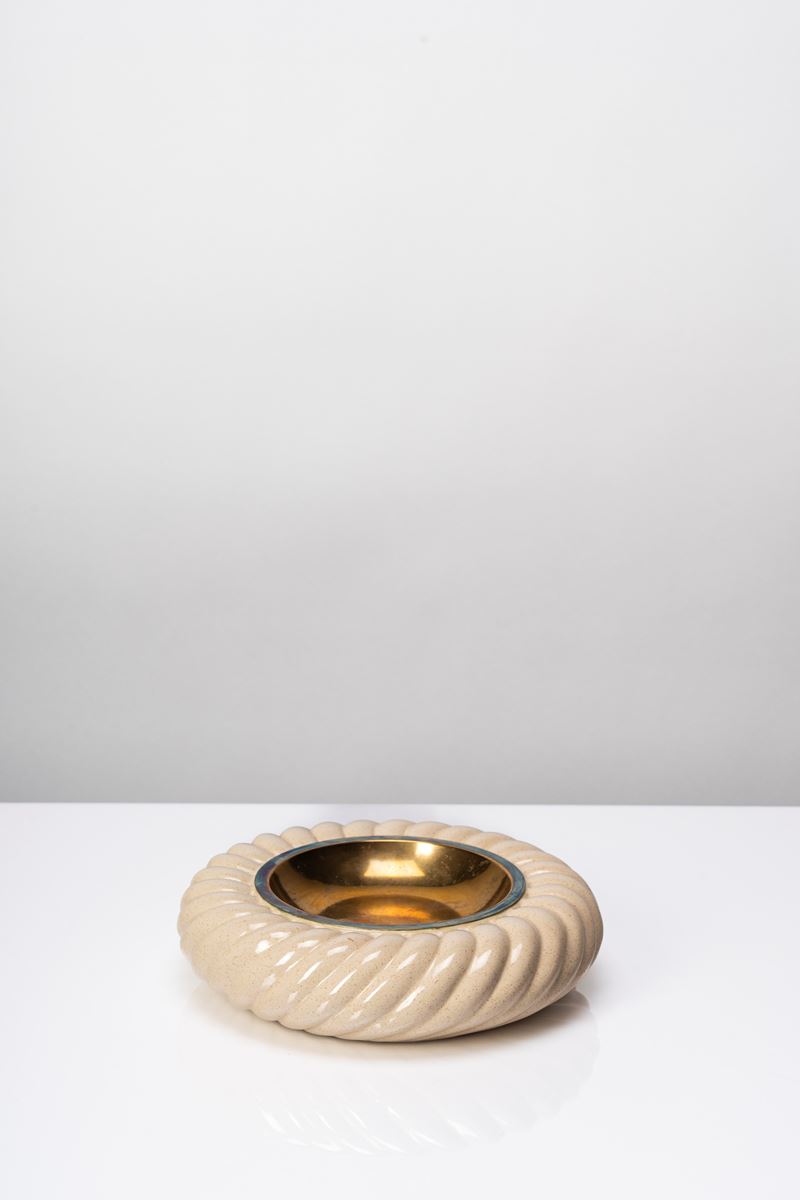 Posacenere in ceramica smaltata ed ottone