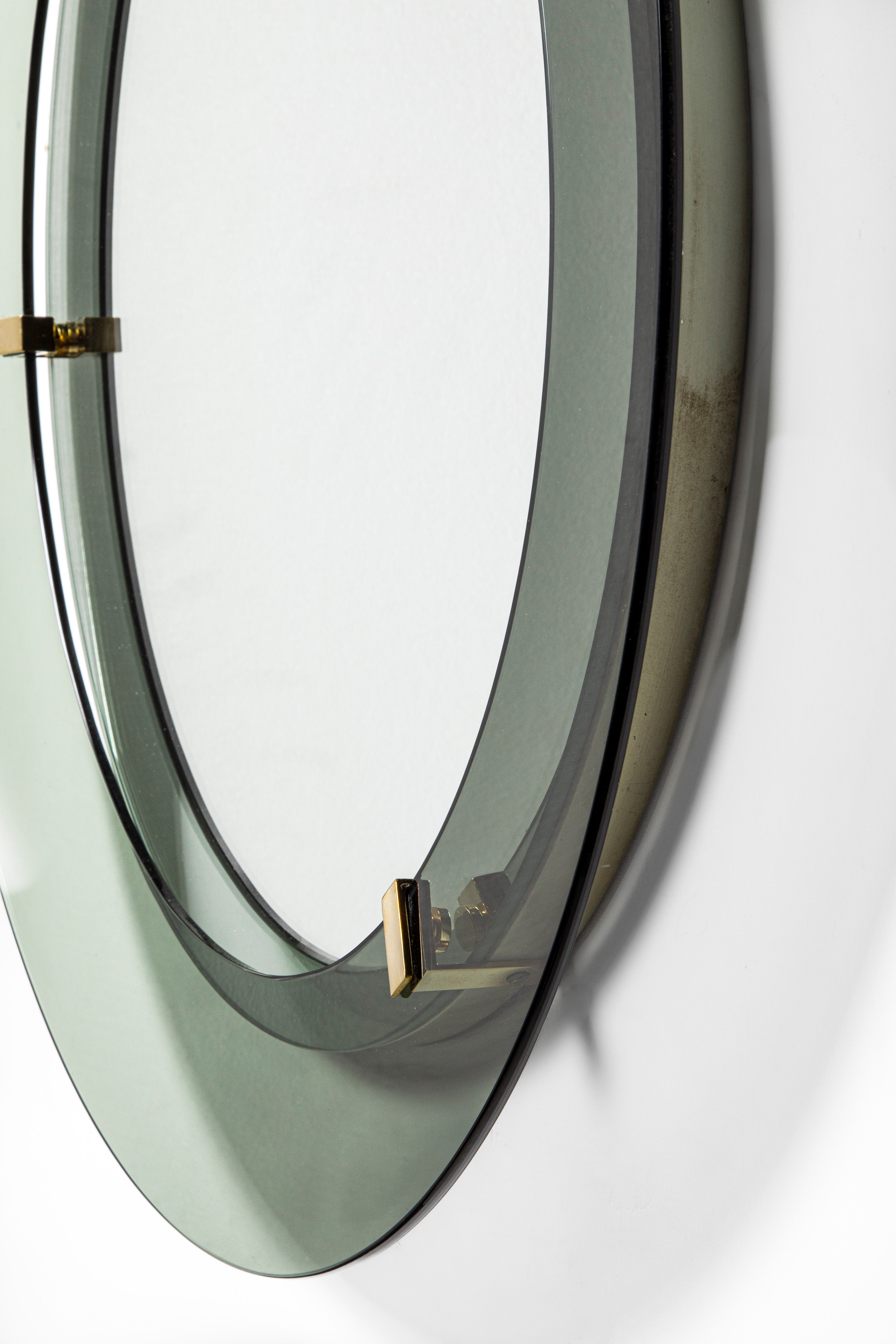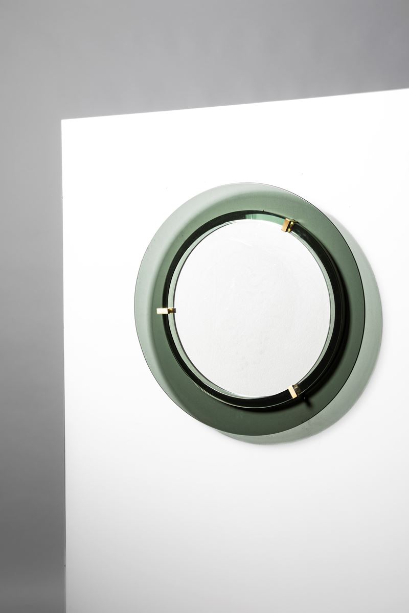 Specchio circolare con dettagli in ottone e cornice in vetro