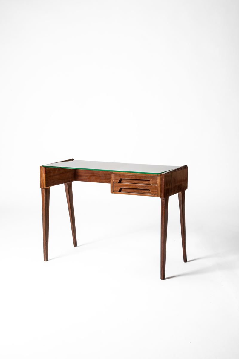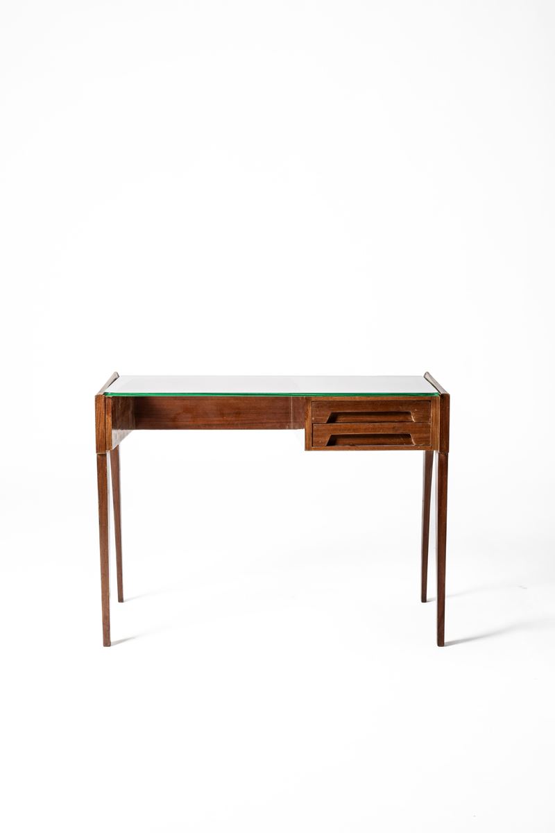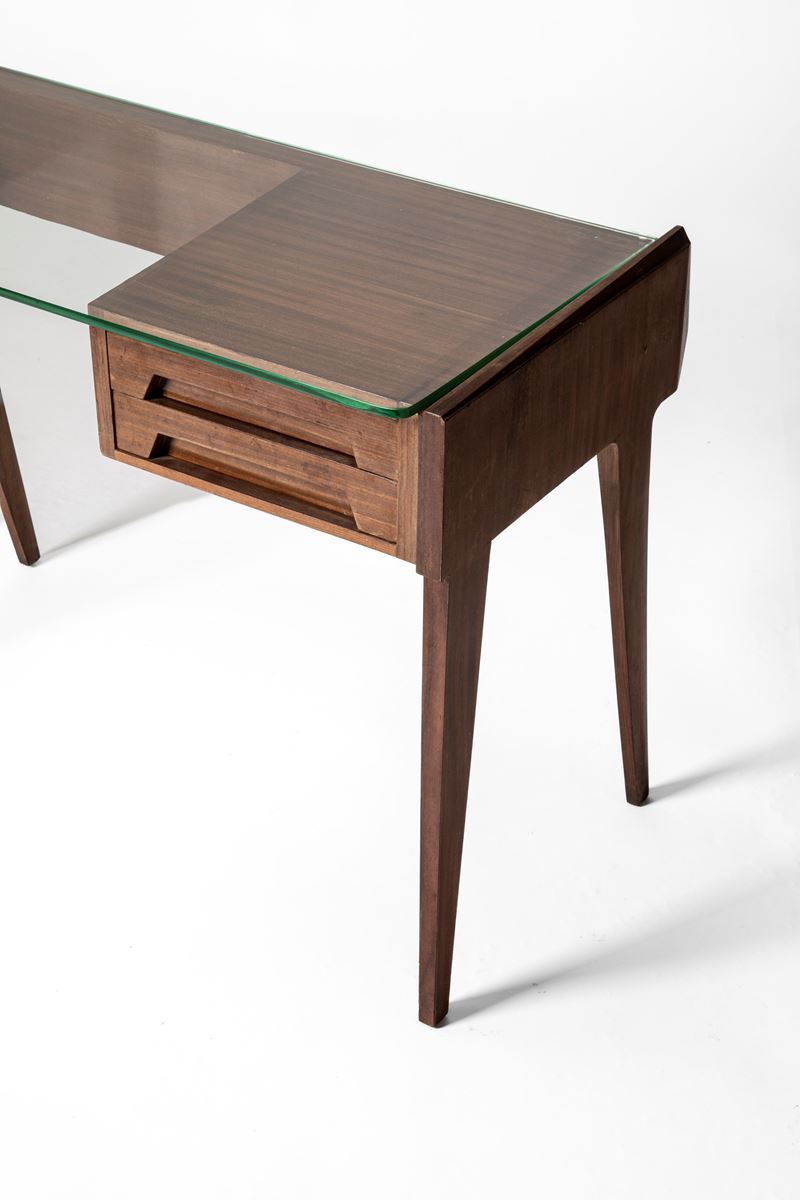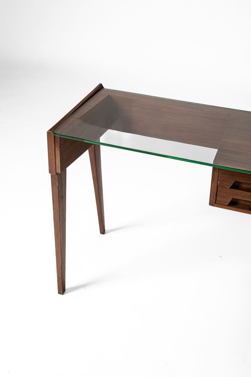 Scrittoio con piano in vetro e cassetti