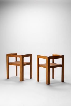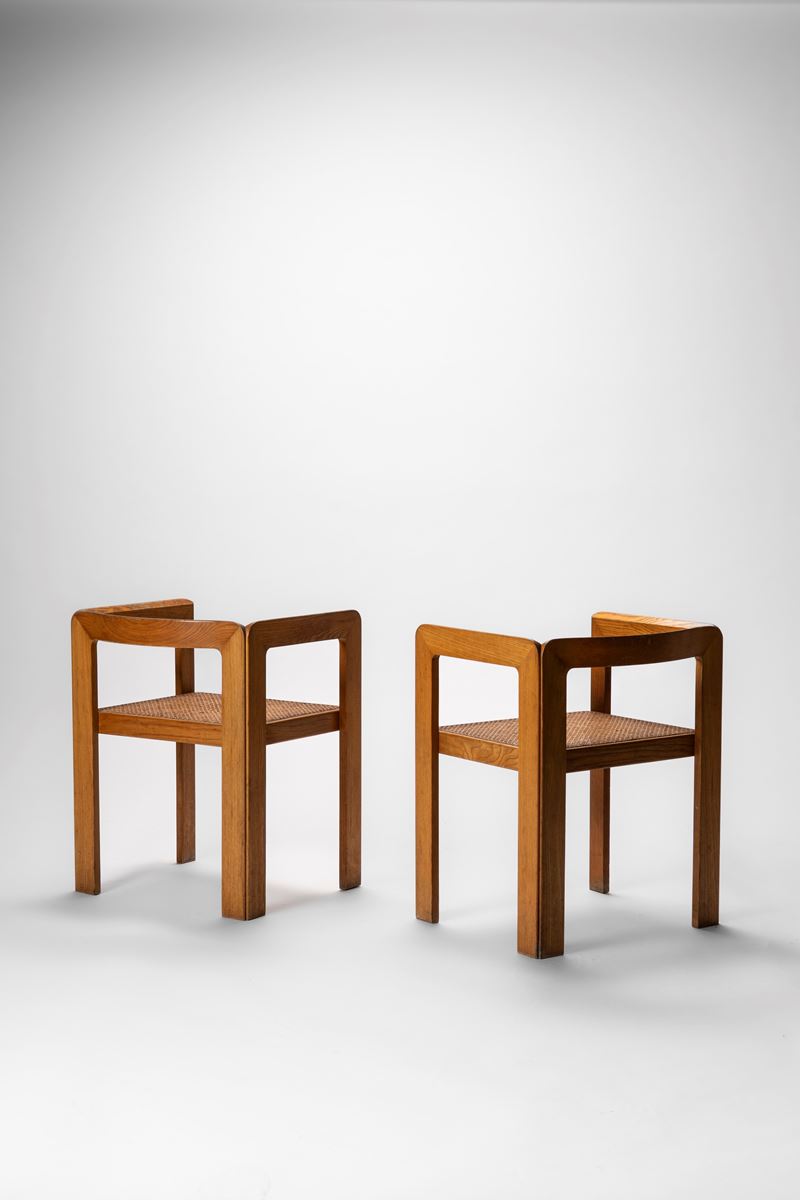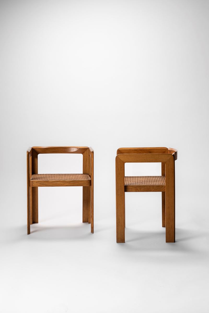 Coppia di poltroncine con struttura in legno di rovere e seduta in paglia di Vienna