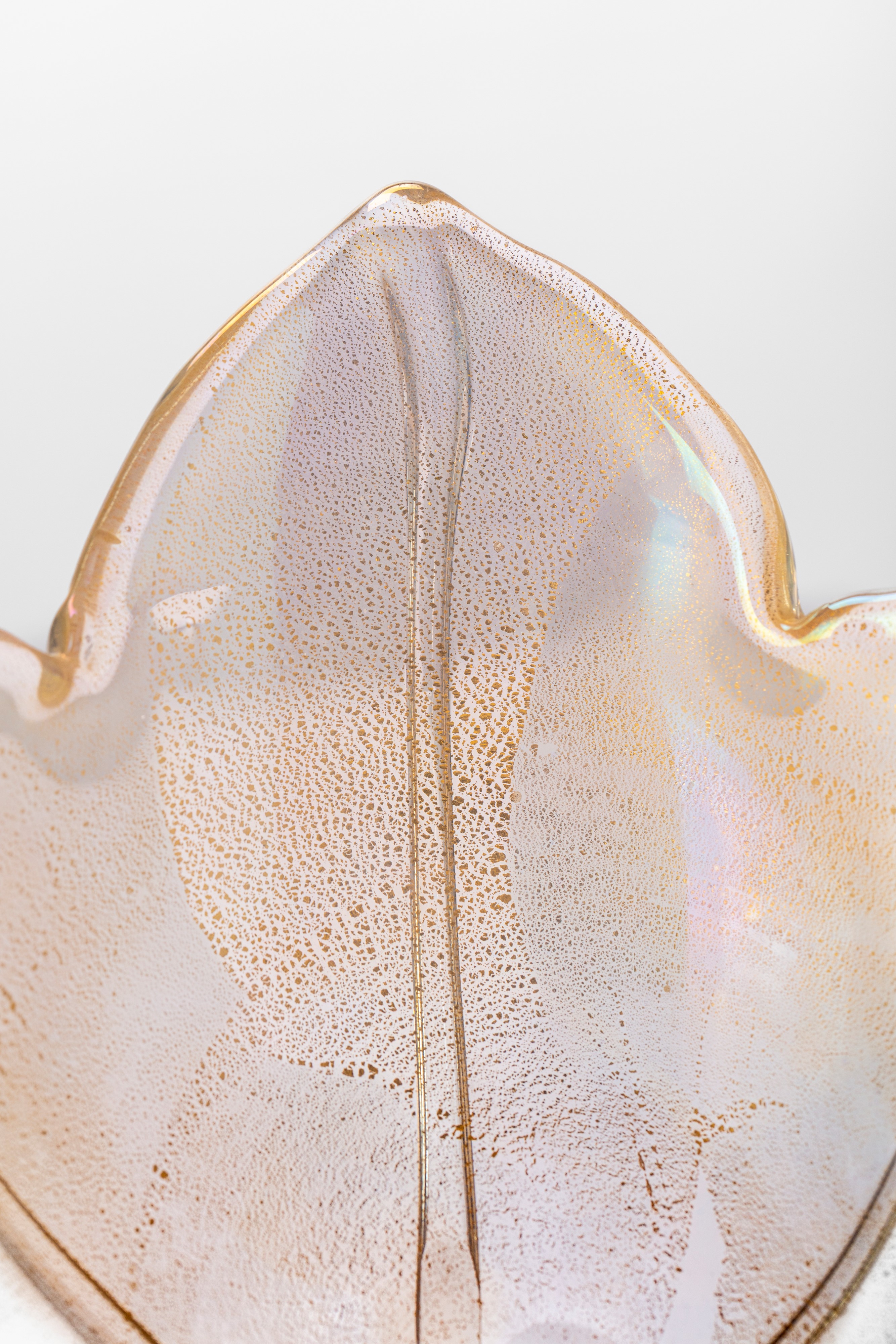 Coppa Foglia in vetro pagliesco con decoro a foglia oro