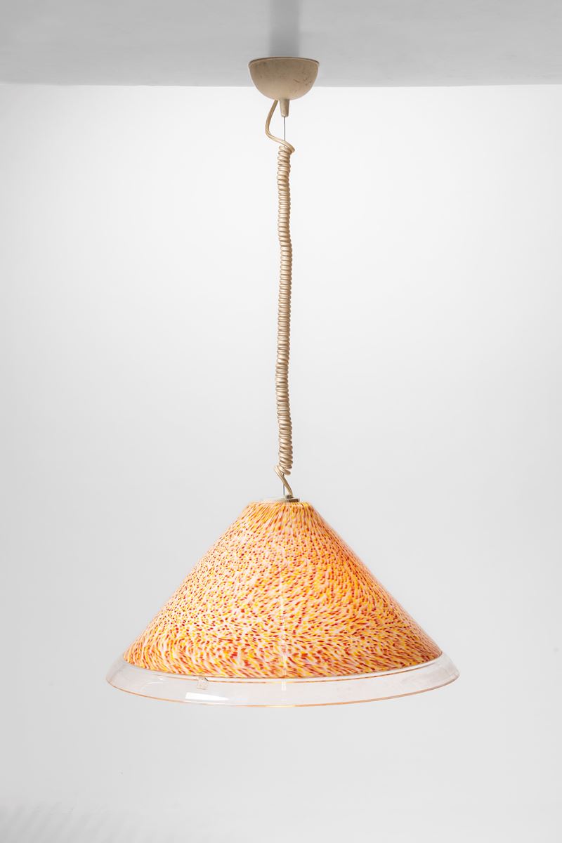 Lampada a sospensione in vetro soffiato policromo ed incolore modello Sora