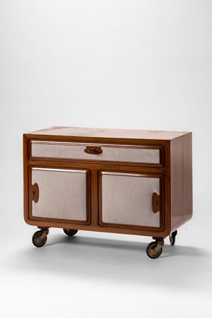 Mobiletto da centro mobile con struttura in legno e rivestimenti in tessuto