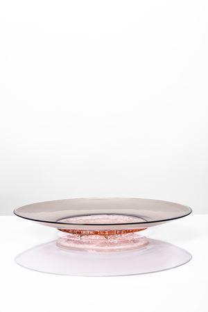 Piatto della serie Piatti di Tapio in vetro soffiato talpa con fondo ad incalmo in vetro rosato