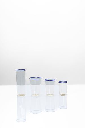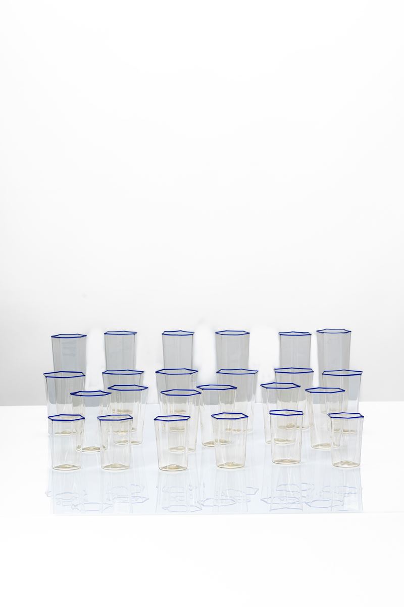 Servizio di 24 bicchieri in vetro soffiato con bocca esagonale decorata con filo vitreo applicato a caldo