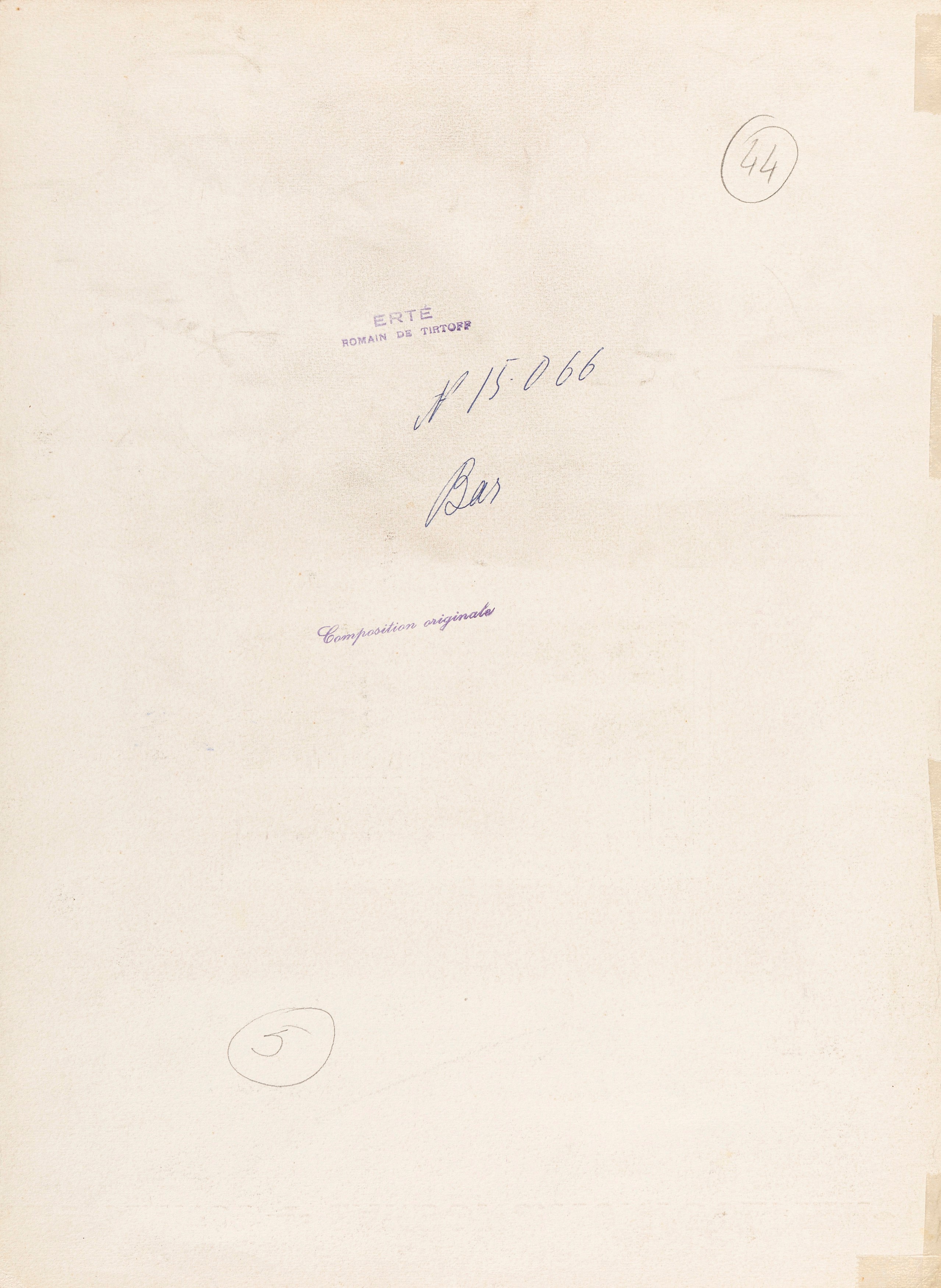 Disegno originale realizzato da Erté negli anni '50. Recante al retro il titolo, il timbro dell'artista e il numero d'archivio 15066. Firmato.