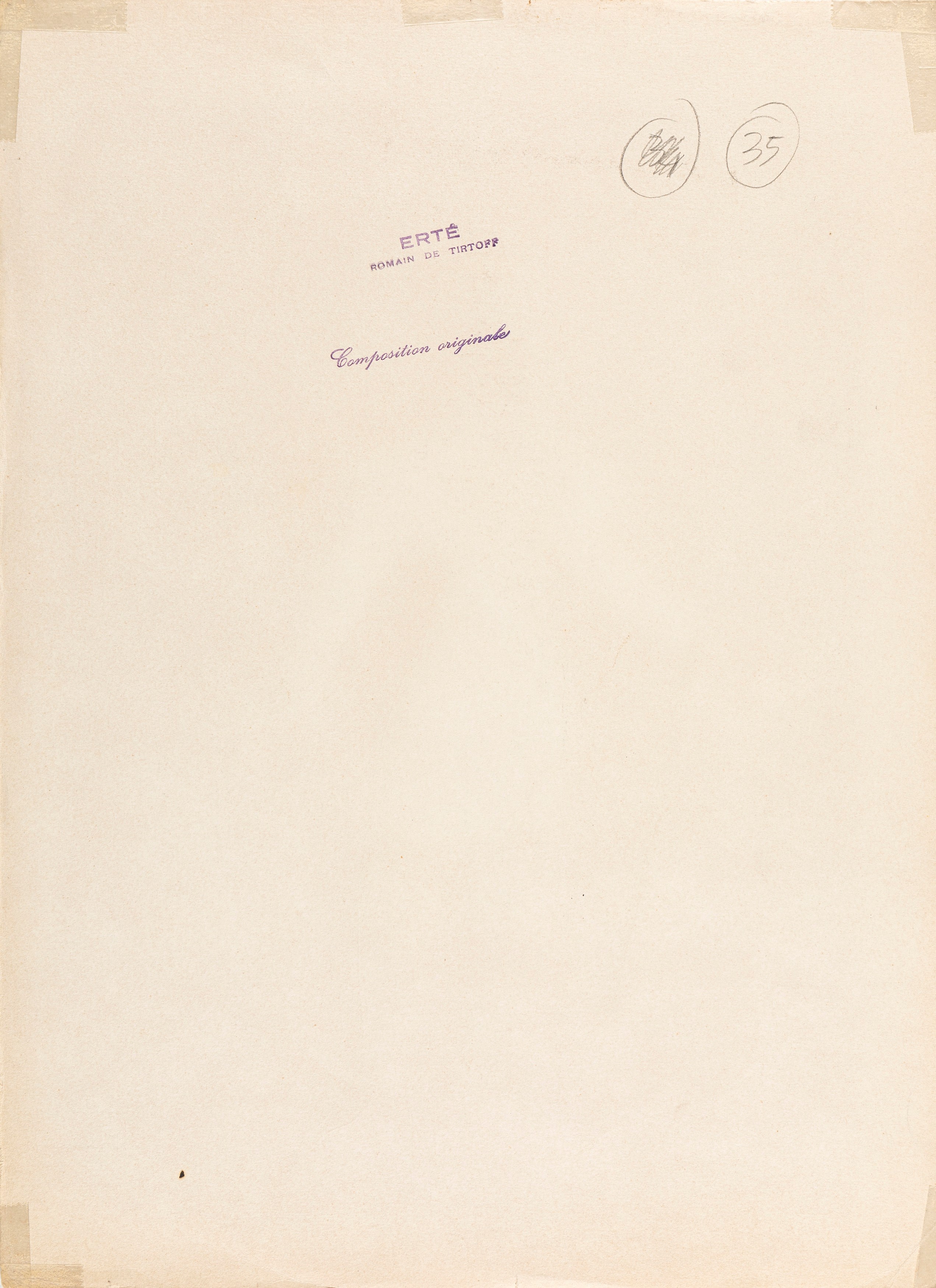 Coppia di 2 disegni originali realizzato da Erté negli anni '40 per i costumi di una rappresentazione teatrale. Recanti al retro il timbro dell'artista. Firmati.