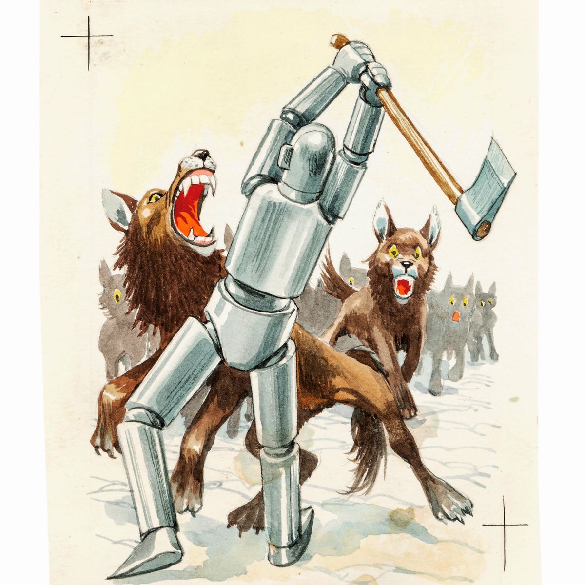 Lotto composto da 6 illustrazioni originali realizzate da Maraja per il romanzo "Il mago di Oz" di L. Frank Baum edito nel 1957. Lievi ondulature.