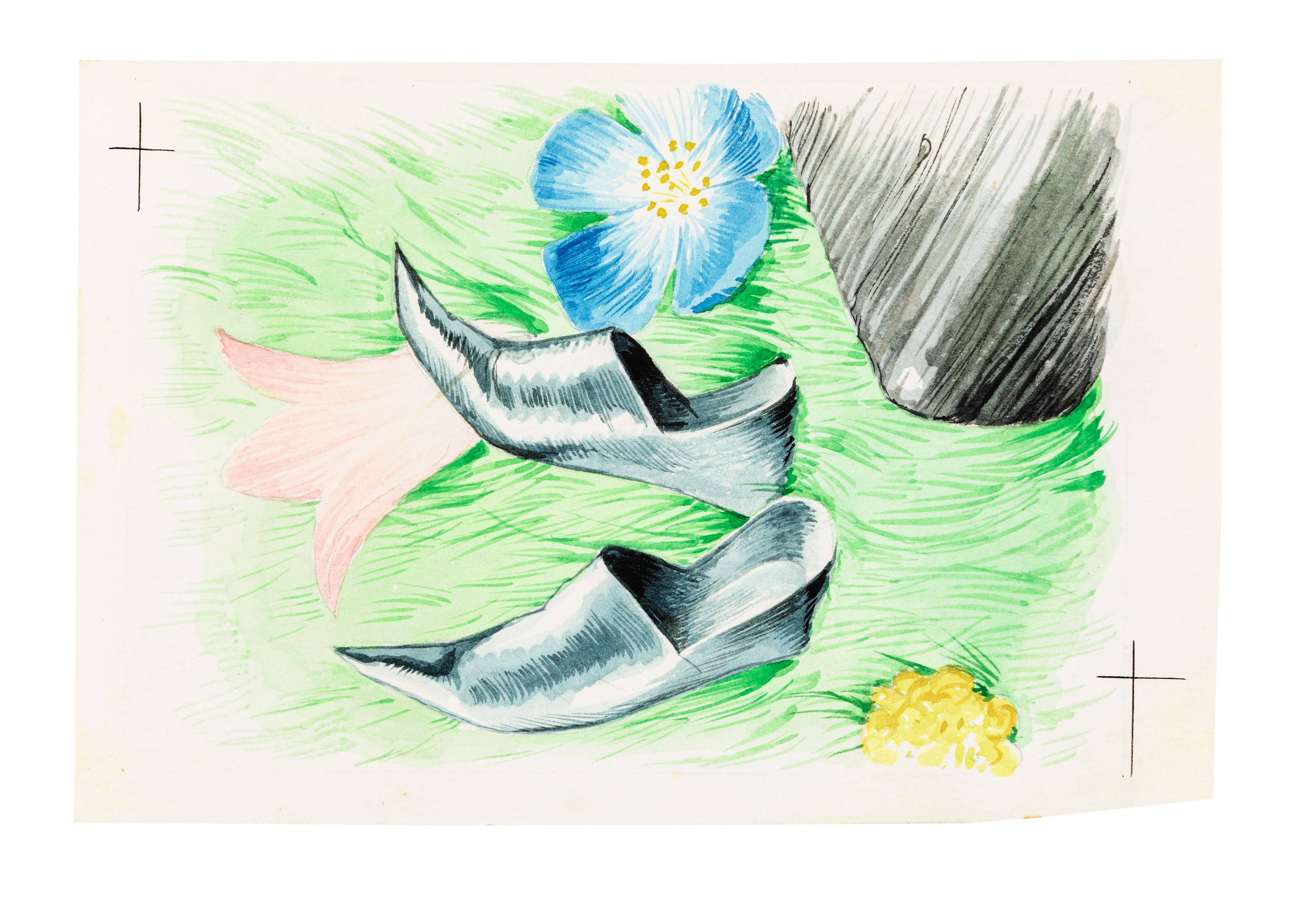 Lotto composto da 9 illustrazioni originali realizzate da Maraja per il romanzo "Il mago di Oz" di L. Frank Baum edito nel 1957. Alcune ondulature della carta e un piccolo strappo.