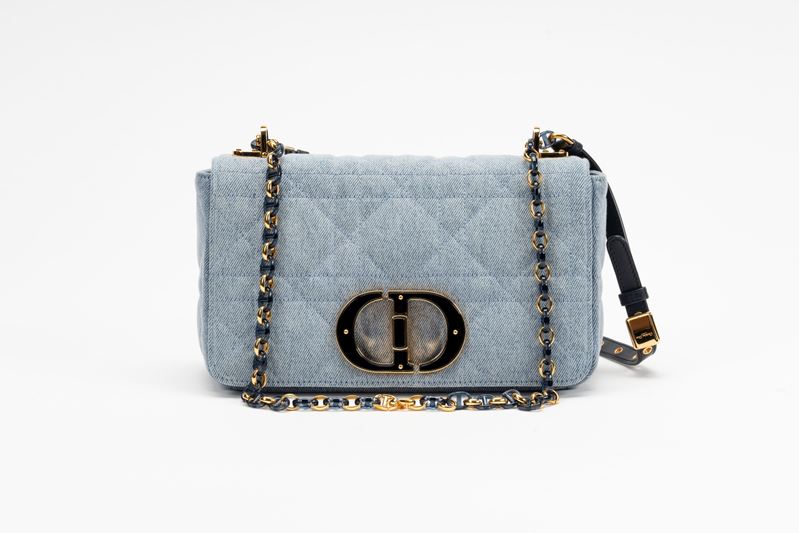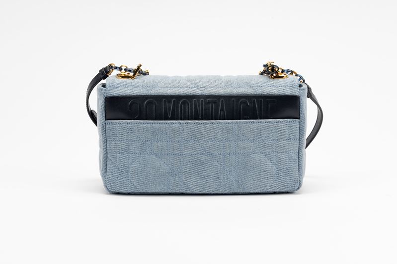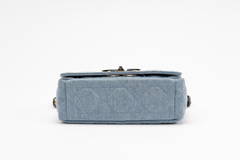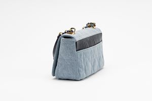 in denim marcocannage color blu, tracolla regolabile a catena e pelle, dettagli in metallo dorato, cm 25, con sacchetto (lievissimi segni d'uso)Base d'asta