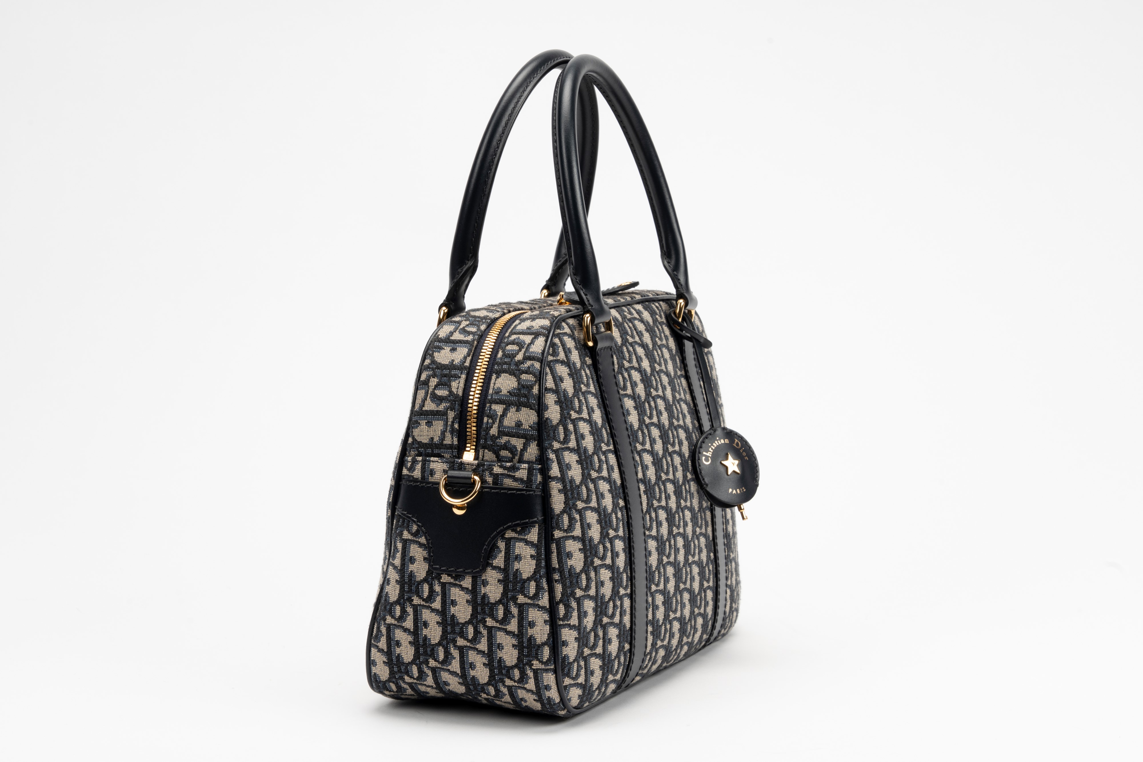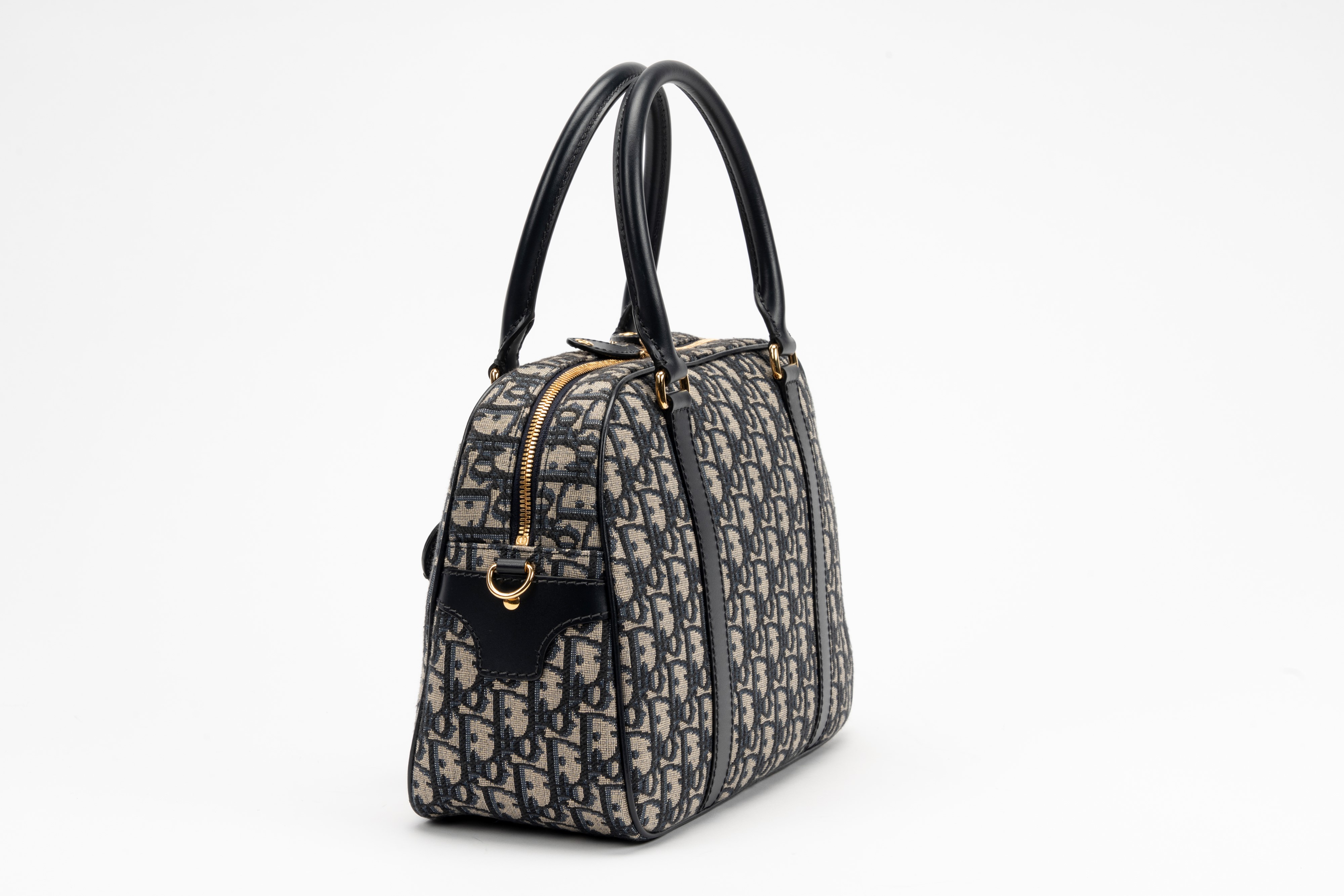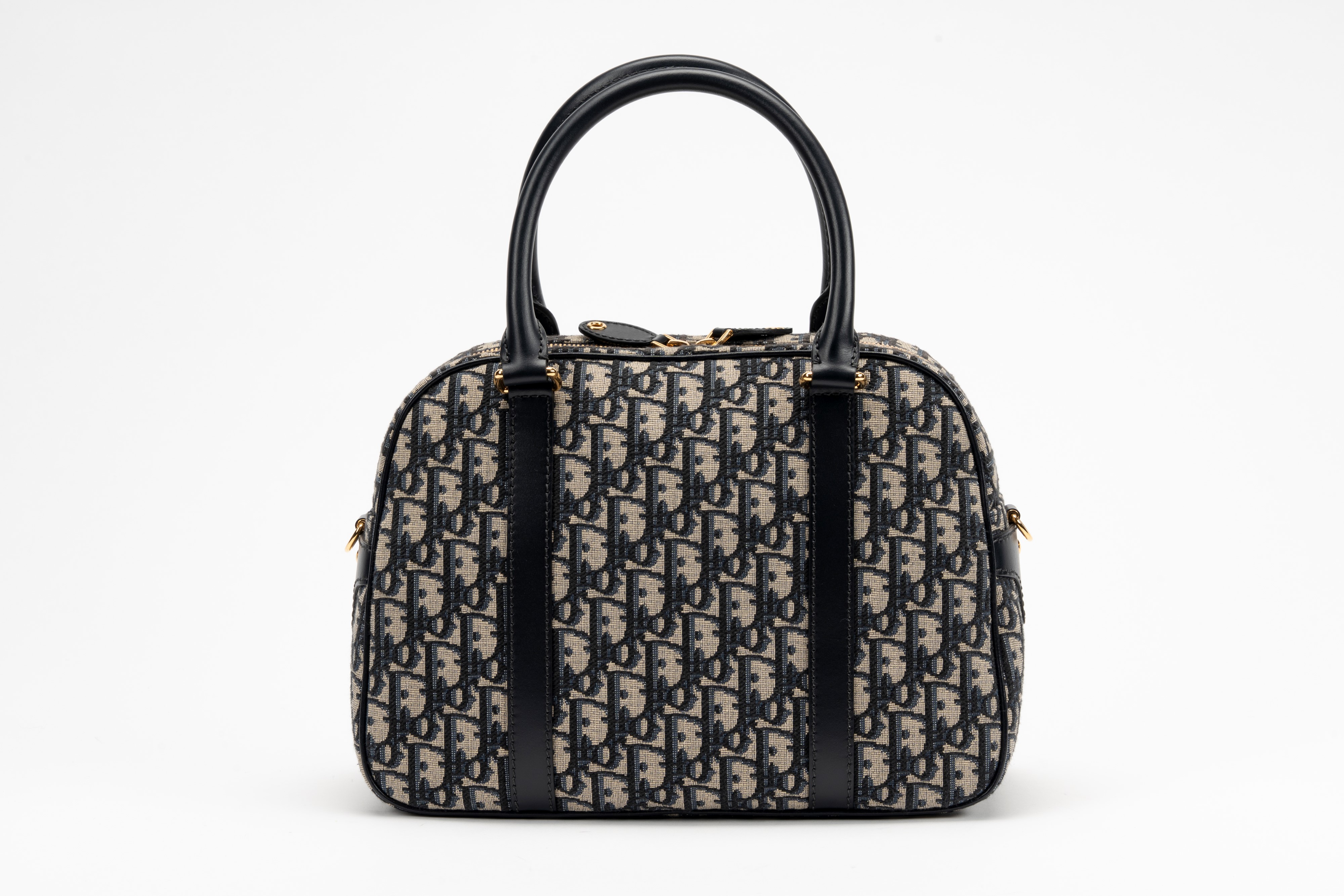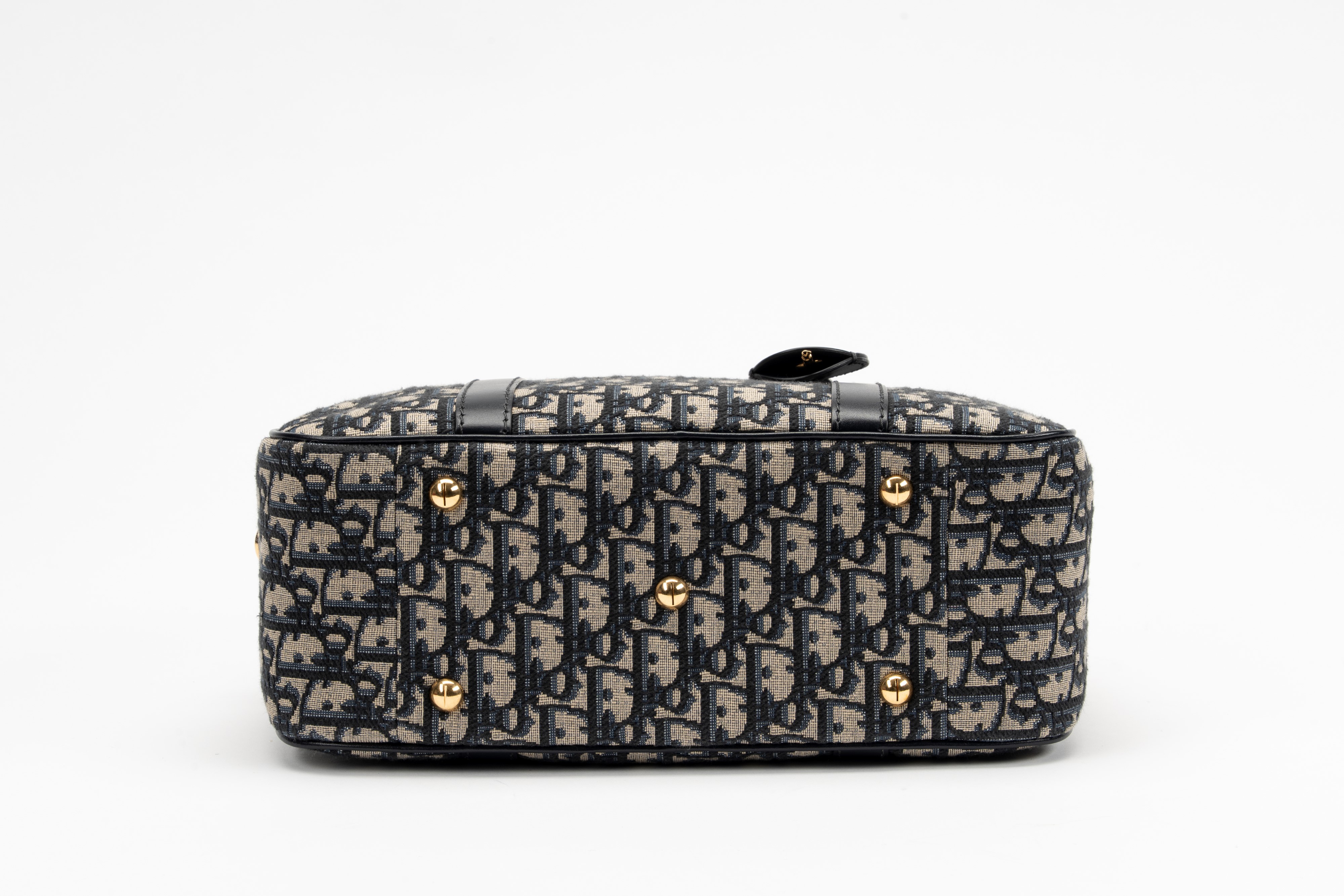 in tela blu Jacquard Oblique Dior, doppi manici, dettagli in metallo dorato, cm 30, con sacchetto (tracolla mancante)Base d'asta