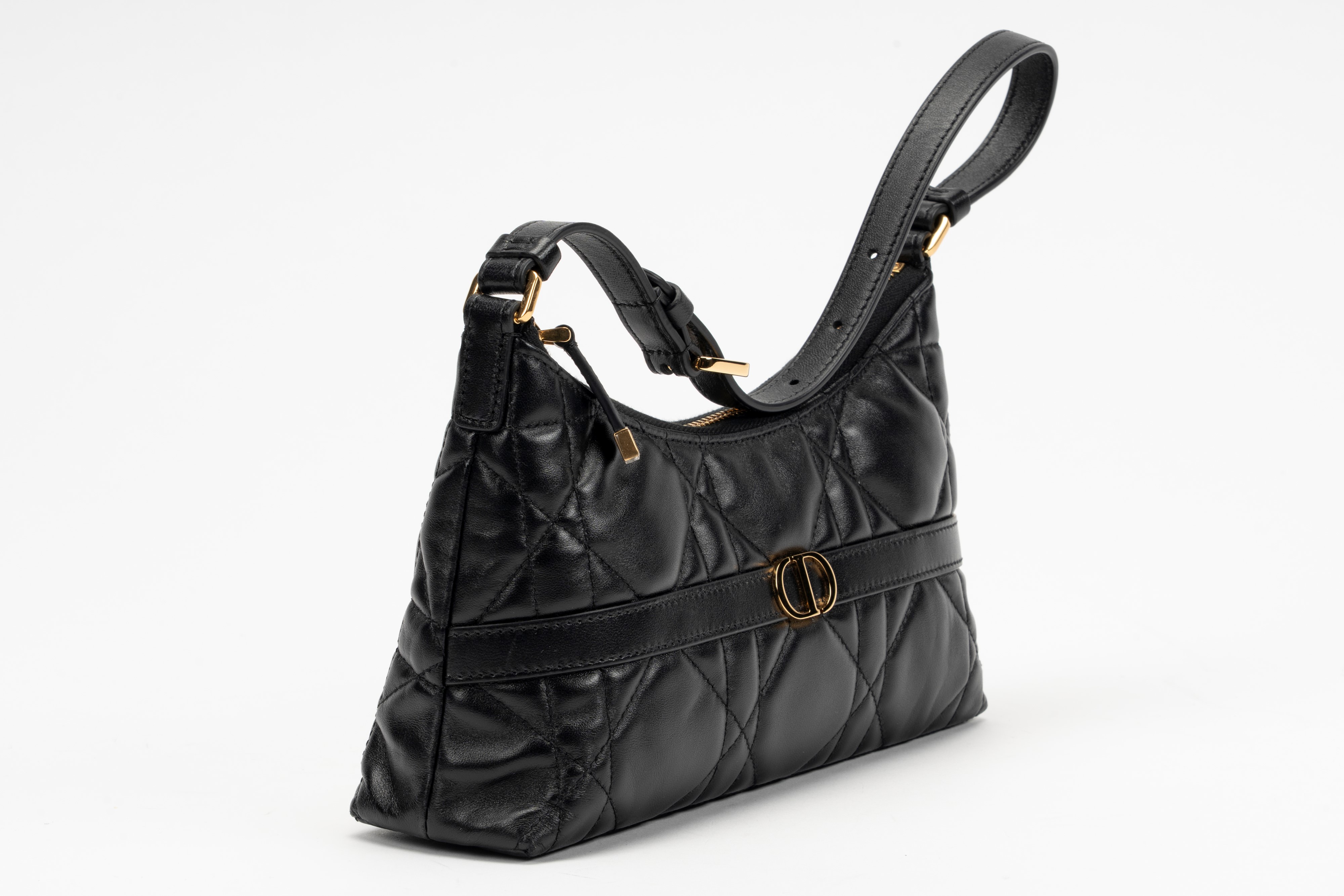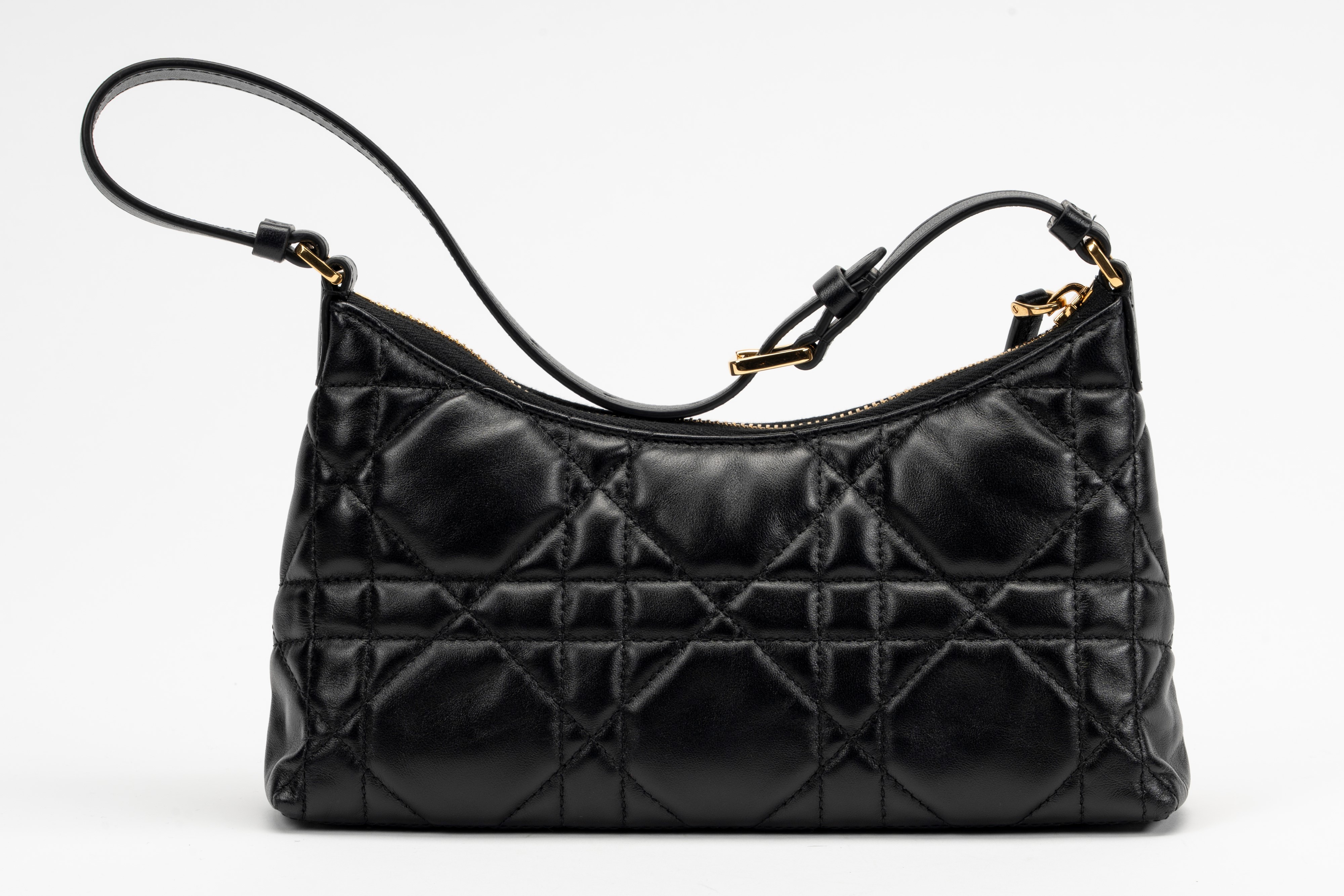in pelle macrocannage color nero, dettagli in metallo dorato, tracolla regolabile, cm 24, con sacchettoBase d'asta