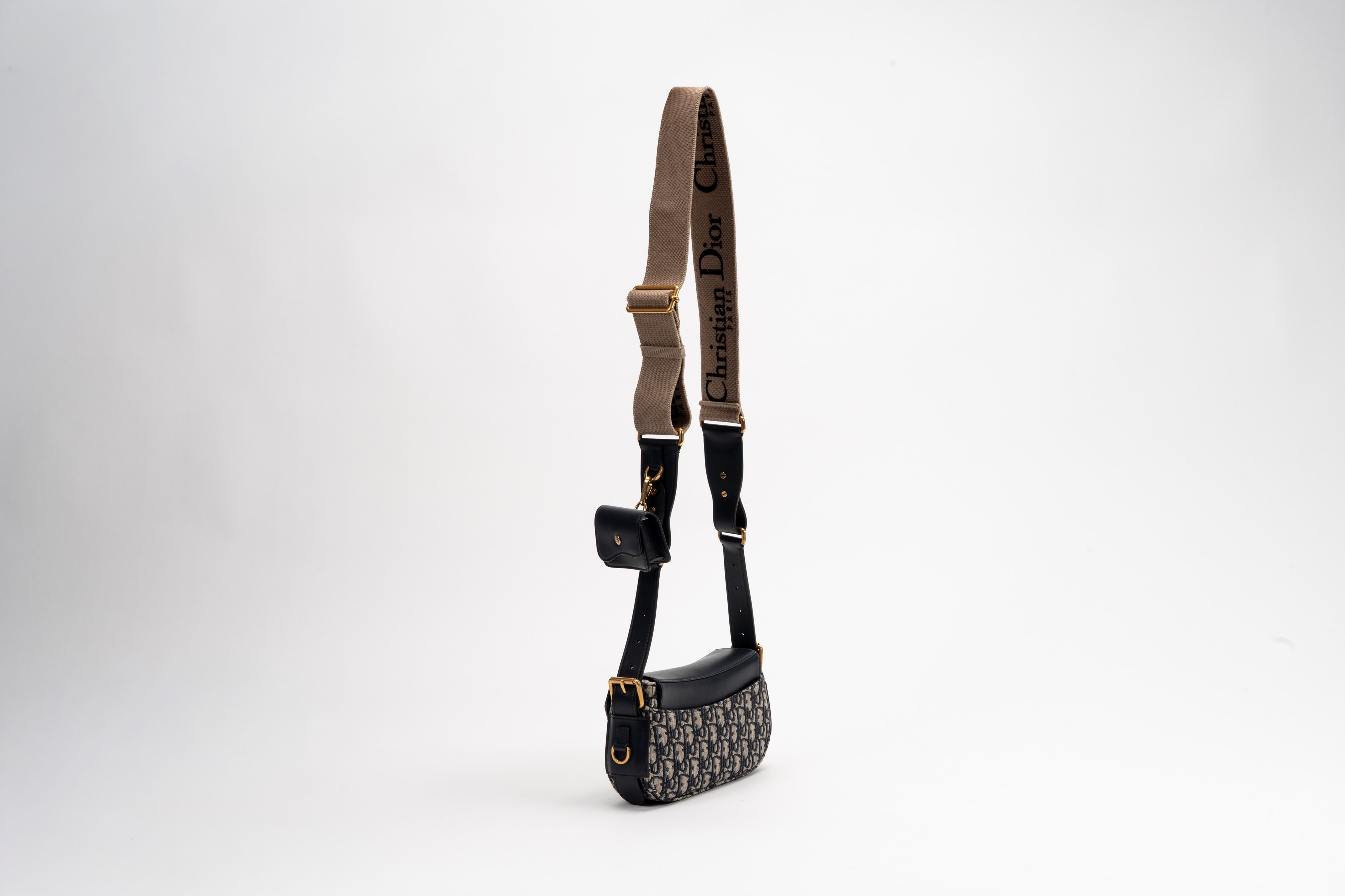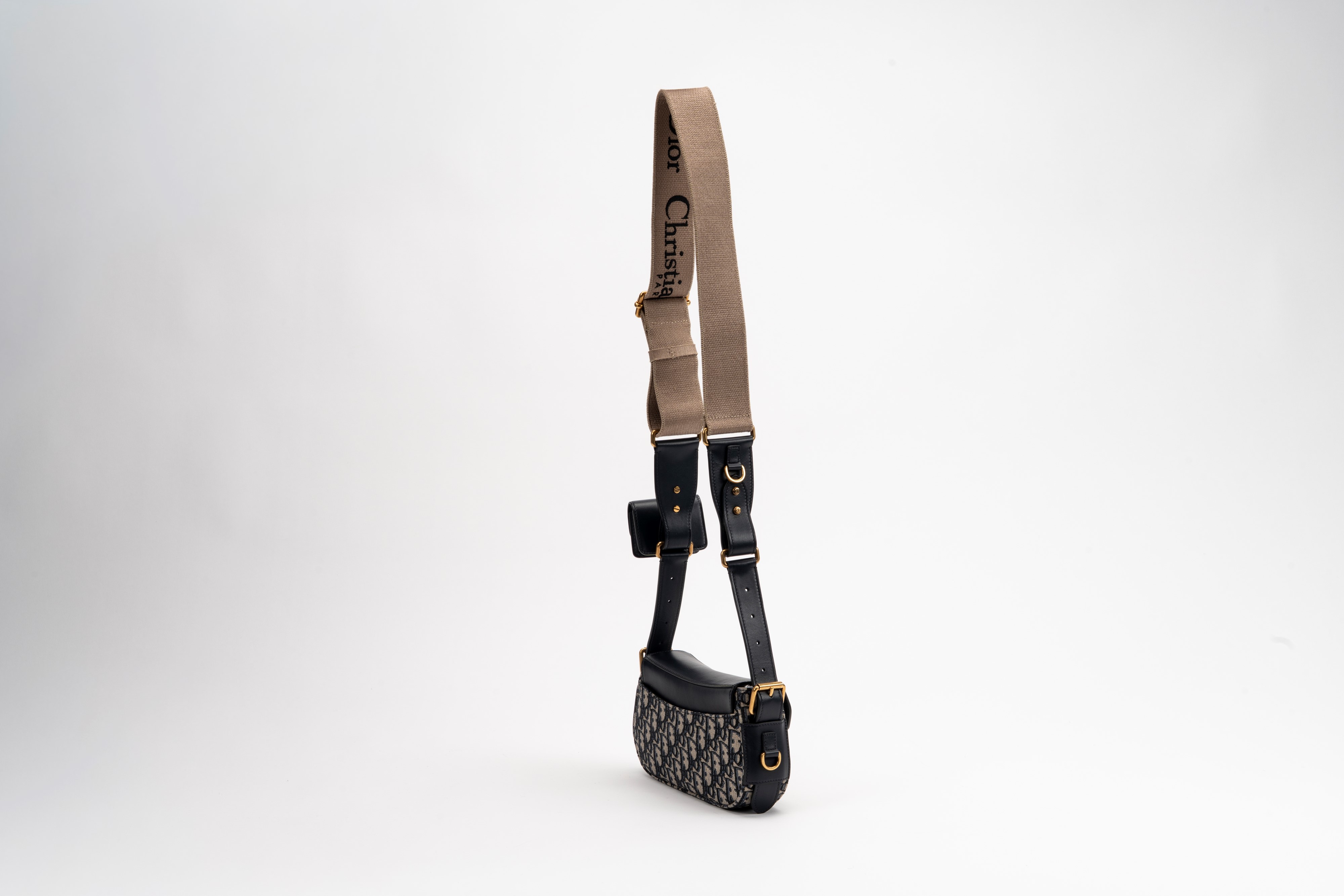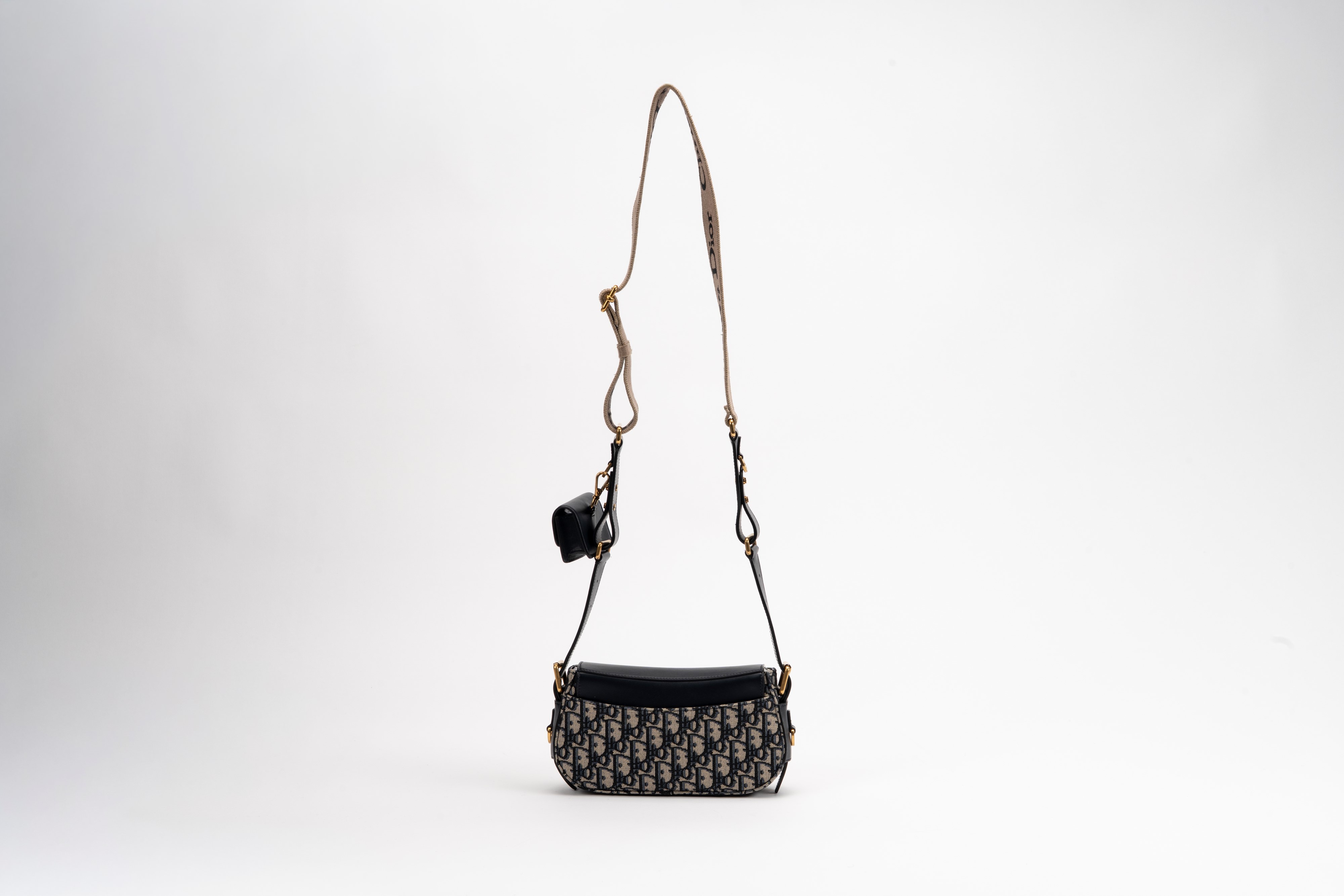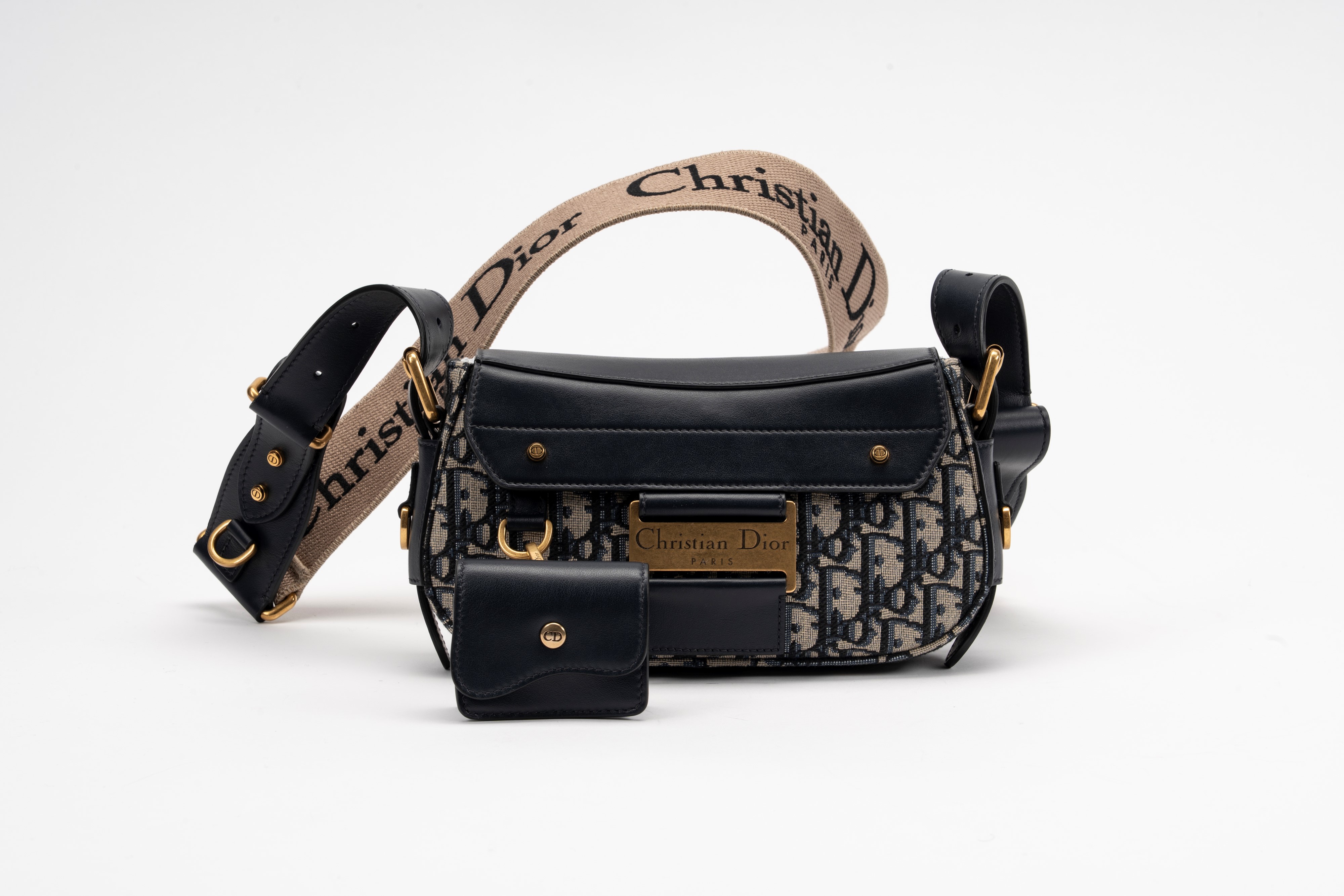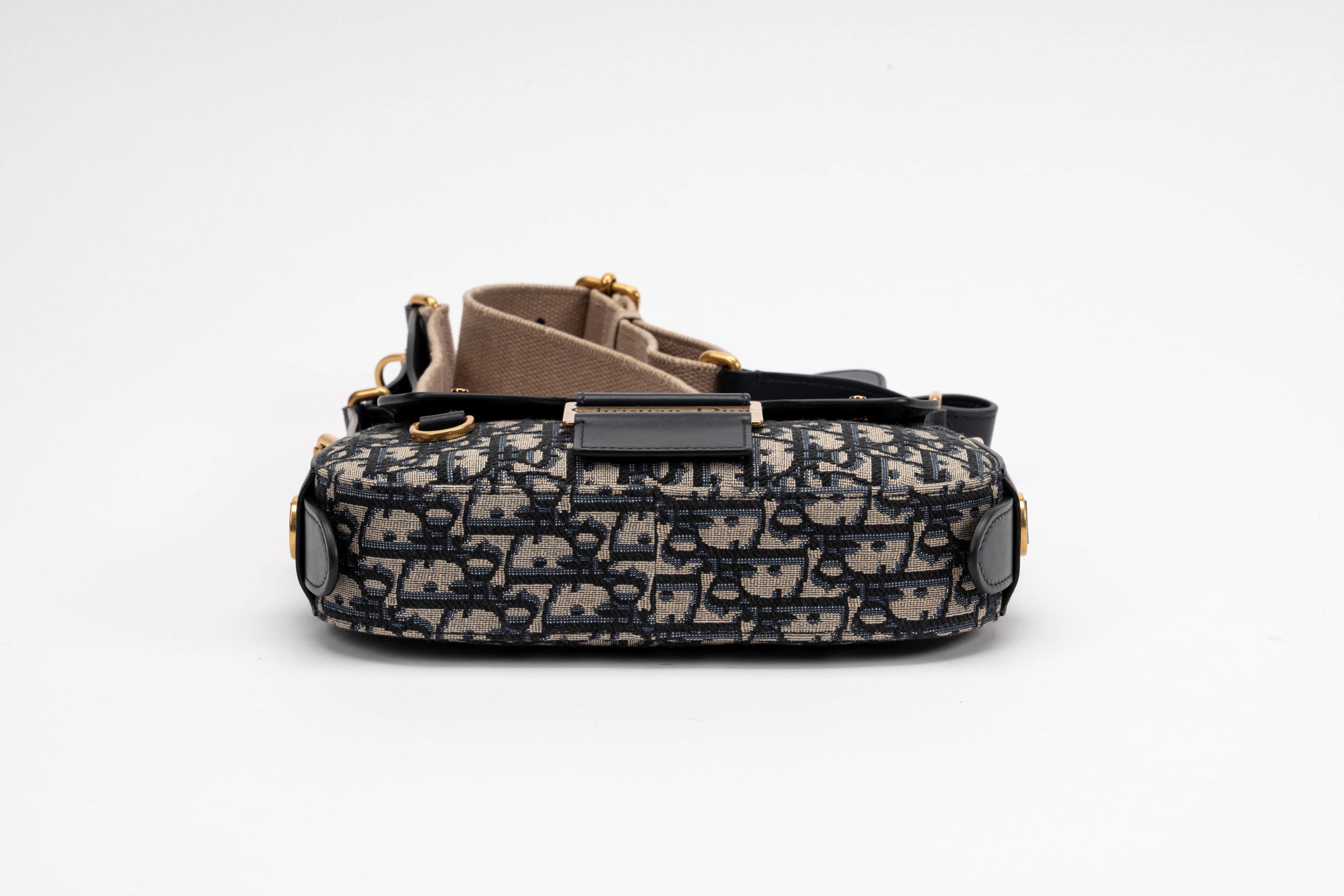 in tela Jacquard Dior Oblique e pelle color blu, con tracolla regolabile, dettagli in metallo dorato e satinato, cm 24, con sacchettoBase d'asta
