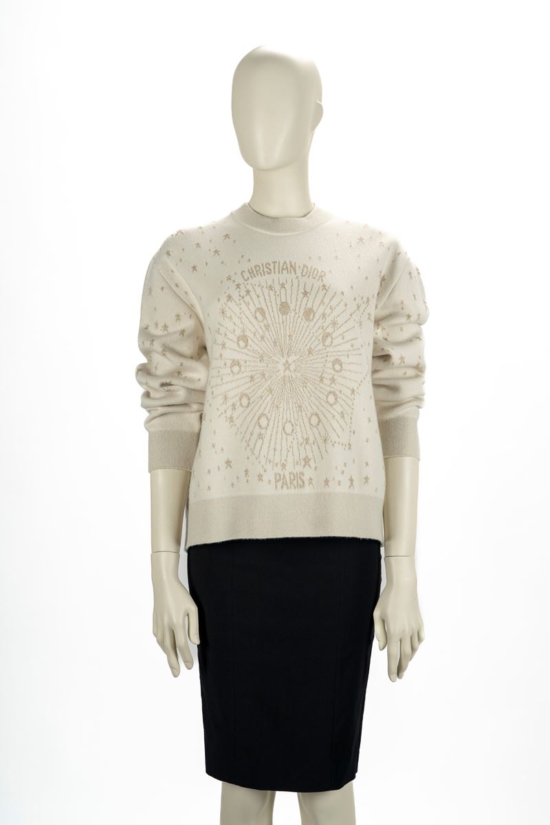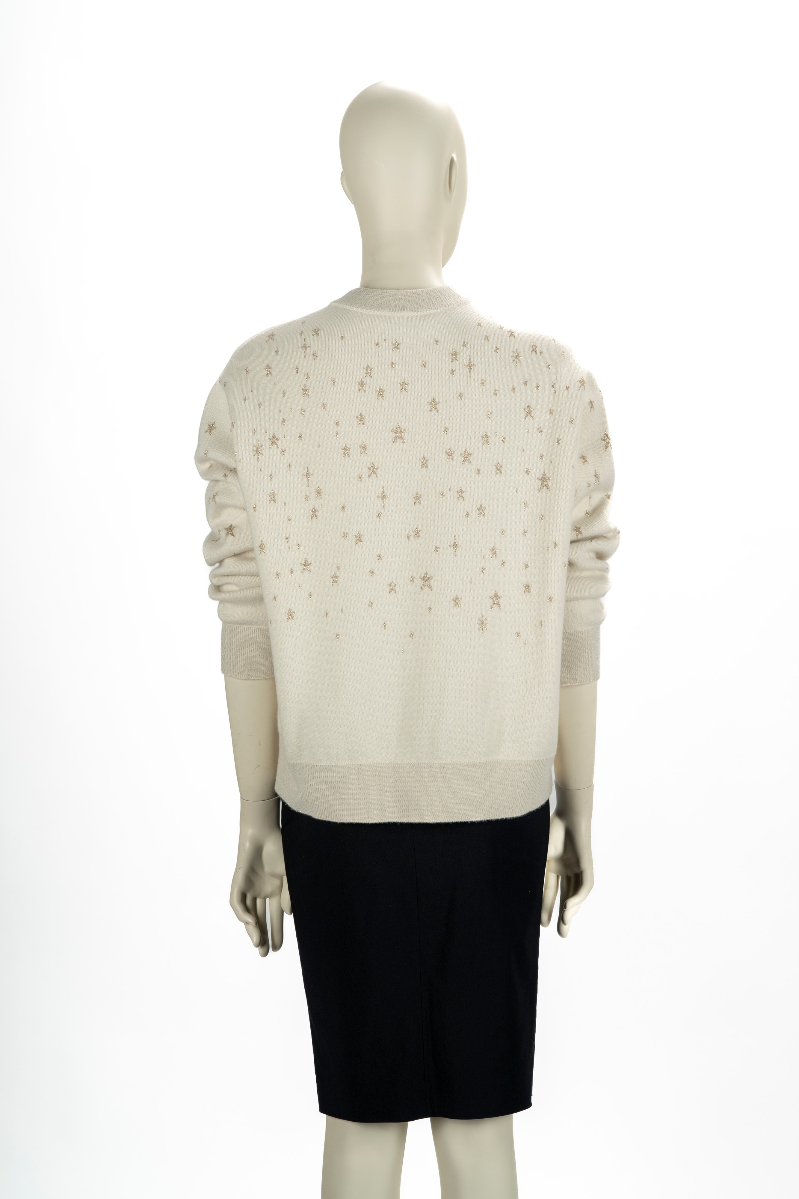 in misto cachemire color panna con scritte e disegni color oro, taglia 40 franceseGonna non inclusa