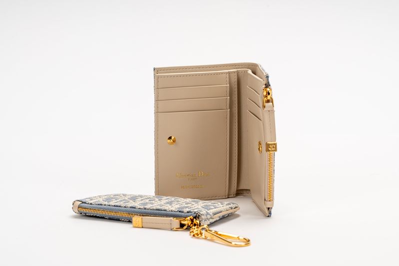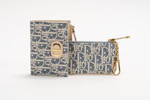 in tela Chambray Dior Oblique color blu e pelle color beige, dettagli in metallo dorato, cm 12 e cm 13, con sacchetti