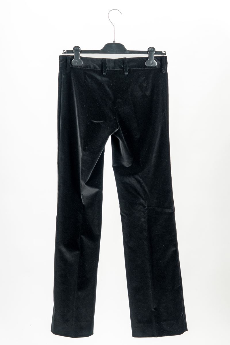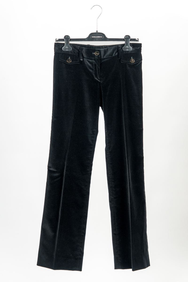 in velluto color nero, bottoni in metallo dorato e logato, taglia 40Base d'asta