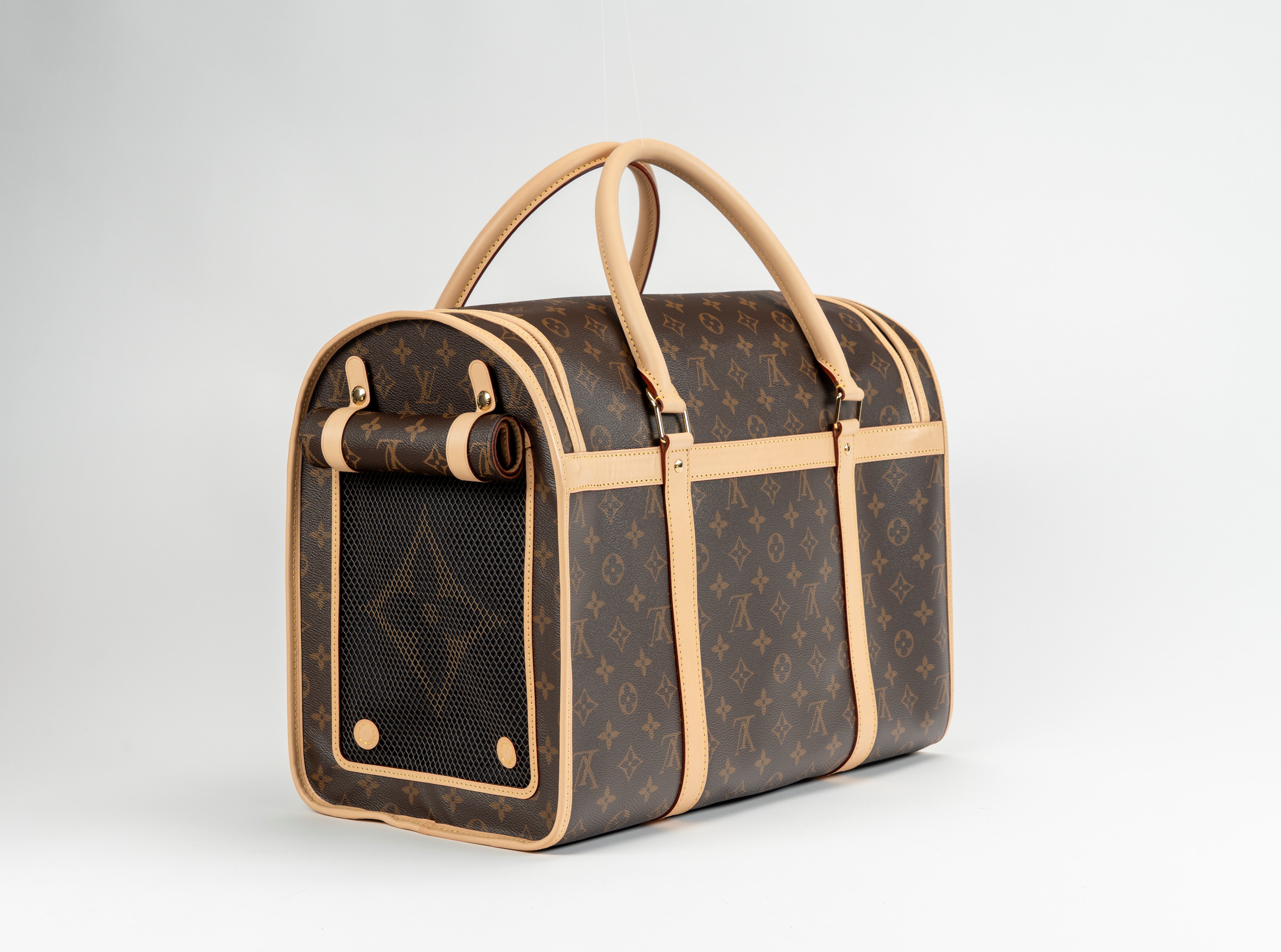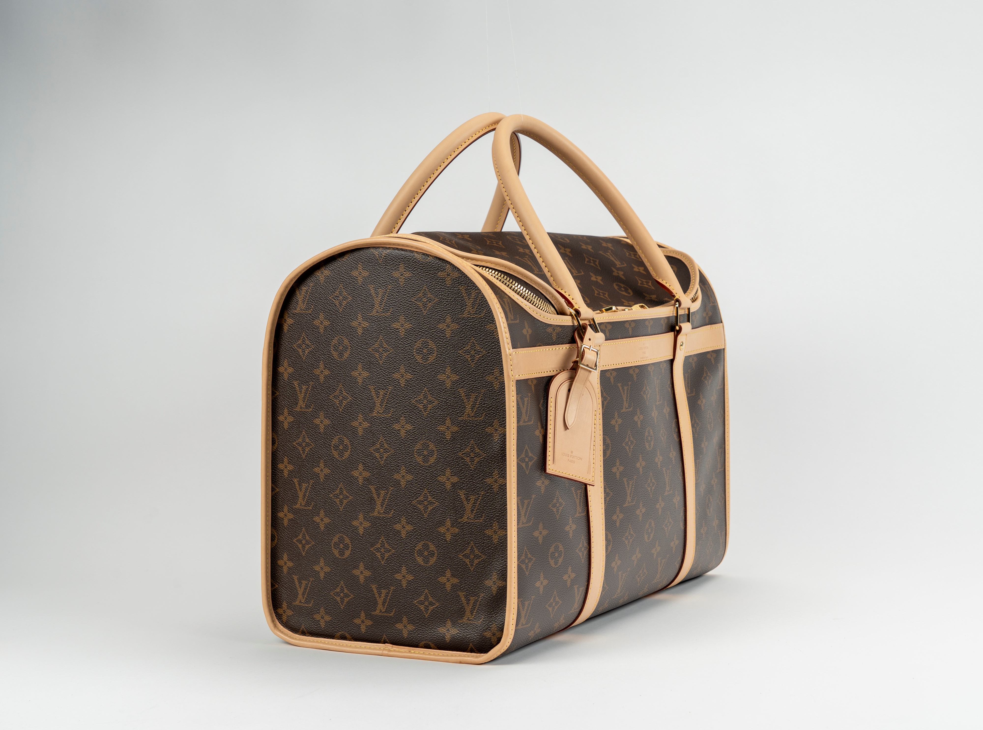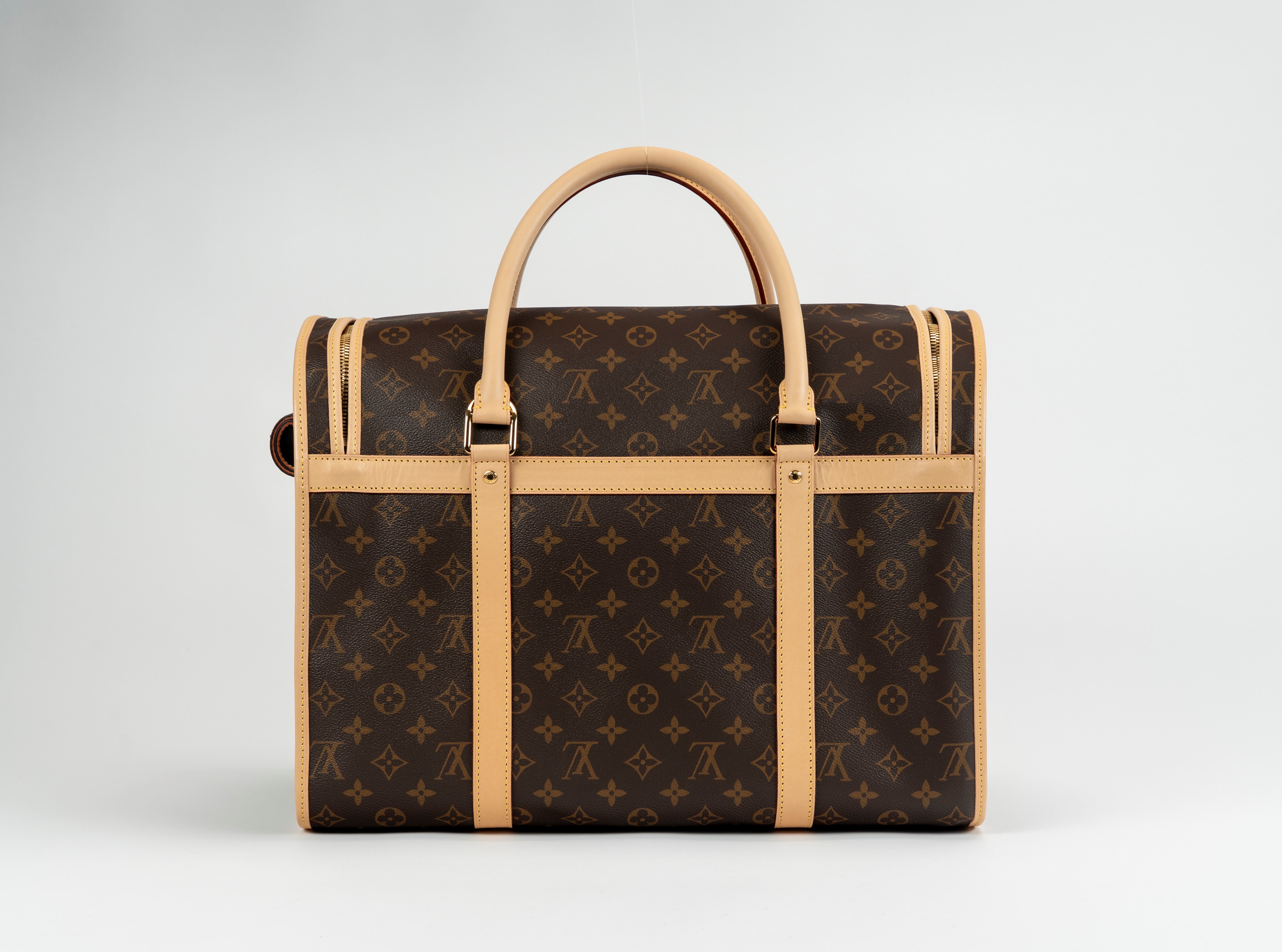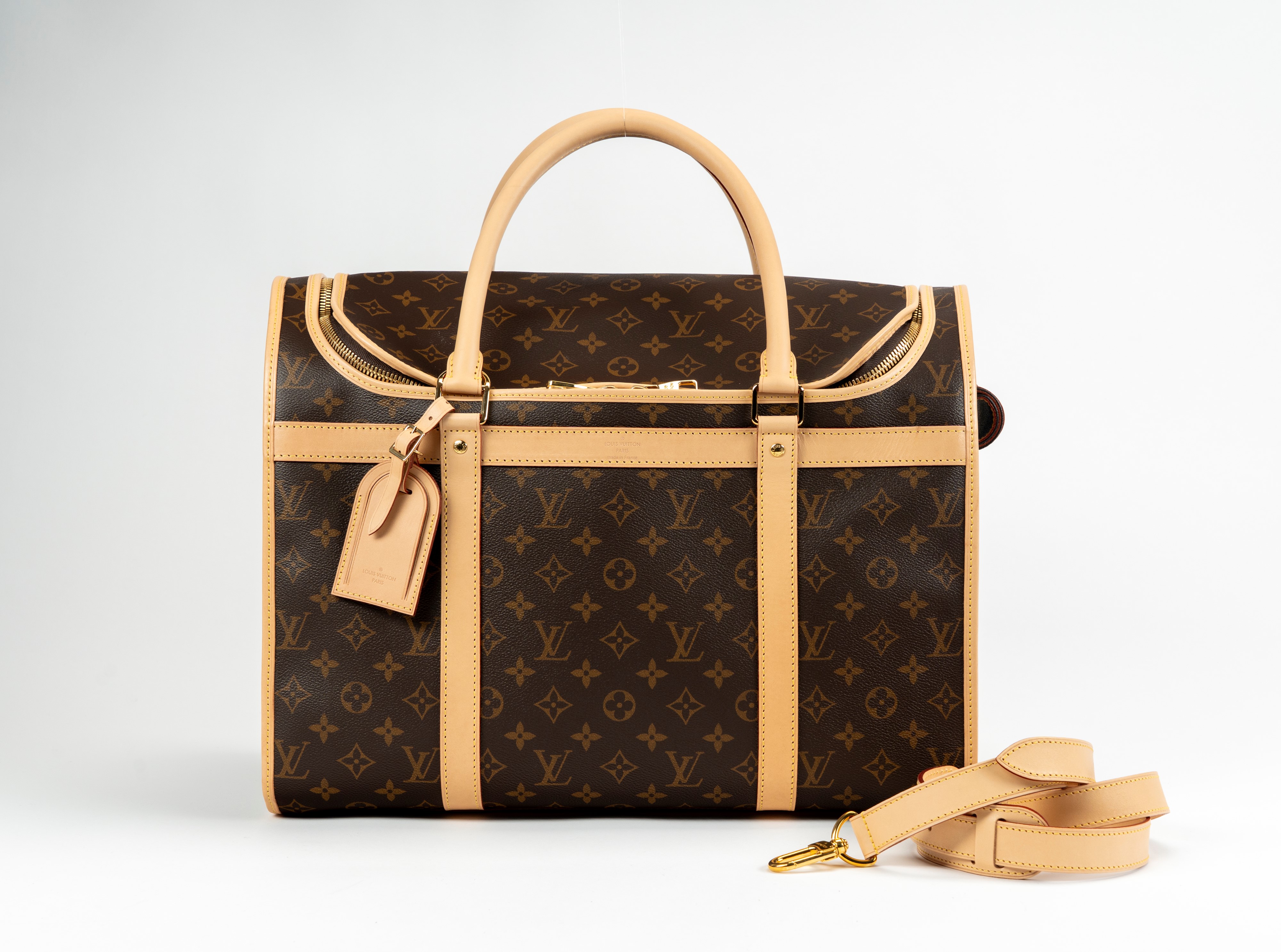 in tela monogram, con tracolla regolabile, dettagli in metallo dorato, cm 44 x 33 x 24, con sacchetto (nuovo, mai usato)Base d'asta