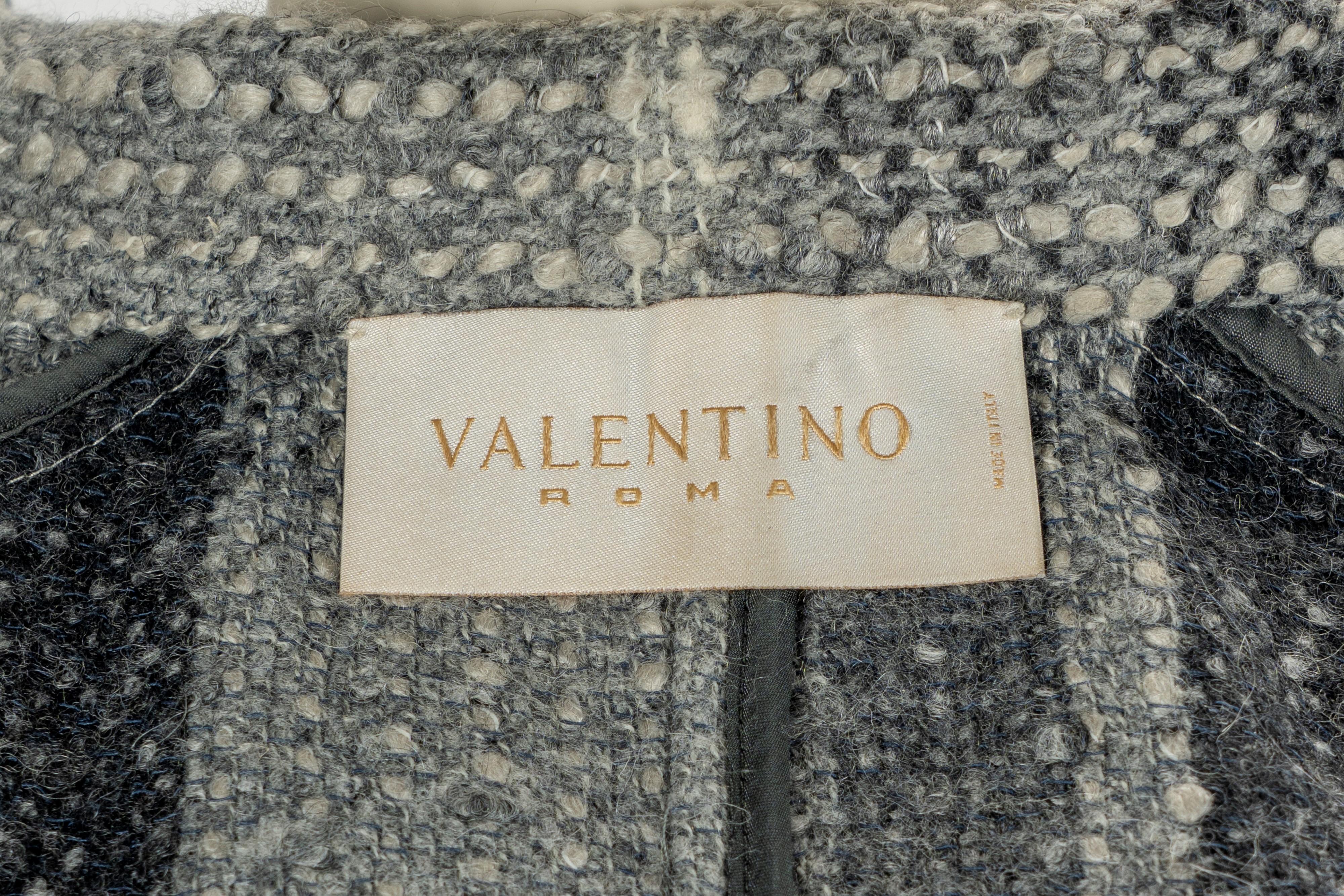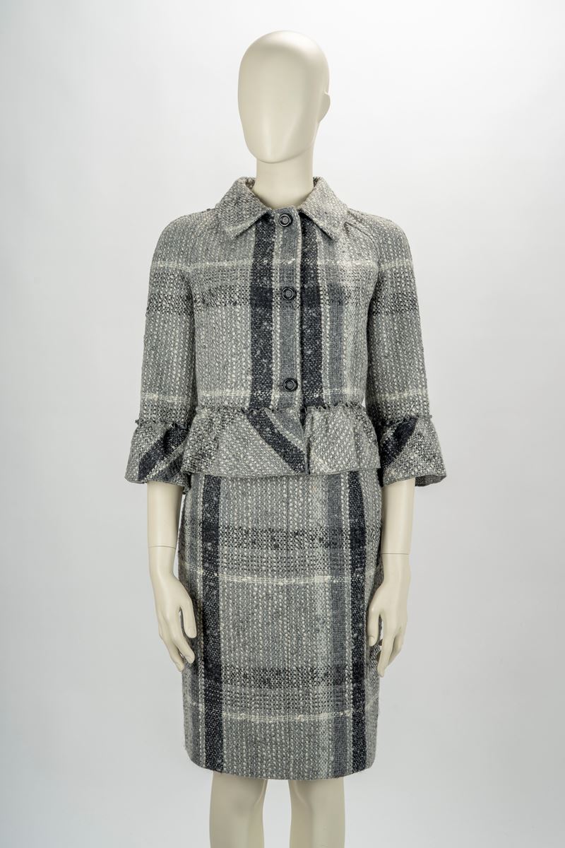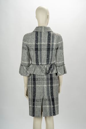 in lana melange tonalità grigio e bianco, con volant, taglia 42
