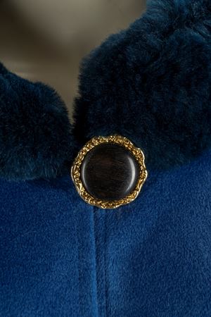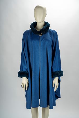 in lana e cashmere, color indaco, bordure bluette, (lievissimi segni d'uso), taglia non indicataBase d'asta