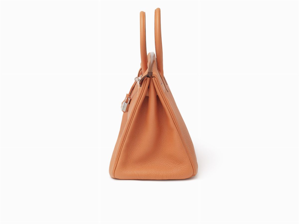 in pelle togo color arancione, dettagli in palladio, con sacchetto, scatola e pellicole protettive (mai usata)