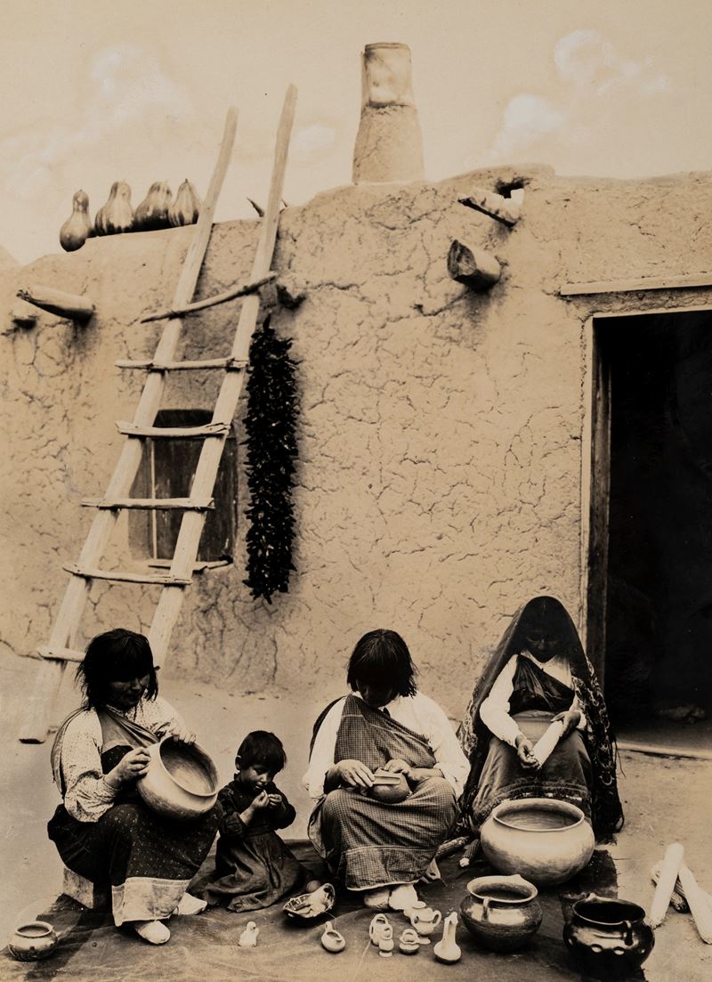 Ad Agua Fria, una famiglia in posa davanti a una casa in mattoni di fango, New Mexico, 1912