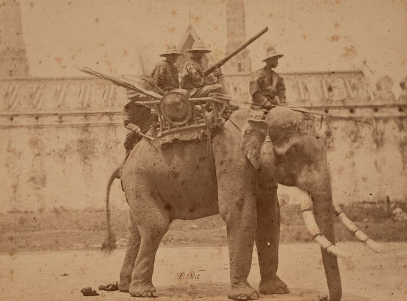Elefante di guerra - Posto interno di Birmania - Palazzo Reale, angolo dove si tiene l'elefante prediletto del Re - Palazzo del 2° Re di Siam