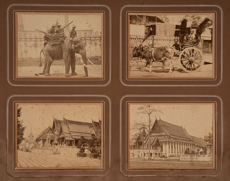 Quattro stampe all'albumina, ciascuna applicata a cartoncino originale, montate in unico passepartou