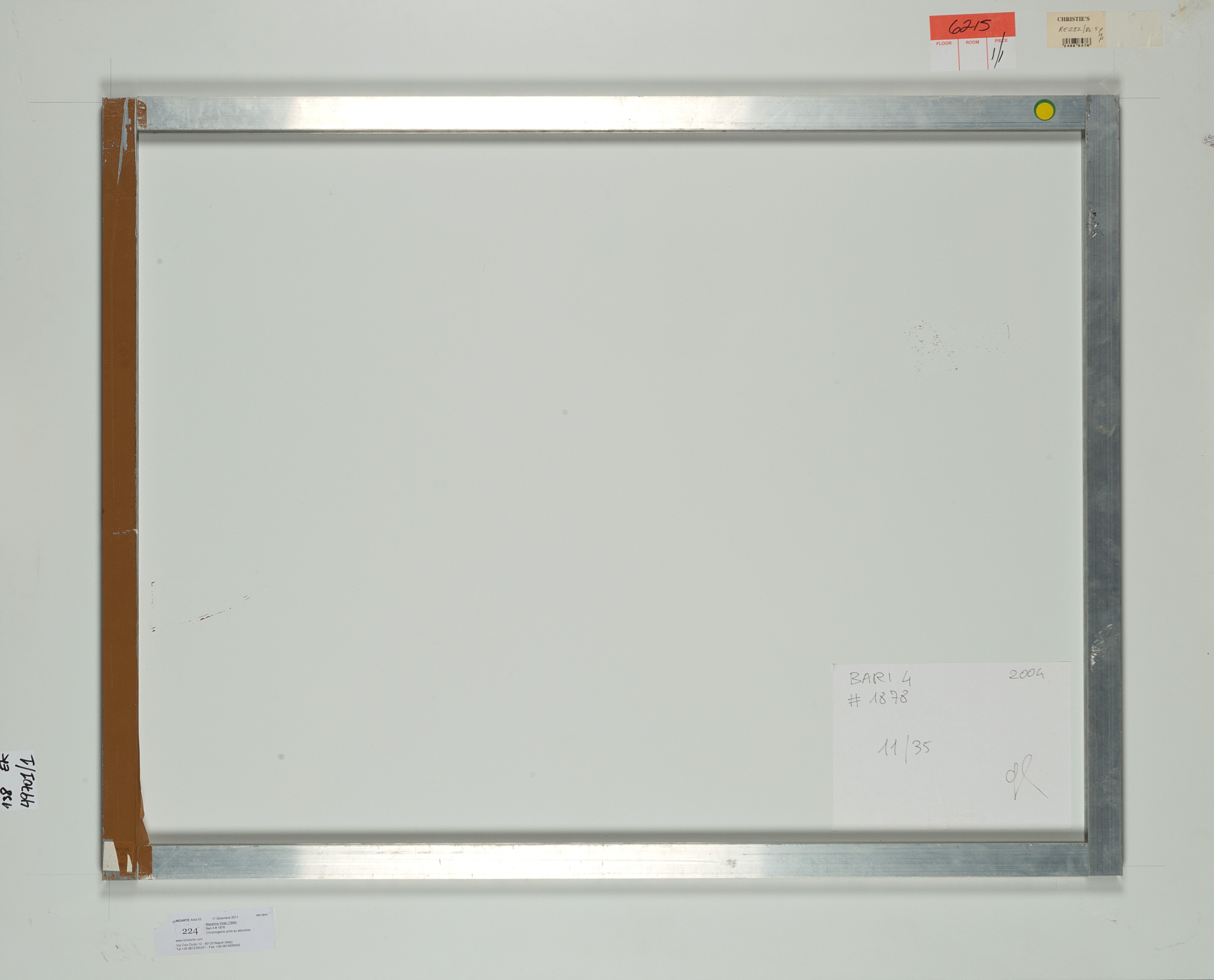 Etichetta titolata, datata, numerata e siglata a penna nera al verso
