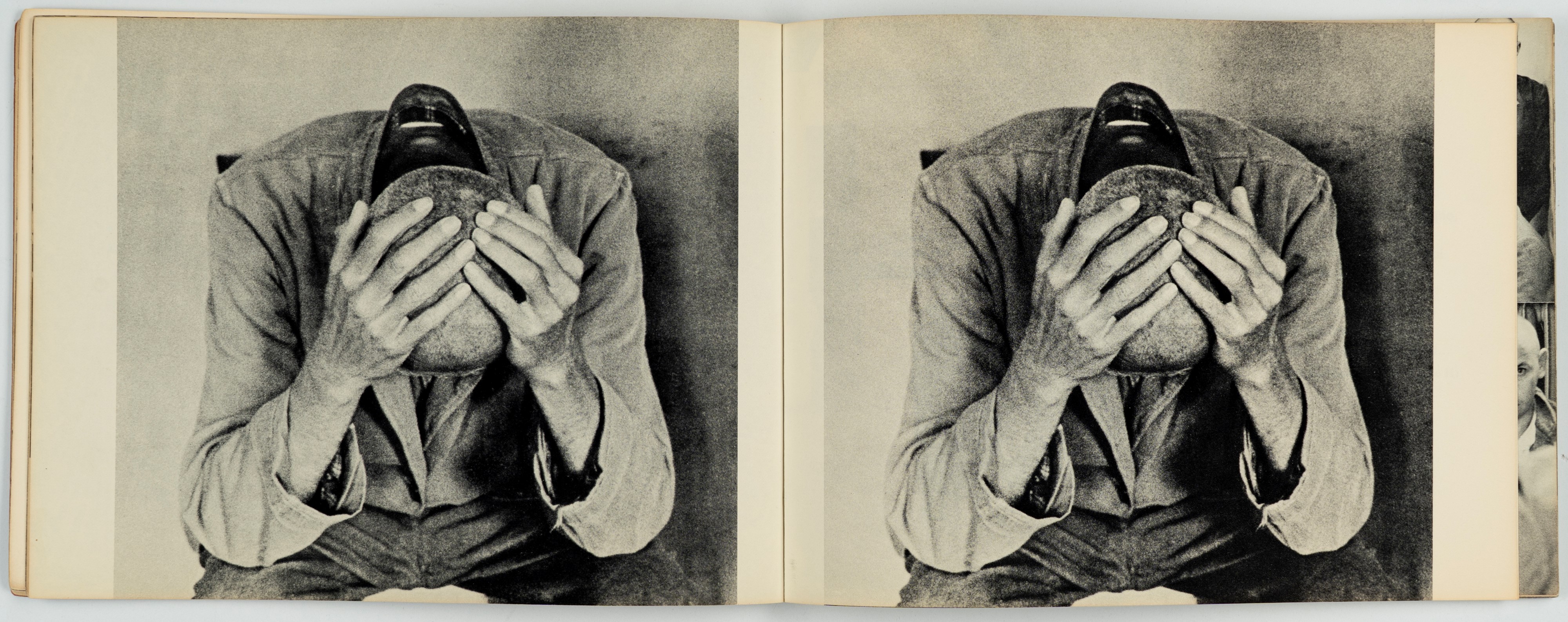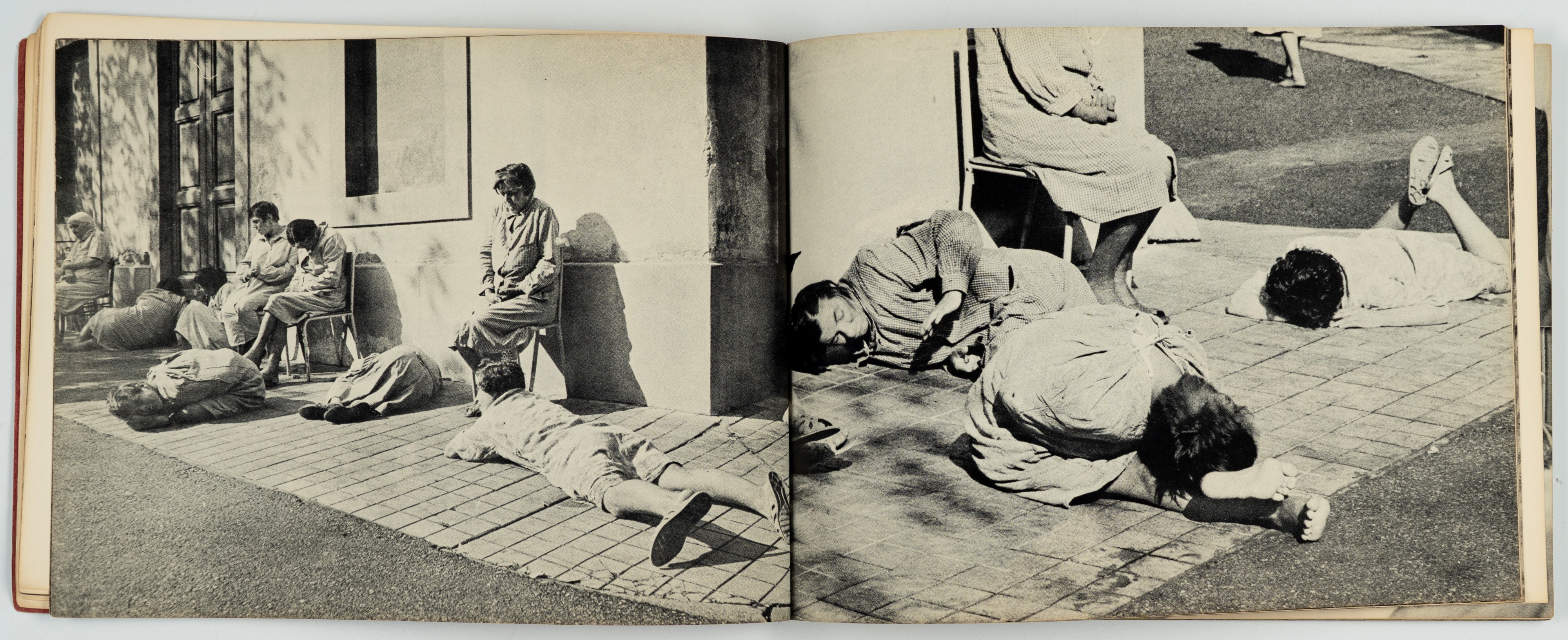 Fra queste due immagini si colloca idealmente la complessa vicenda professionale di Carla Cerati. Quando, alla fine degli anni ’60 Franco Basaglia inizia la sua battaglia per la chiusura dei manicomi, vere istituzioni carcerarie che negavano dignità a quanti non venivano curati ma reclusi, un contributo importante alla vittoria della legge che porta il suo nome fu costituito da quel piccolo ma intenso libro pubblicato da Einaudi nel 1969 caratterizzato dal bellissimo titolo “Morire di classe” che Carla Cerati firma con Gianni Berengo Gardin. Lo scatto ravvicinato sui visi di persone cui nessuno dedicava attenzione indica il desiderio di stabile un contatto per restituire loro quella dignità ogni giorno calpestata. L’inquadratura che incrocia i soggetti conferisce all’immagine un dinamismo che sembra l’indice di una speranza. Quando, invece, Carla Cerati conosce l’esperienza allo straordinariamente innovativa del Living Theatre ne resta così coinvolta da seguire il gruppo americano nelle sue tournée fotografandone costantemente le performances. Trasformava poi talvolta le sue immagini – come in questo caso – ritagliandone una porzione per sottolineare un gesto, un’espressione, uno sguardo.