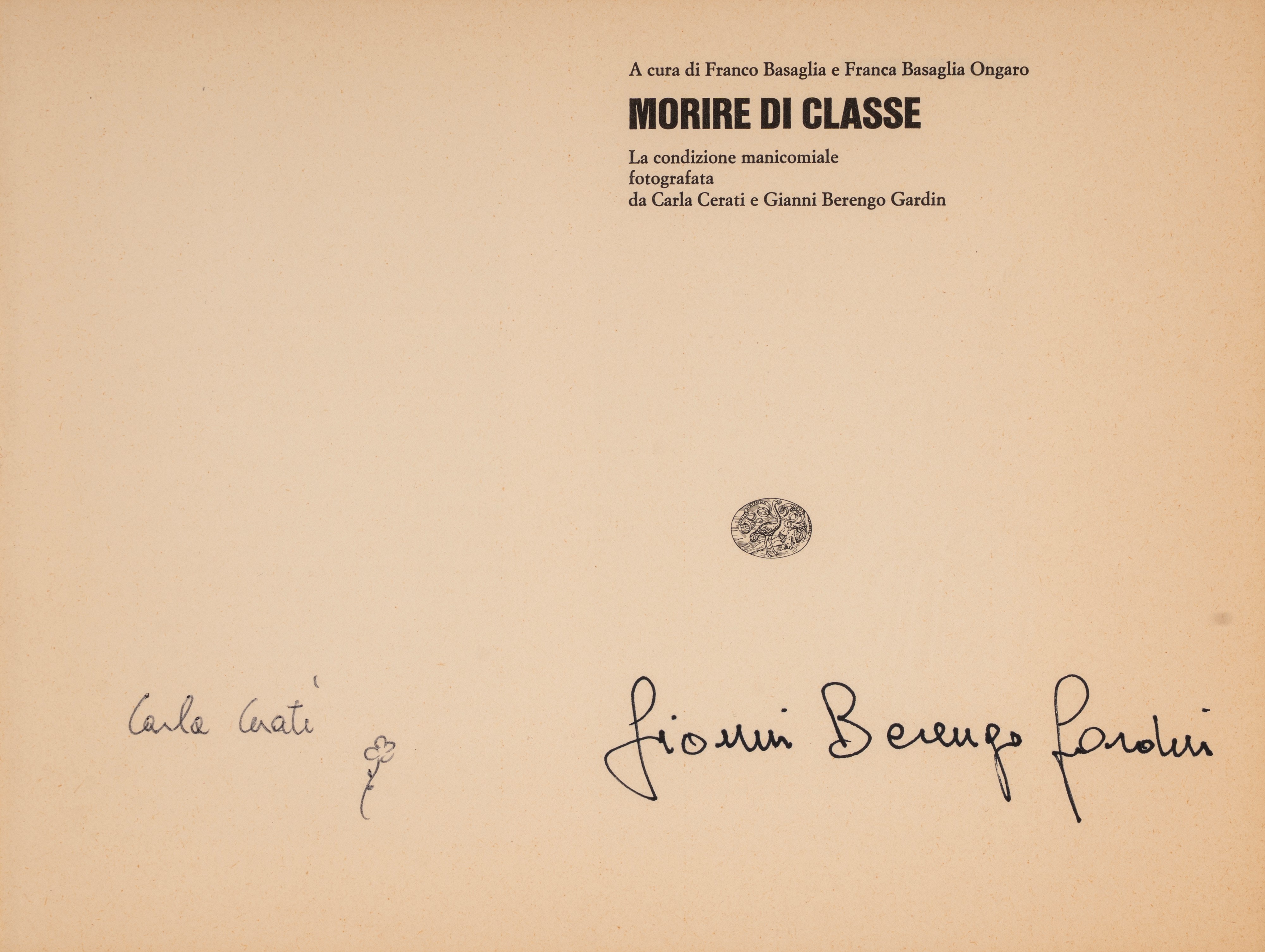 Firmato all'interno a penna nera da Gianni Berengo Gardin e Carla Cerati