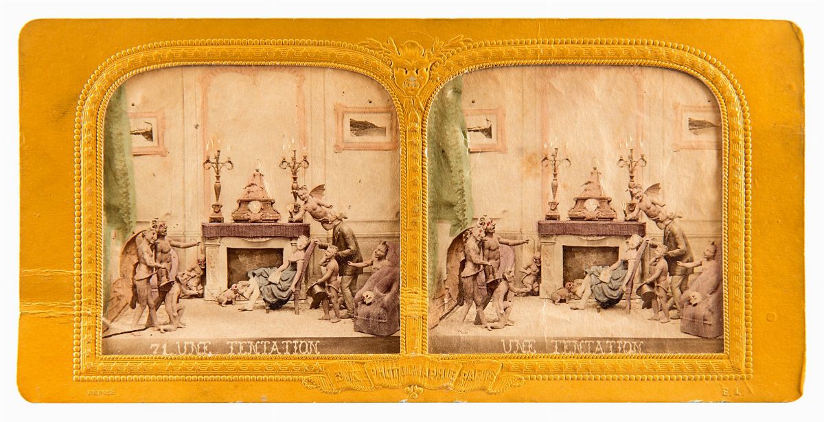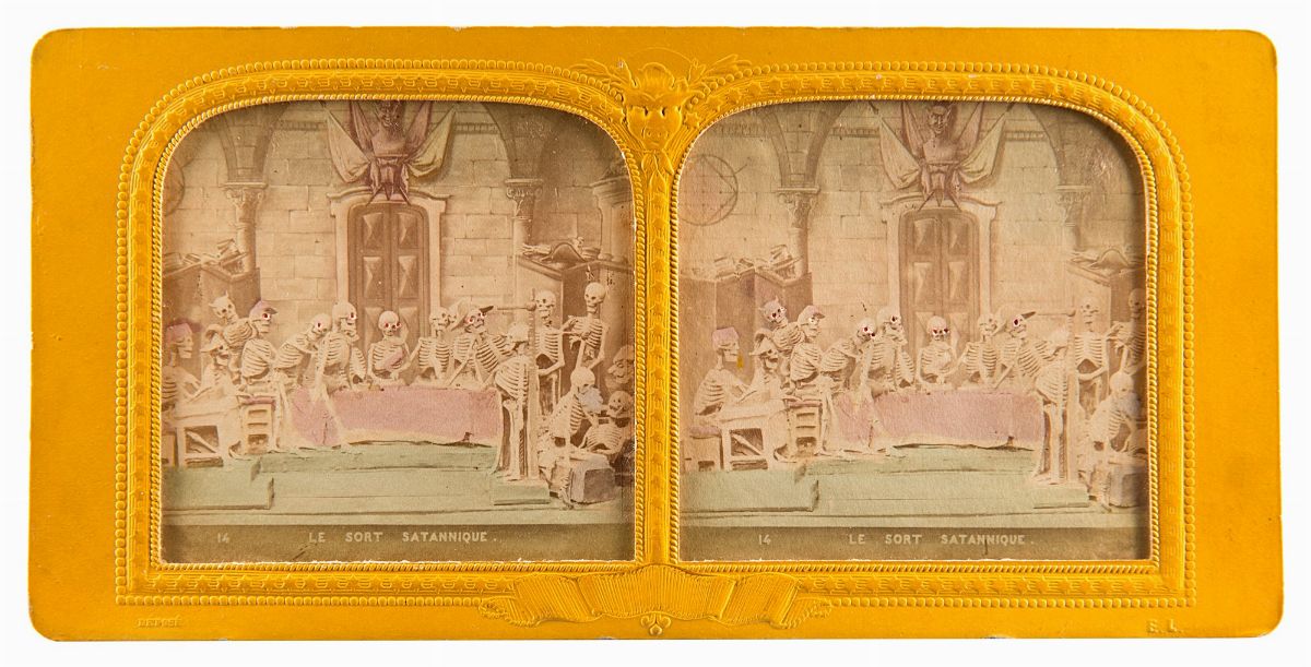 Les diableries, Paris, anni 1860 14 stereoscopie vintage all'albumina colorate a mano e montate su cartoncino originale 8,6 x 17,7 cm ciascuna