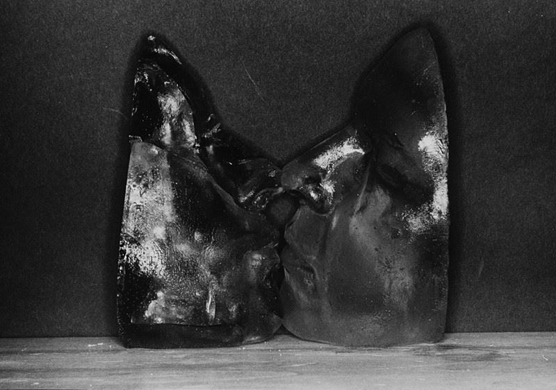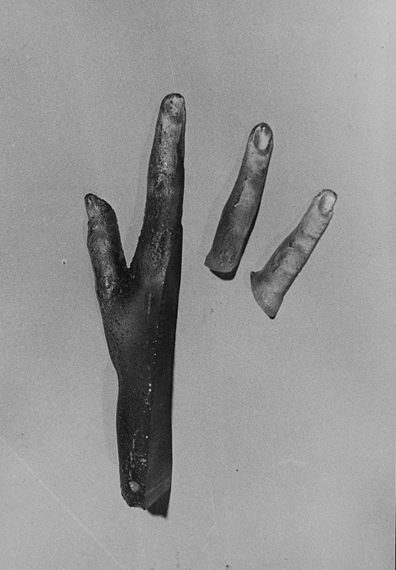 Una fotografia firmata a penna bianca e con impronta digitale sul cartoncino originale