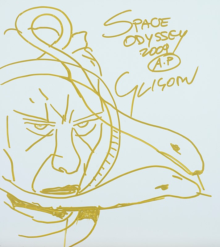 Al verso disegno del fotografo a pennarello oro