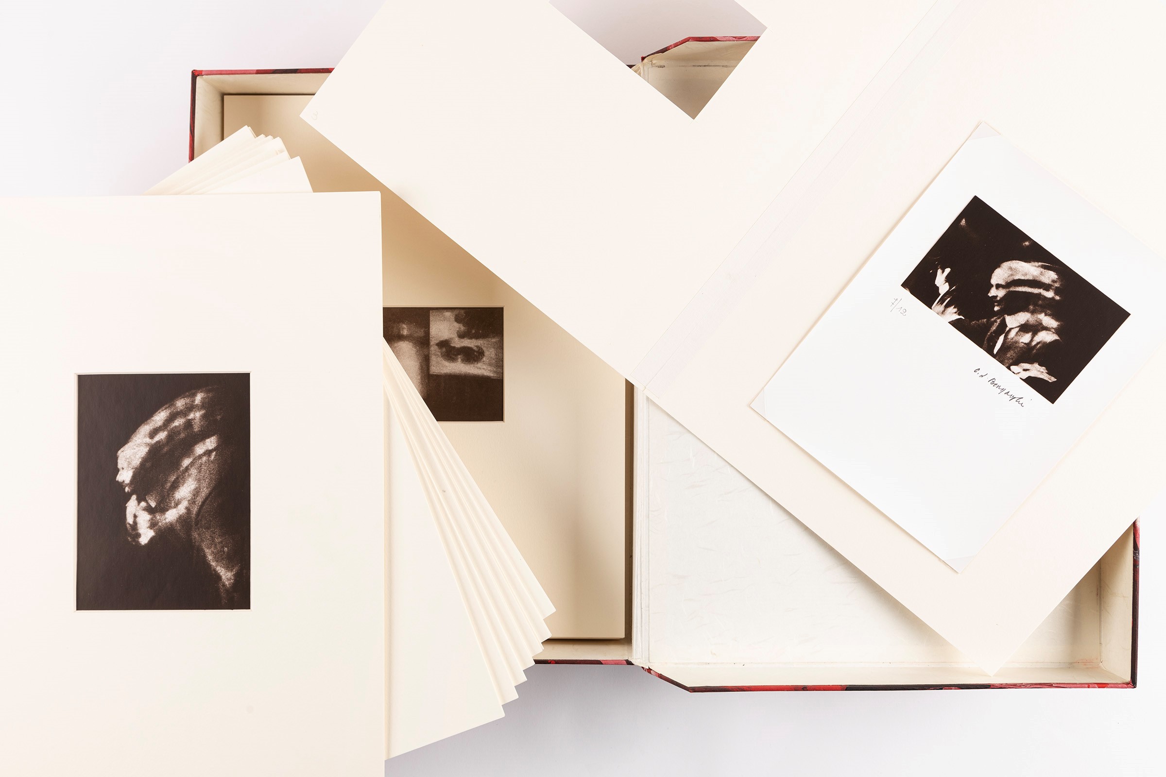 Il portfolio Fotodinamismo futurista, inserito in un elegante contenitore in cartone ricoperto di carta di riso giapponese policroma, ha un importante valore storico perché racconta, in diciassette immagini in bianco e nero virate seppia inserite in altrettanti passepartout acid free, la storia del fotodinamismo futurista per come è stato concepito dai fratelli Bragaglia. Teorizzate da Anton Giulio Bragaglia, che pure non sapeva fotografare, nel volume “Fotodinamismo futurista” (Nalato editore, Roma, 1911) che le pubblica per la prima volta, le fotografie sono state realizzate da Arturo e Carlo Ludovico. Quest’ultimo ha firmato e supervisionato le ristampe per questo portfolio previsto in 12 copie ma in realtà poi realizzato in 9. È accompagnato da una documentazione originale di Carlo Ludovico Bragaglia.