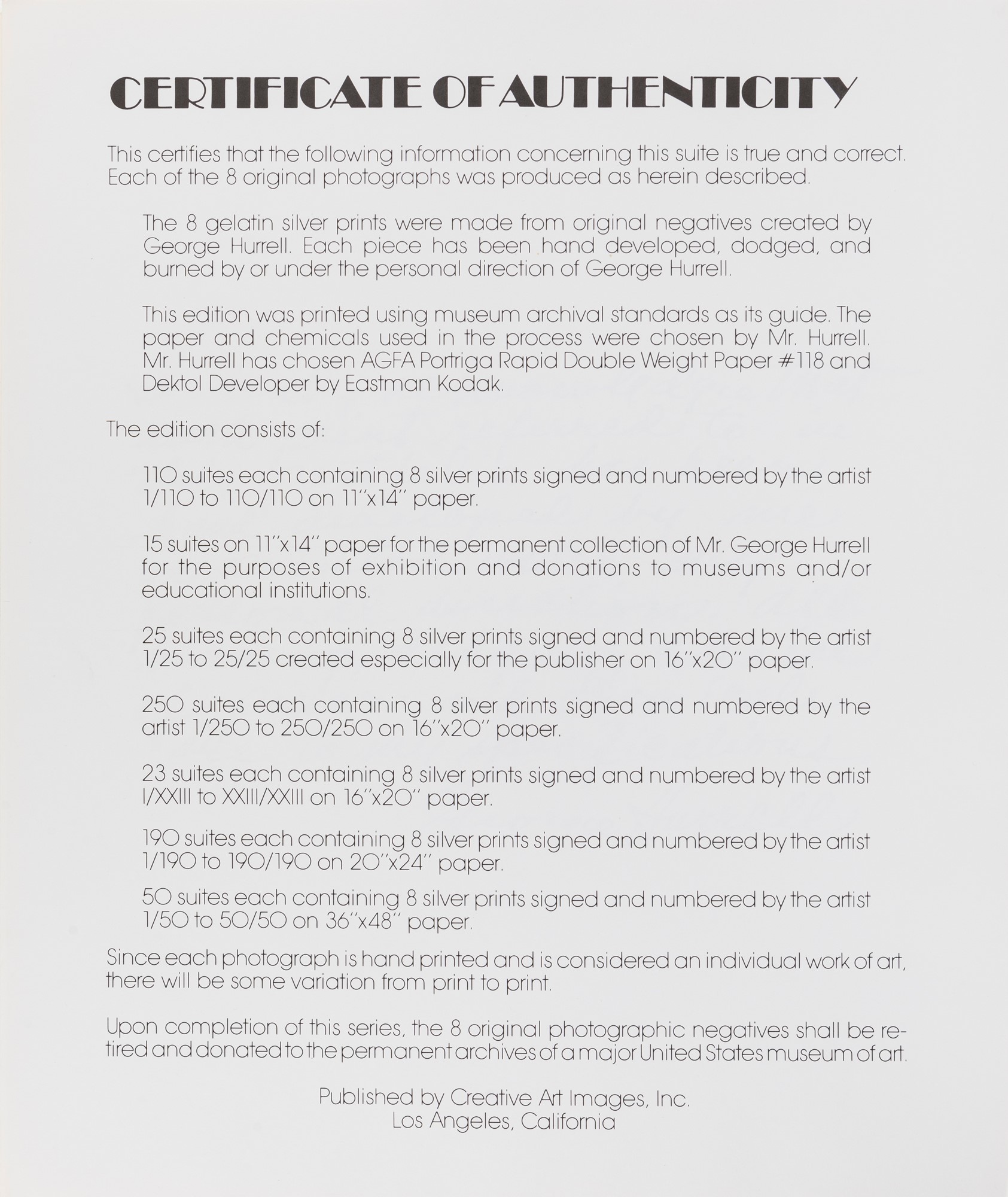 Ciascuna numerata e firmata a penna nera al margine bianco inferiore recto